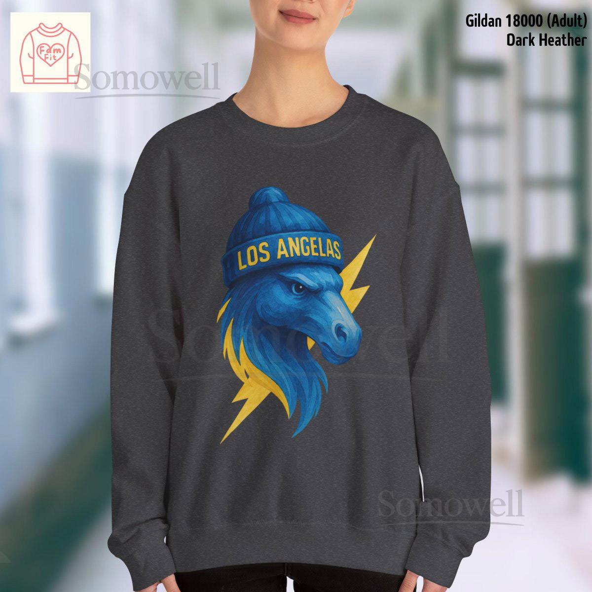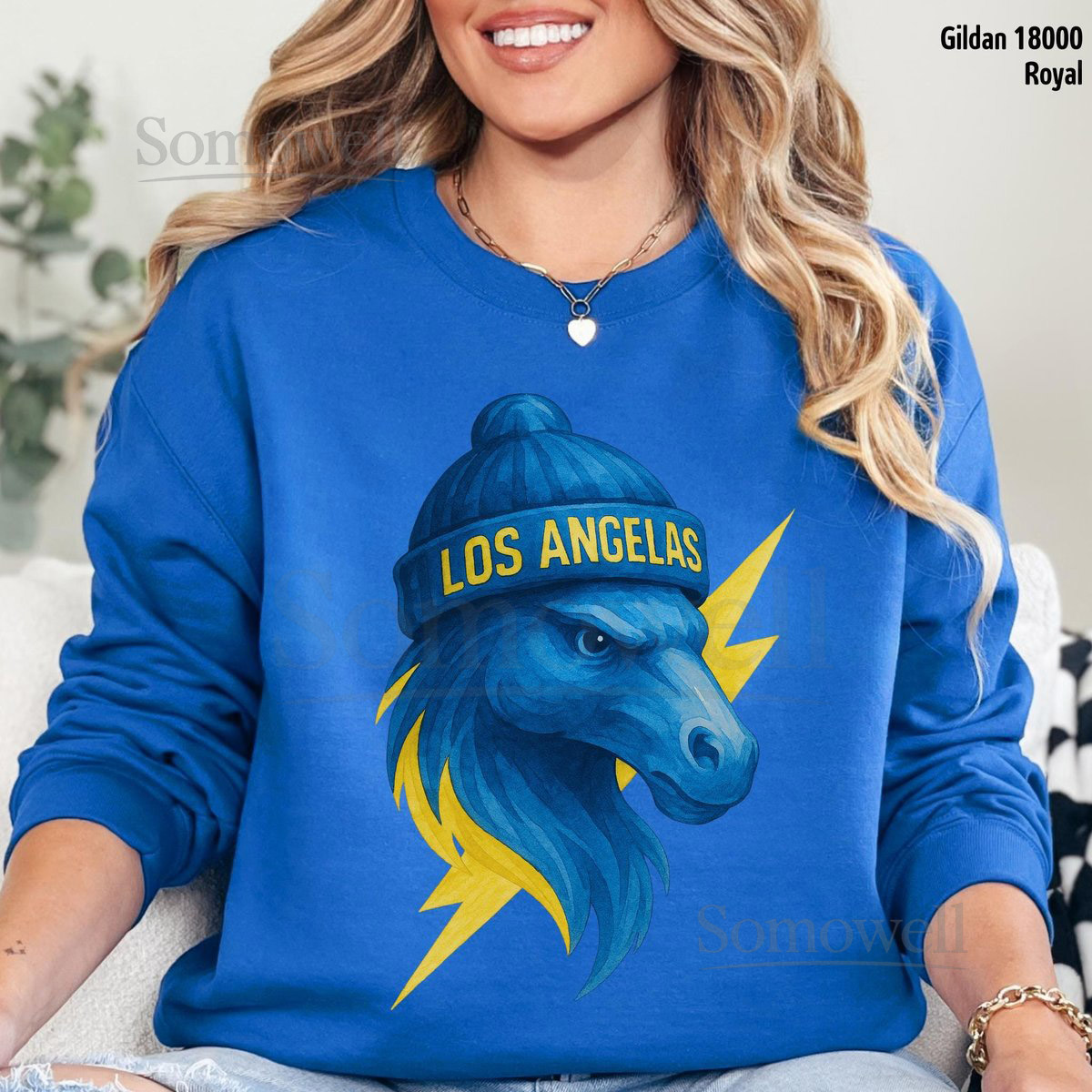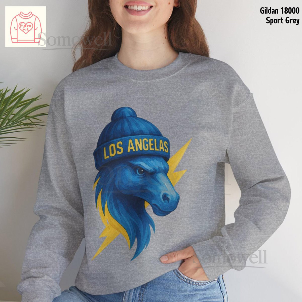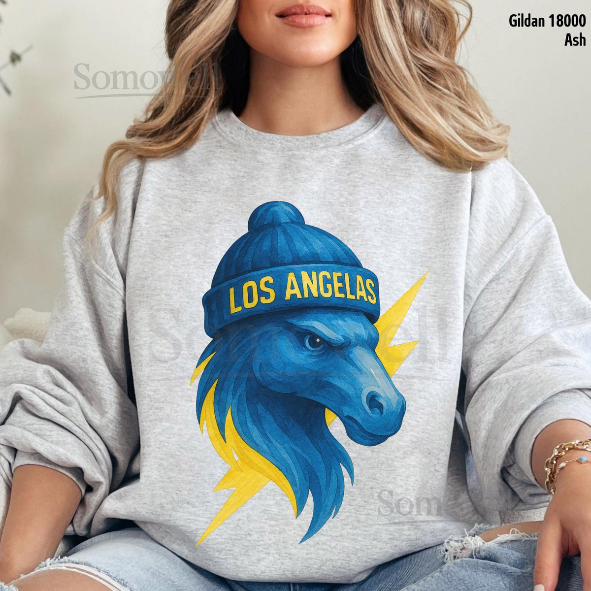 LA Thunder Horse Sweatshirt Watercolor-Style Crewneck Los Angeles-Inspired Soft Vintage Horse Design FamFit32-07_55