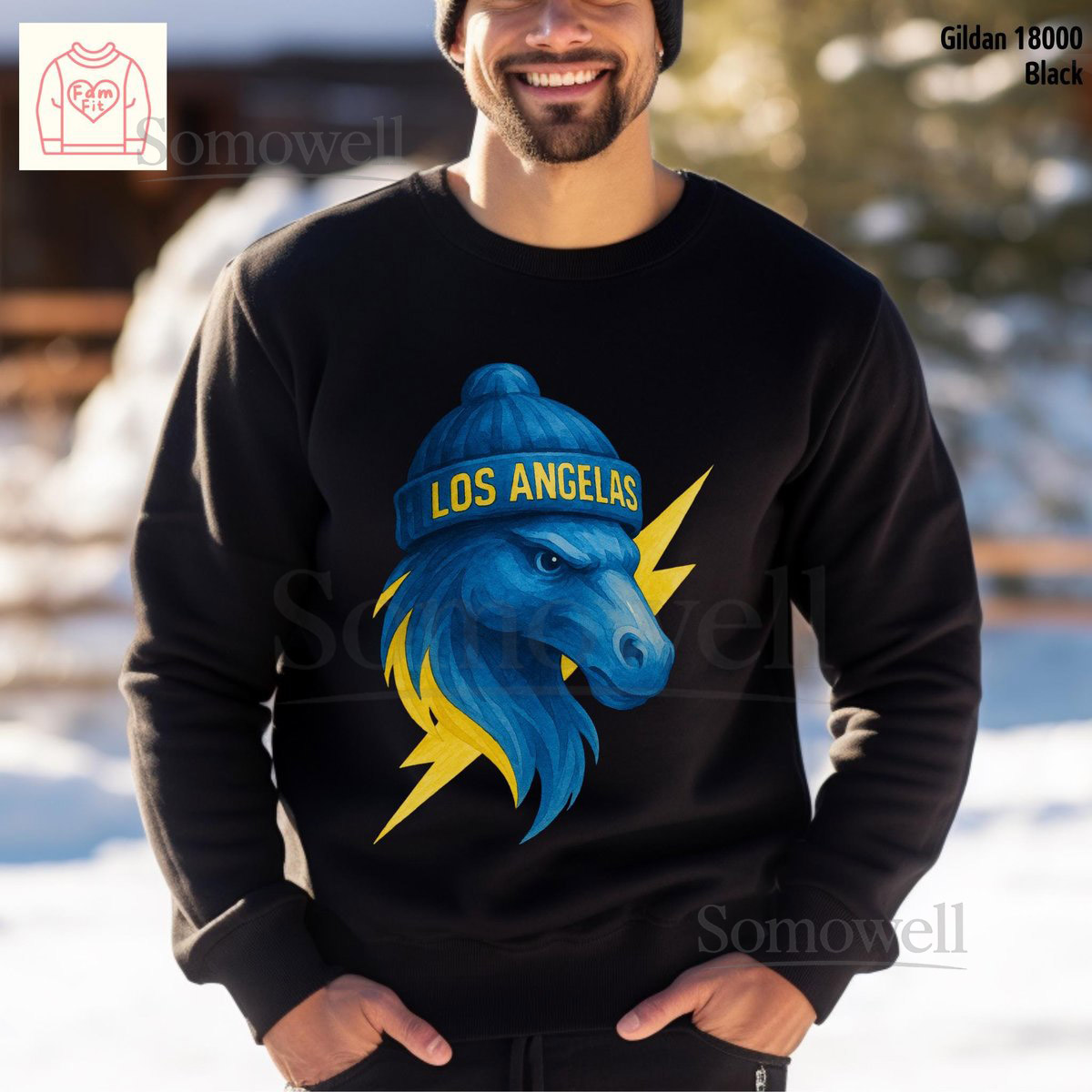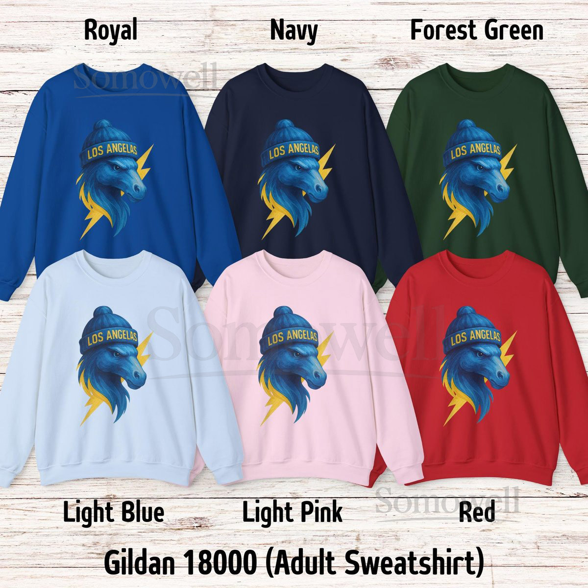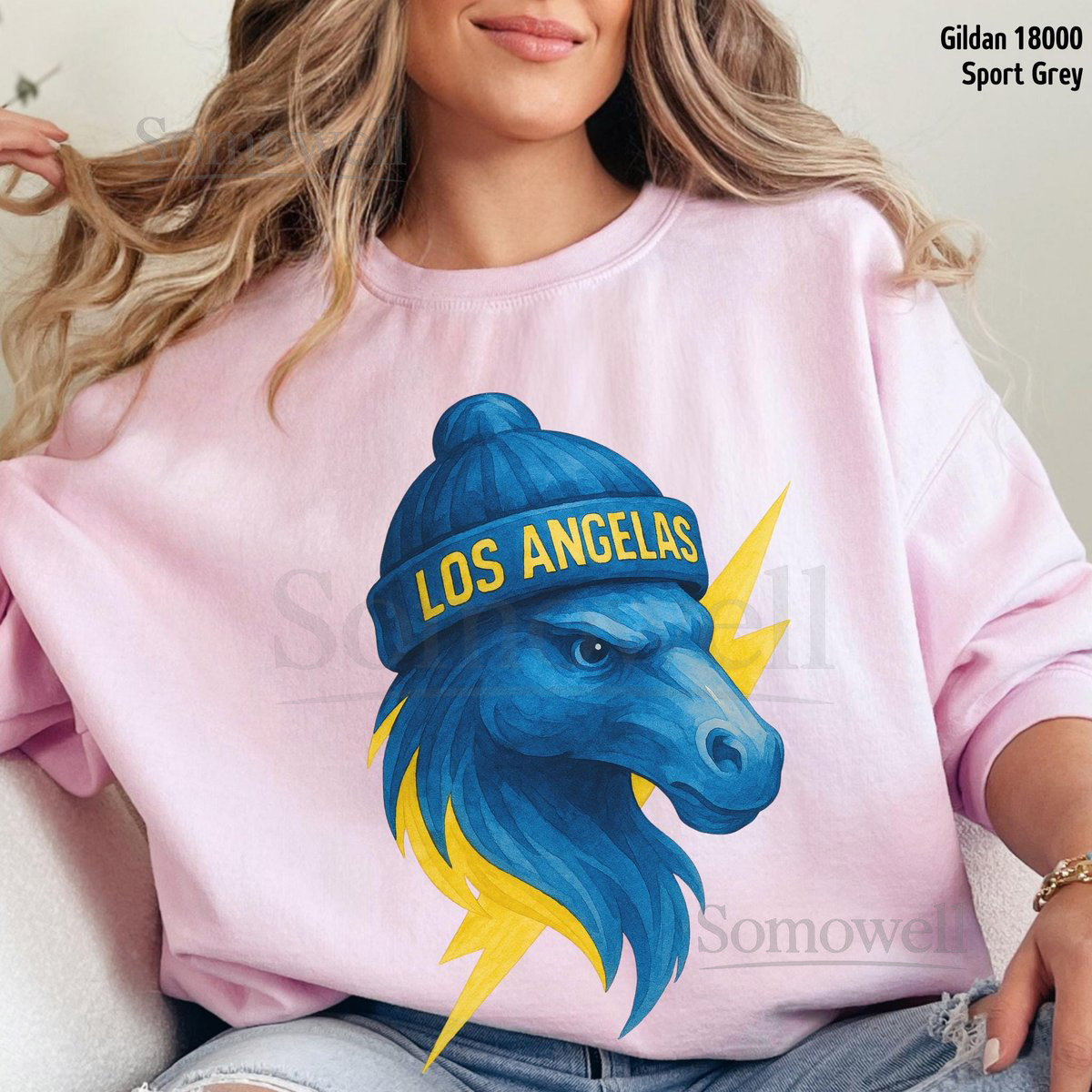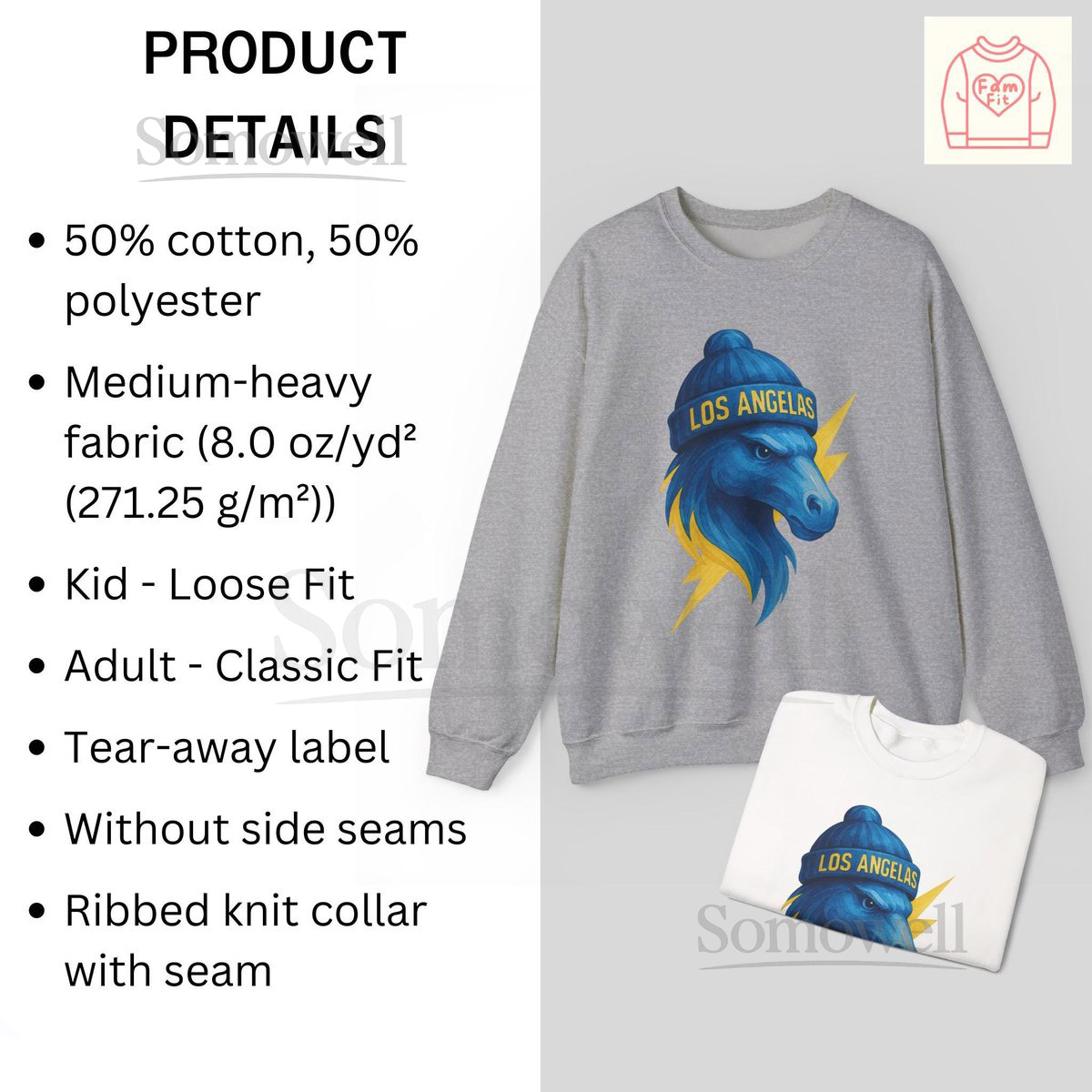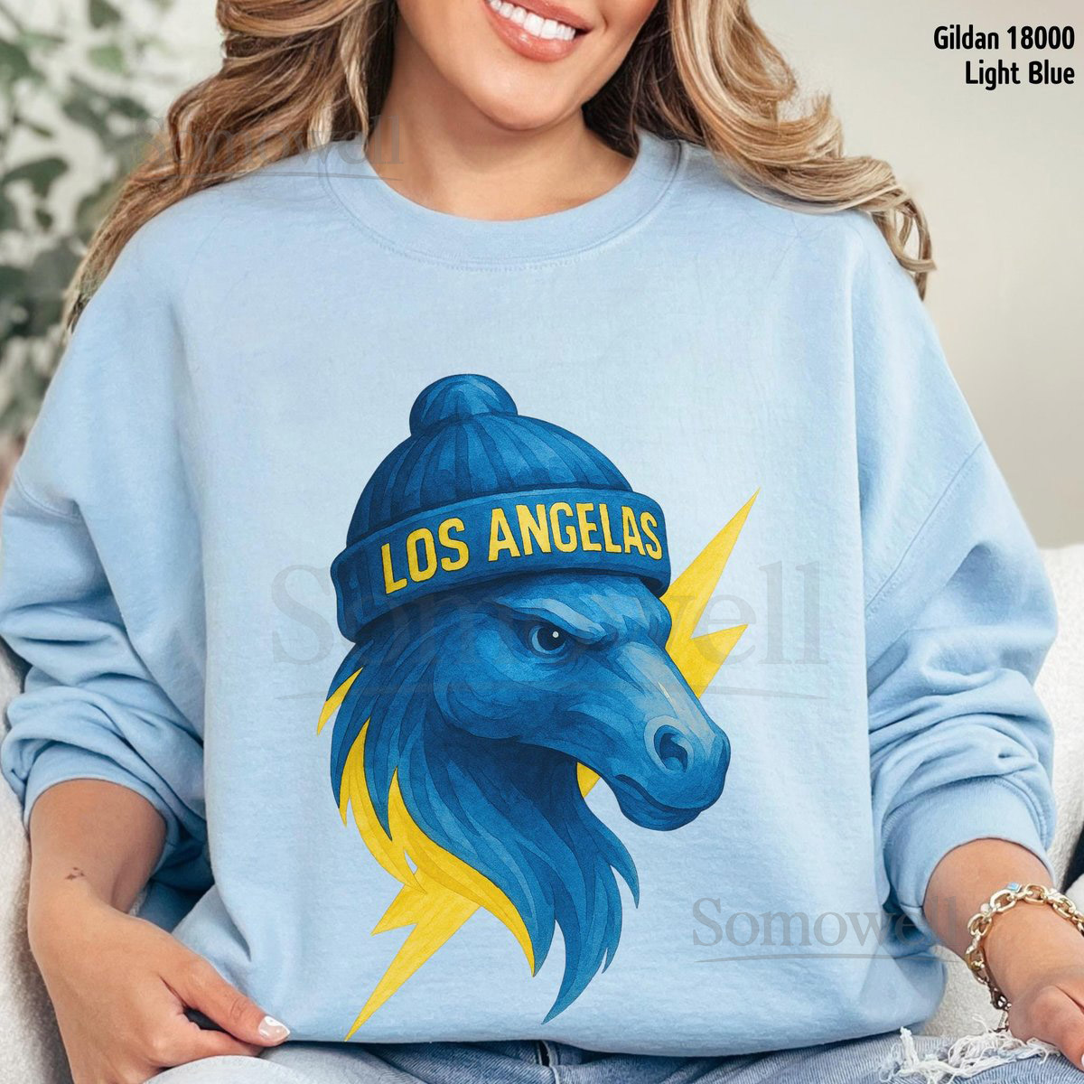 LA Thunder Horse Sweatshirt Watercolor-Style Crewneck Los Angeles-Inspired Soft Vintage Horse Design FamFit32-07_55