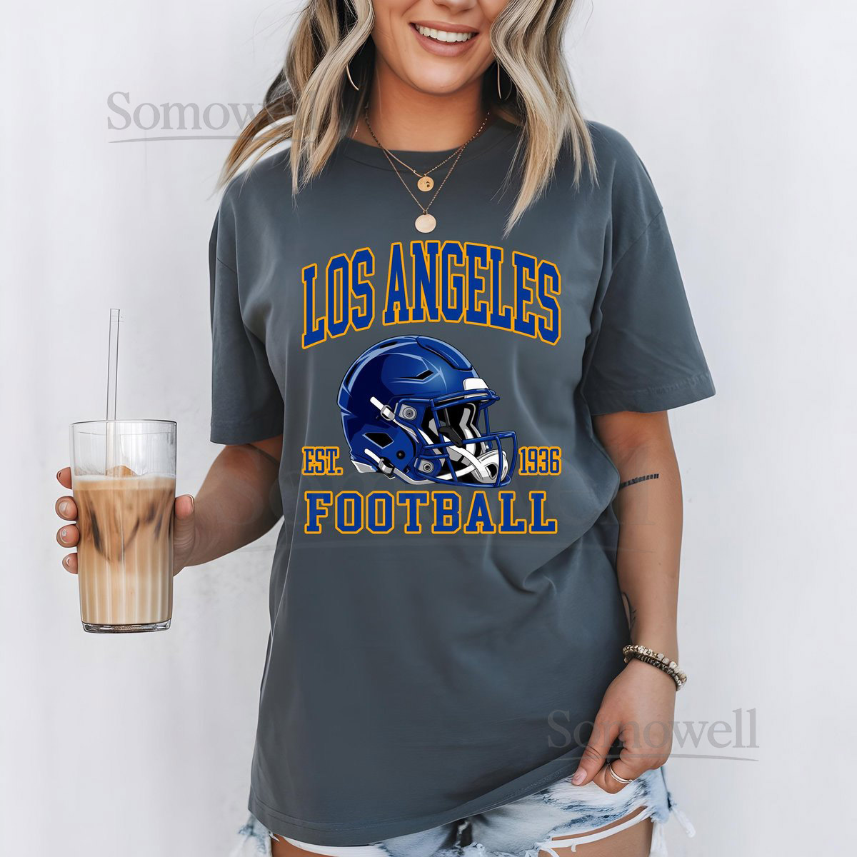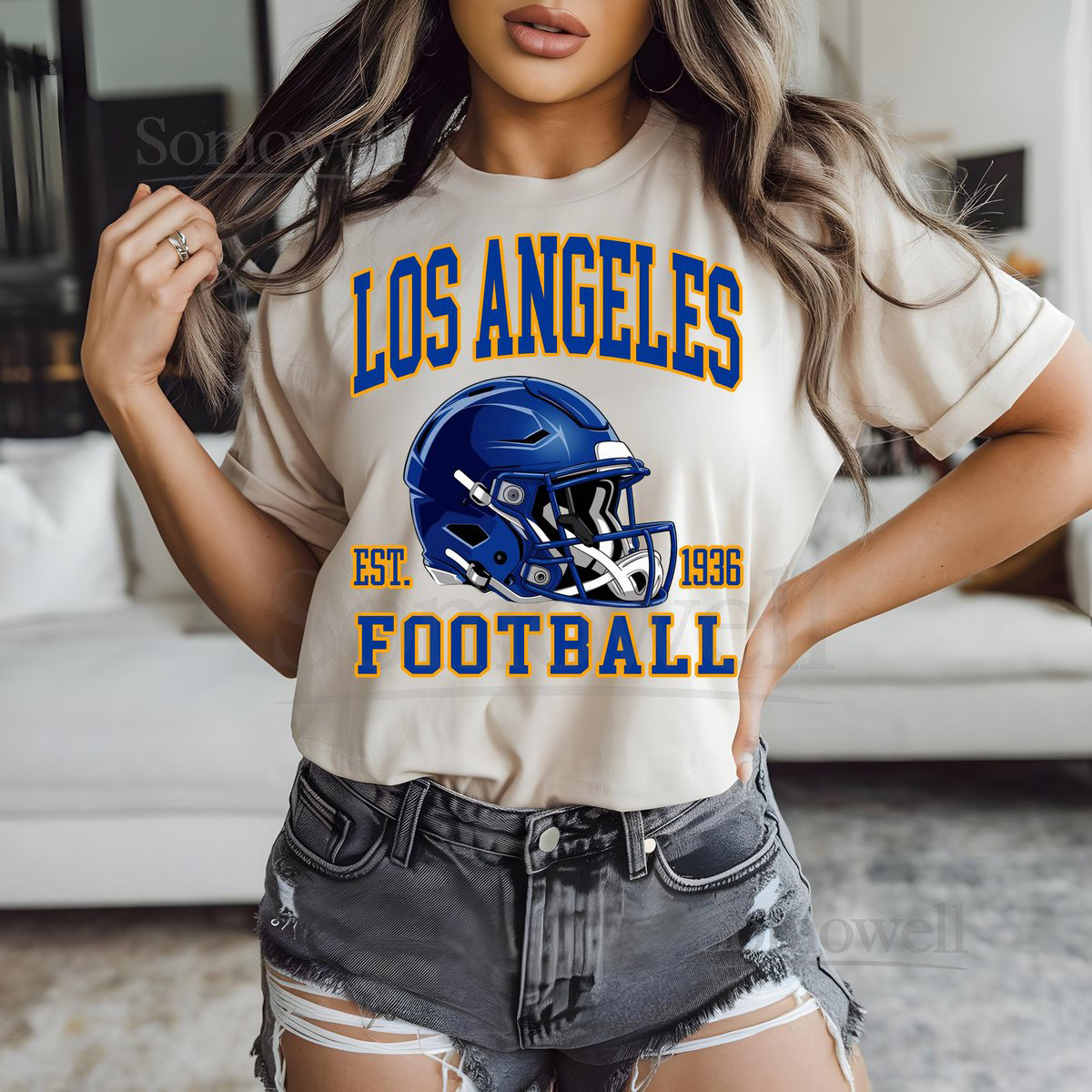 Los Angeles Football Helmet T-Shirt LA Rams Sweatshirt Established 1936 LA Rams Apparel Comfort Colors Gift for Football Fan_78