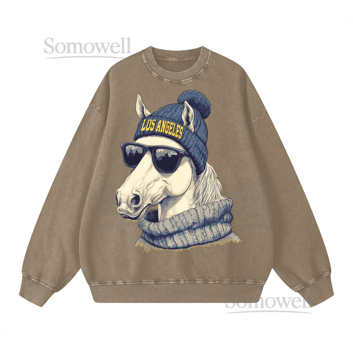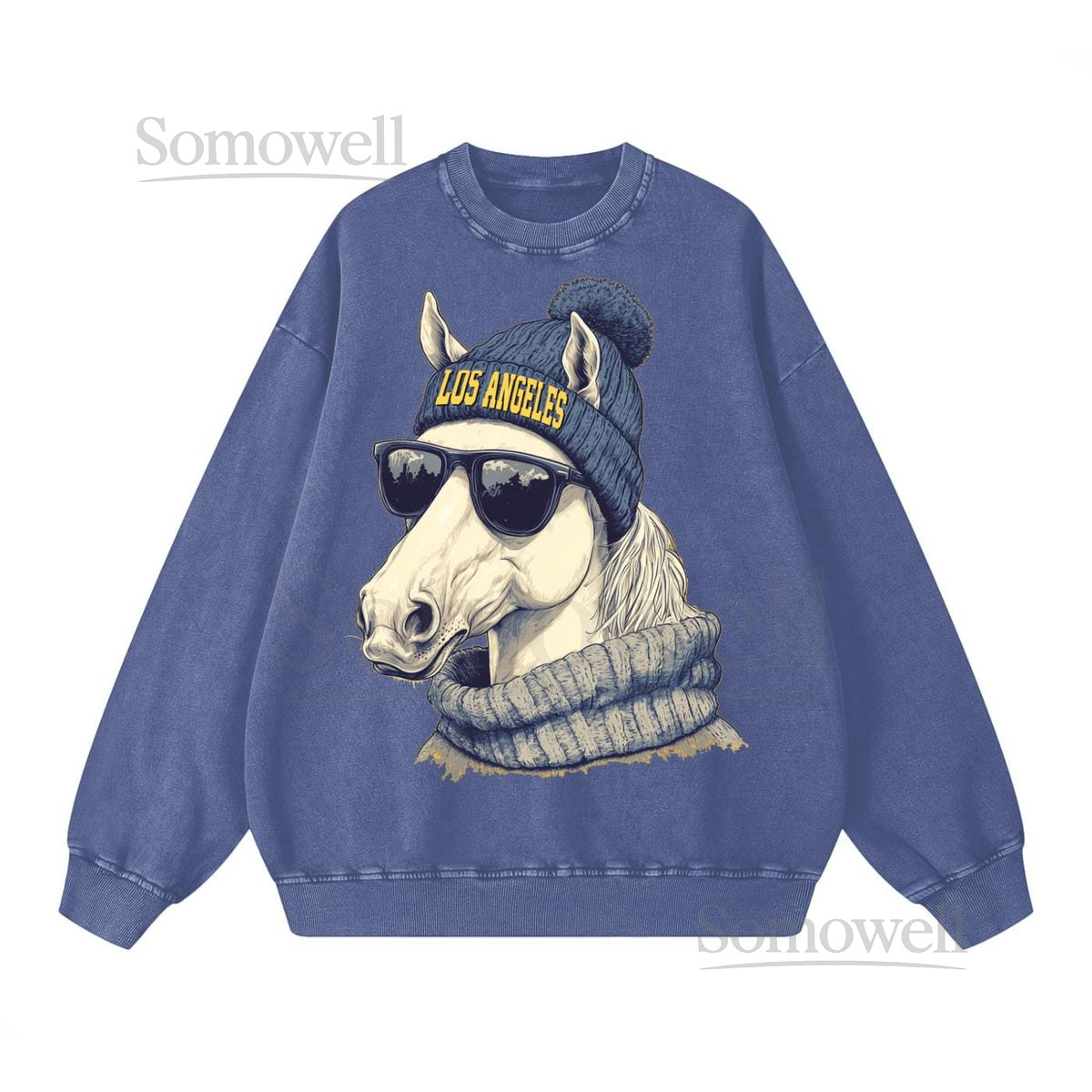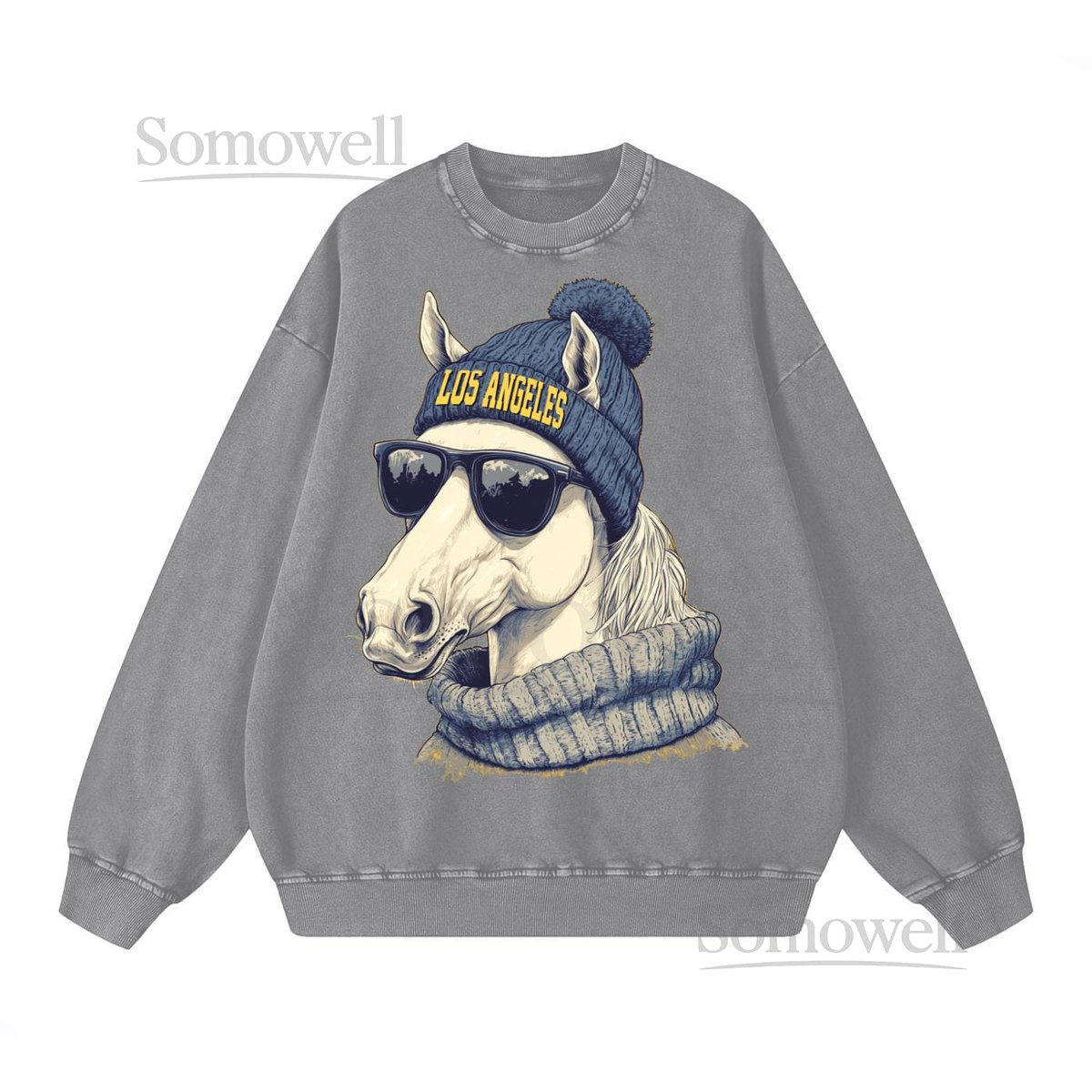 Los Angeles Spirit Animal Sweatshirt Vintage Style Oversize Crewneck Acid Wash Game Day Sweater_102