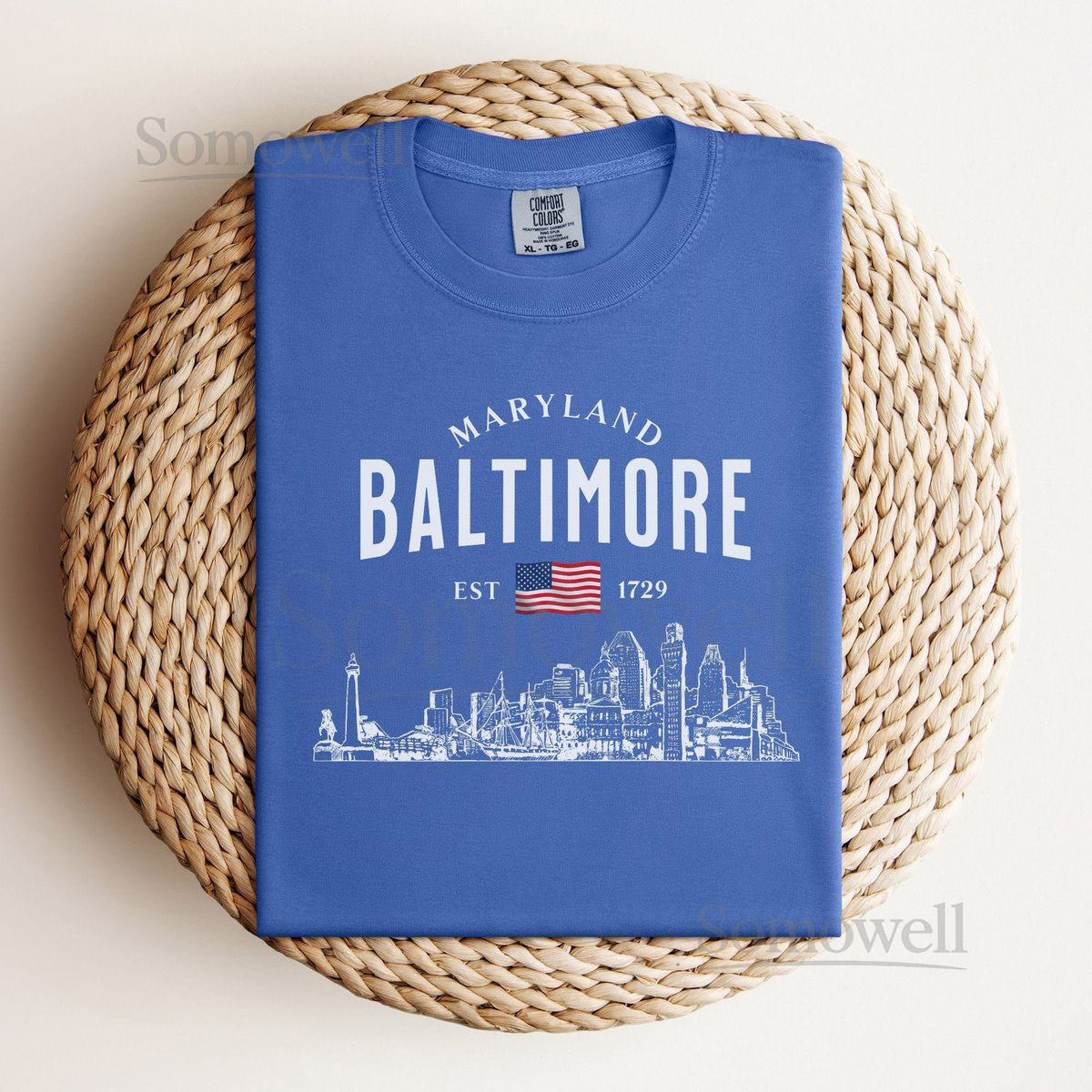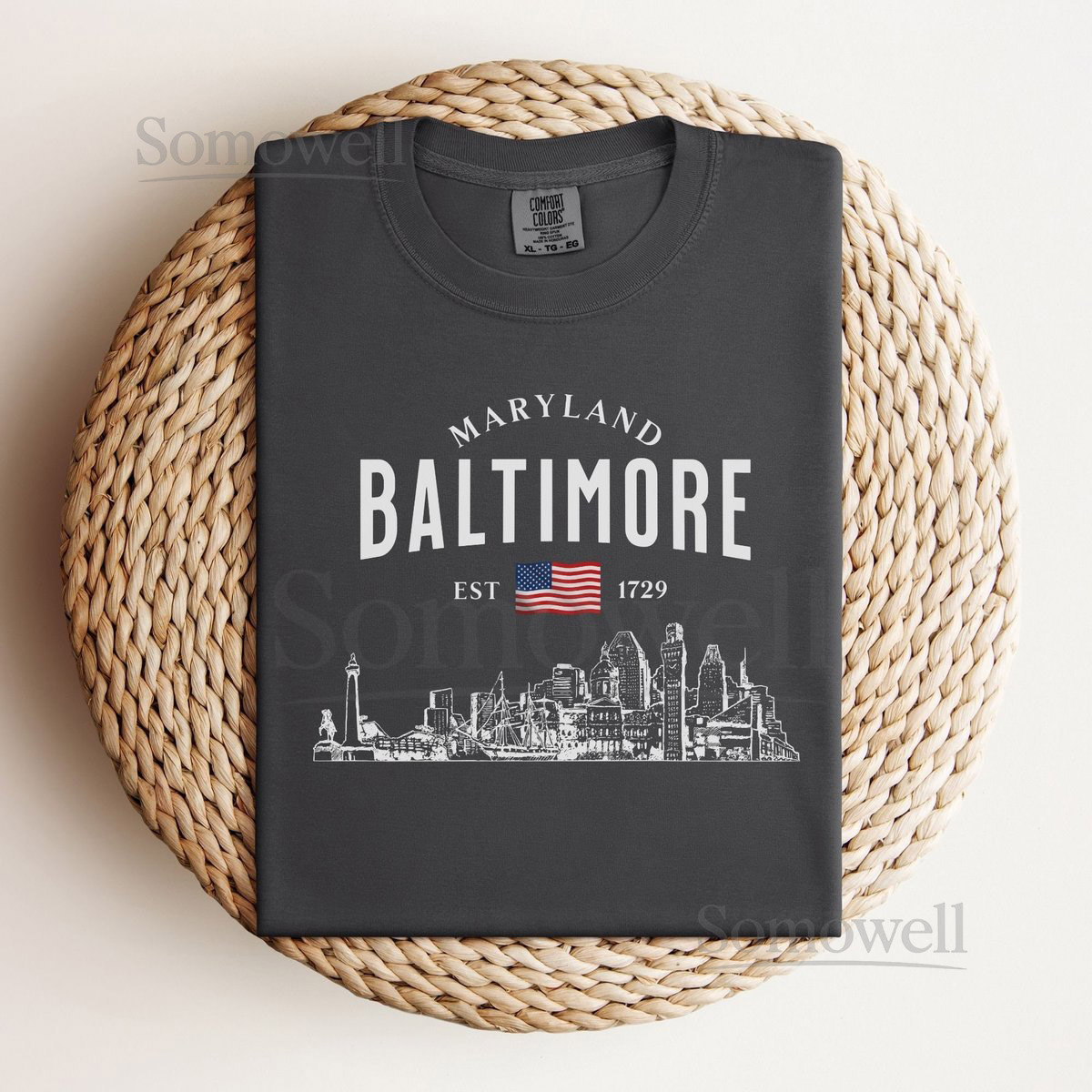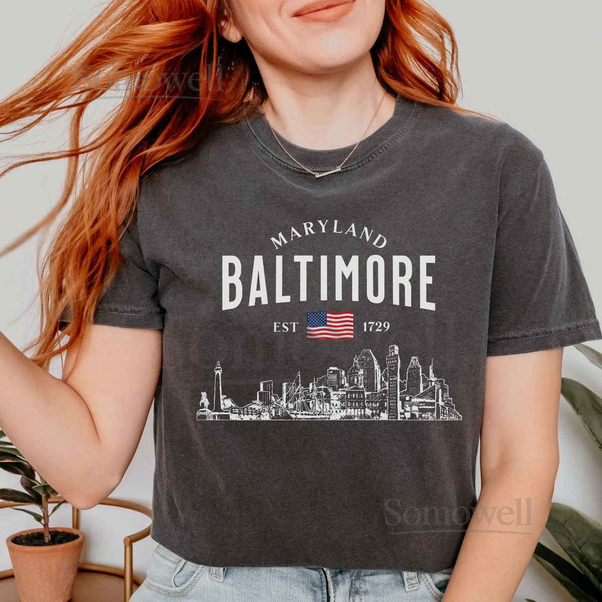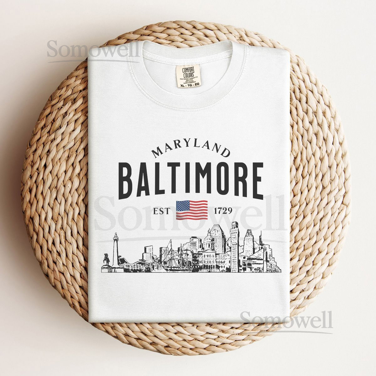 Baltimore City Sketch T-Shirt Vintage Skyline Tee Maryland Souvenir Unisex Retro Aesthetic Streetwear Shirt Comfort Colors Shirt_56