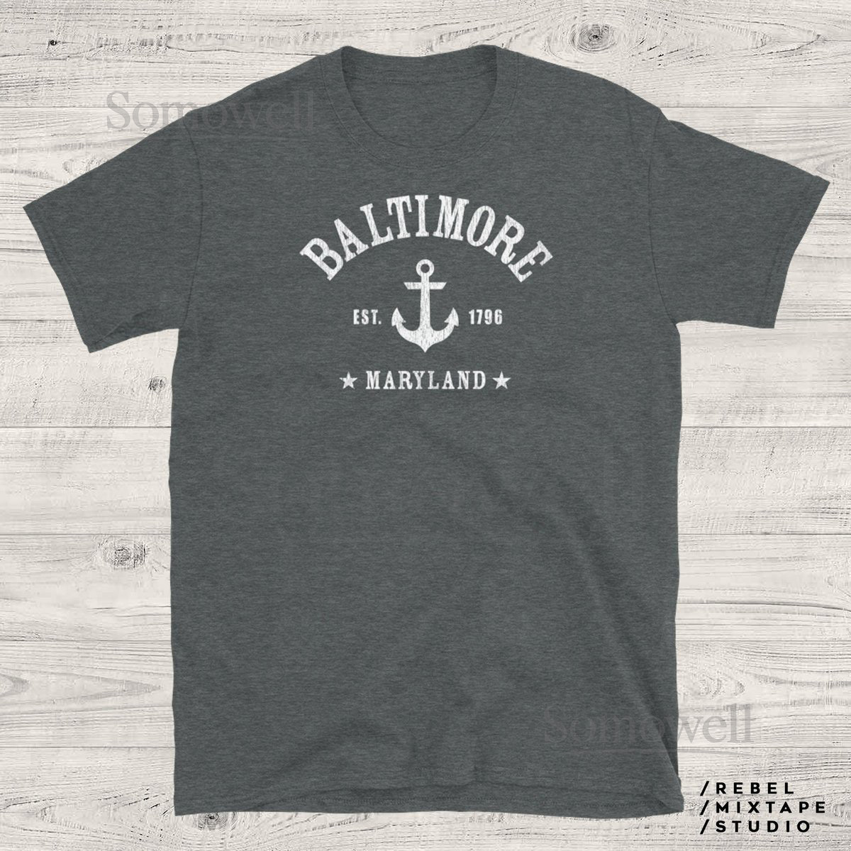 BALTIMORE Shirt Unisex W. Distressed Vintage Texture Baltimore MD Maryland athletic style graphic with anchor Est. Established 1796_120