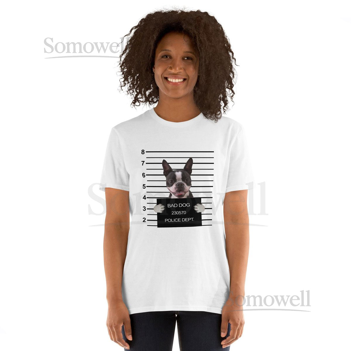 Funny Bad Dog Mugshot Cute Boston Terrier Dog Lover Short-Sleeve Unisex T-Shirt_318