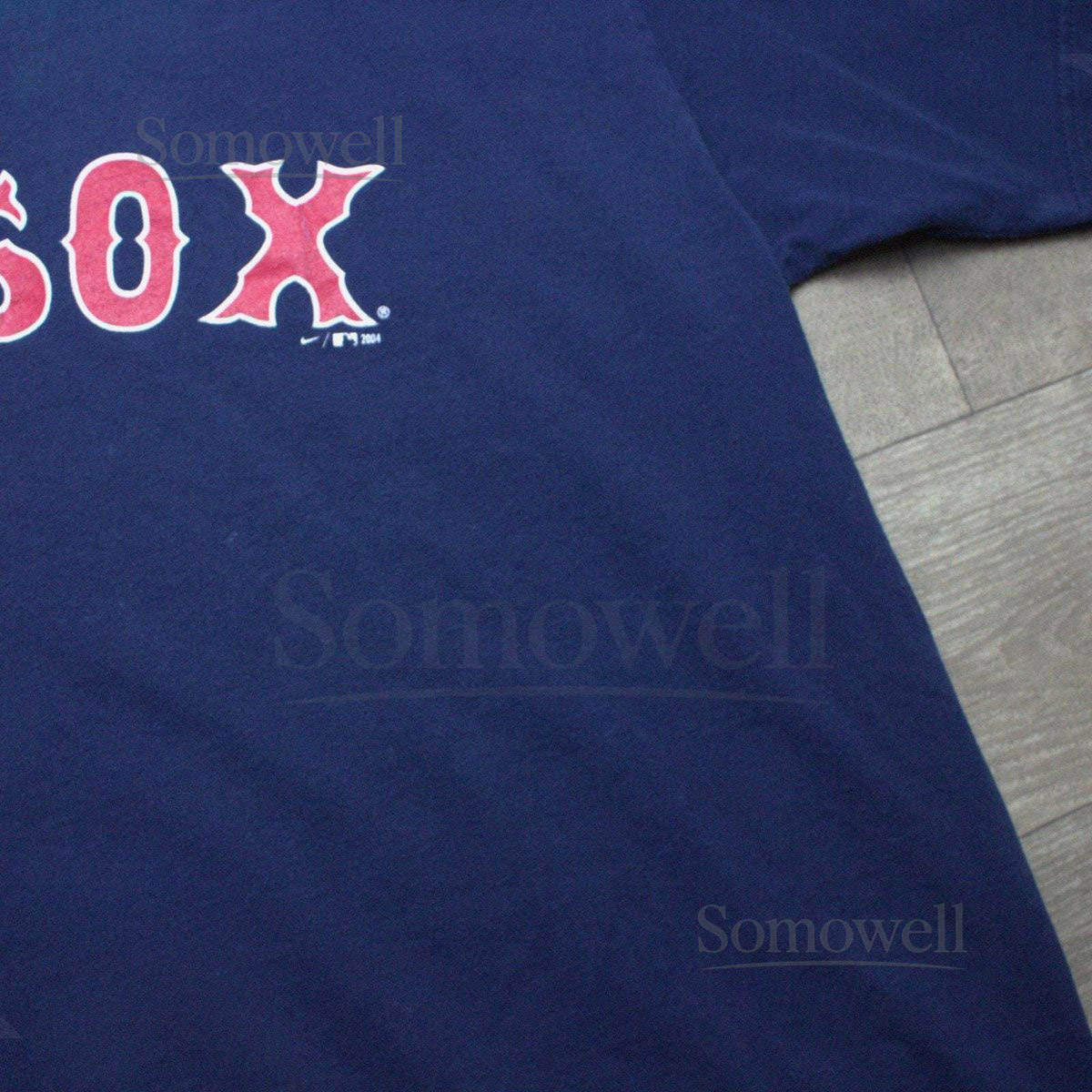 Nike Team Boston Red Sox Mens XL T-Shirt Center Swoosh Y2K Navy Blue Vtg 2004_483
