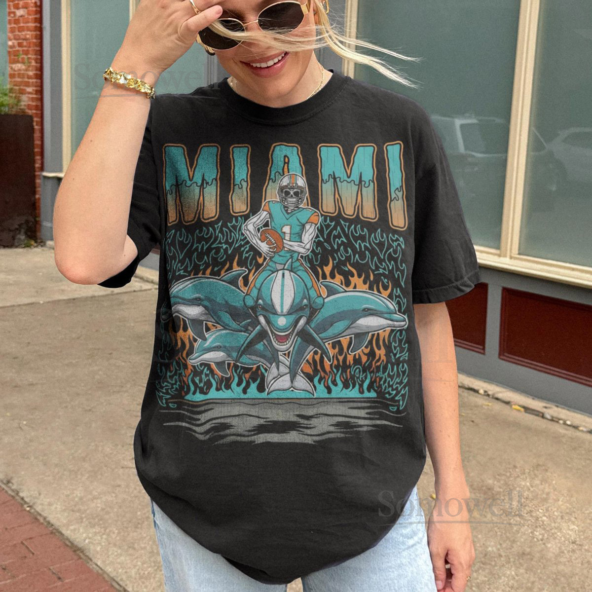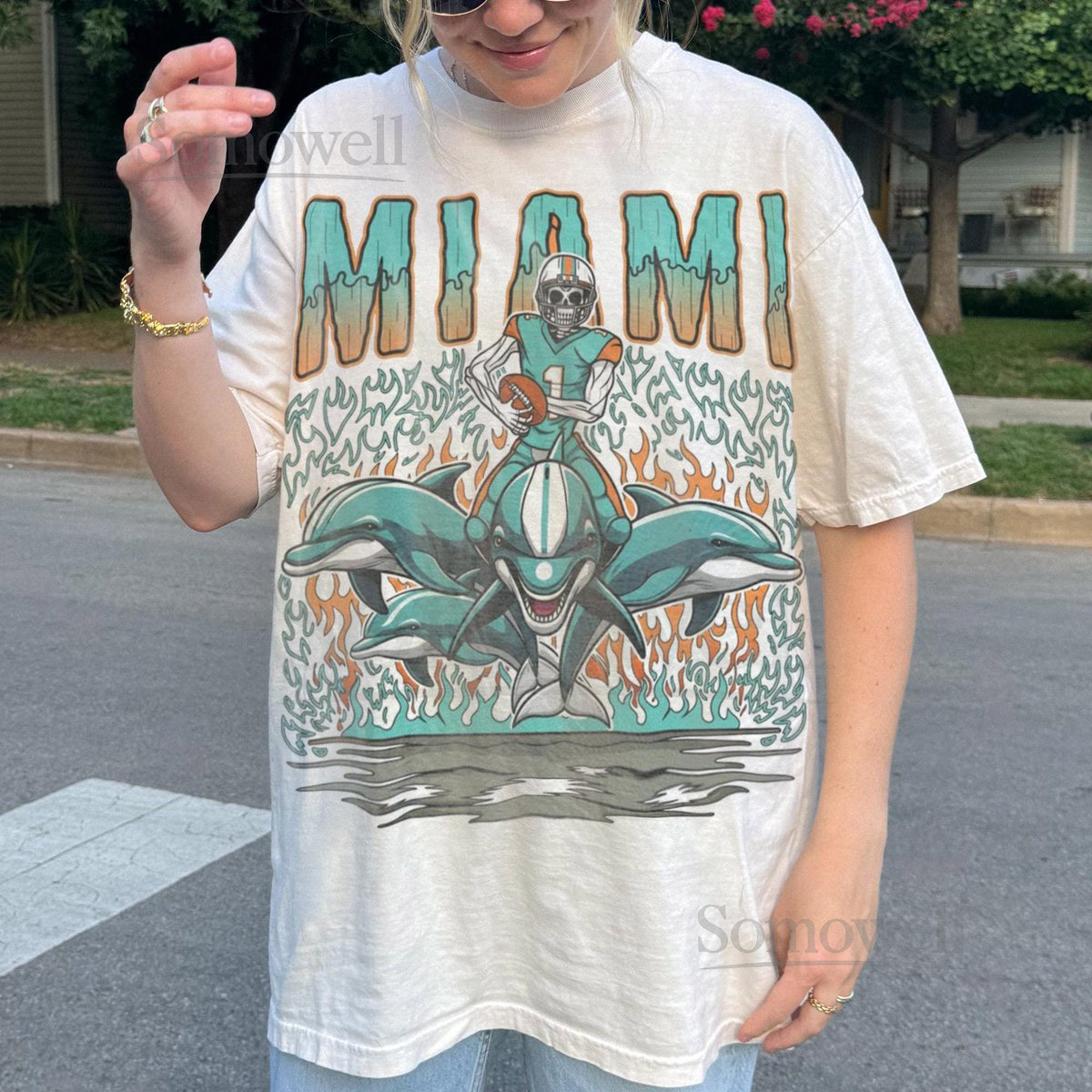 Retro Miami Football Shirt Comfort Colors Dolphins Tee Vintage 90s Game Day Football T-Shirt Old School Merch_538