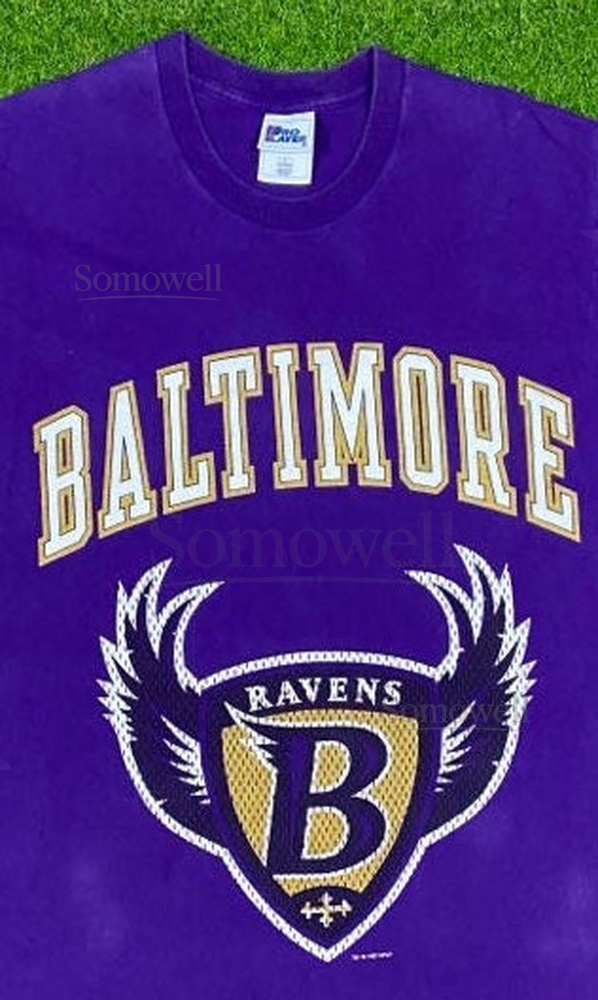 Vintage Baltimore Ravens T Shirt Tee Pro Layer Made USA Large NFL Football Maryland Orioles University of Maryland Ray Lewis All Over Print_652