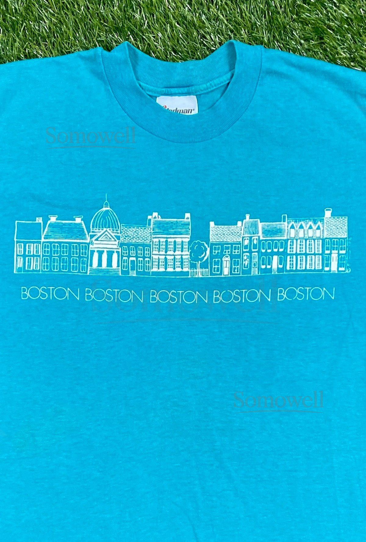 Vintage Boston T Shirt Tee Stedman Made USA Size Medium M Massachusetts New England Tourist City 1980s 80s_684