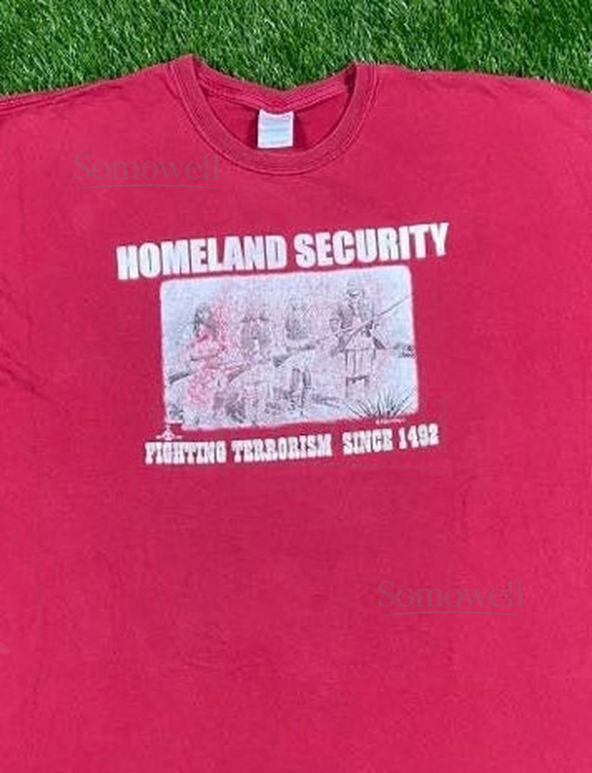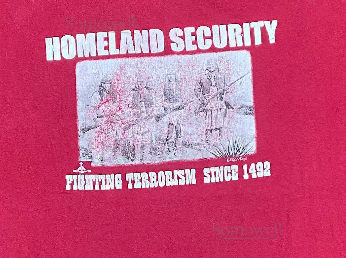 Vintage Homeland Security T Shirt Tee Fighting Terrorism Since 1492 Gildan Size XXL 2XL Native Made The Authentic Original_690