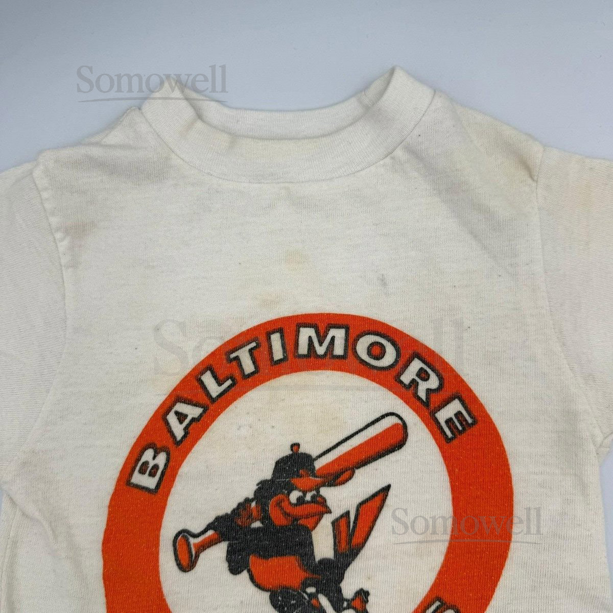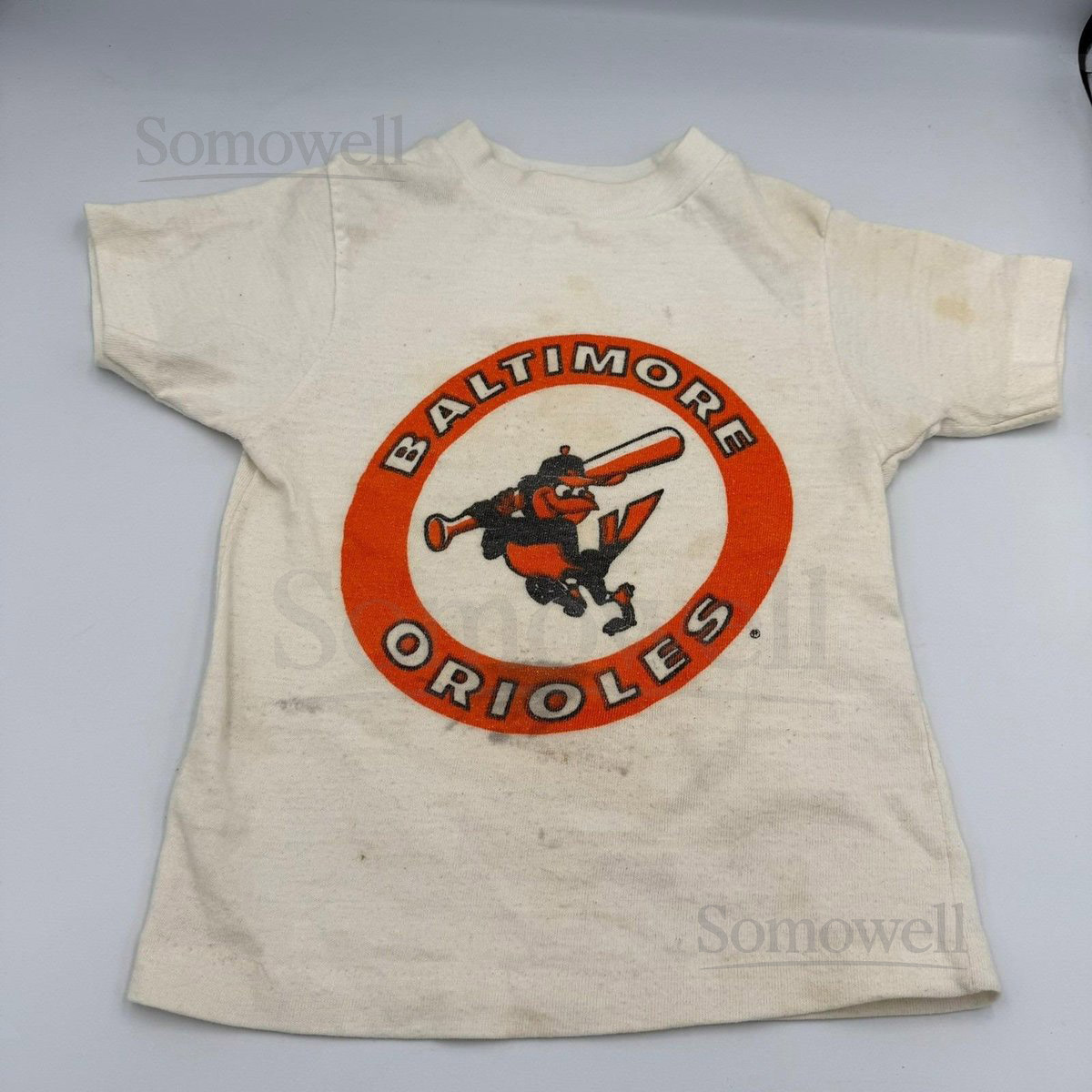 Vtg 70-80s Baltimore Orioles T-Shirt Youth XS MLB Cartoon Mascot STAINED_722