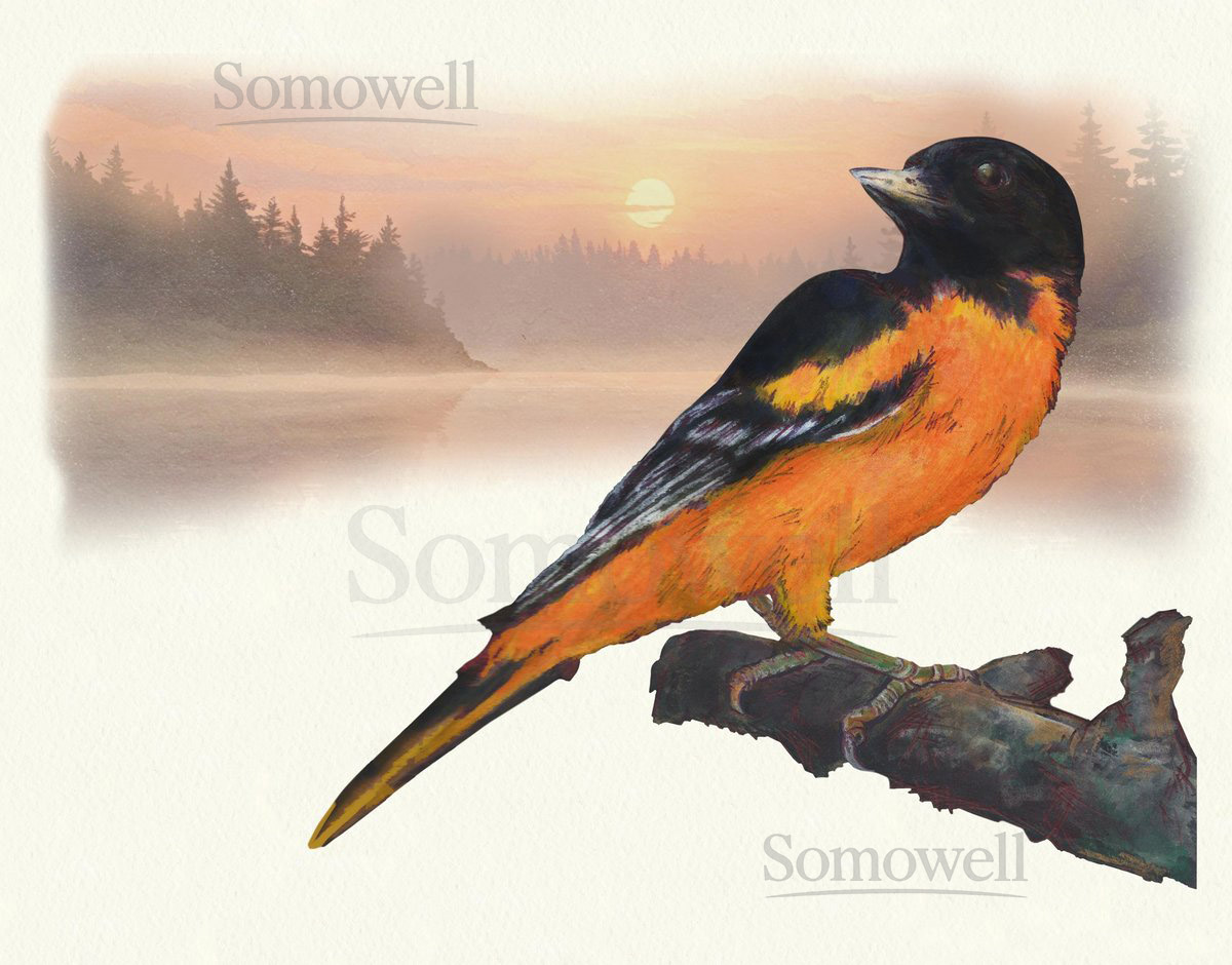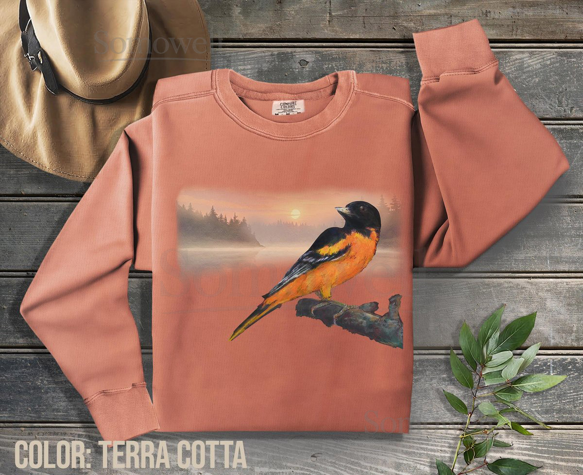 Vintage Baltimore Oriole Watercolor on Comfort Colors Sweatshirt_636