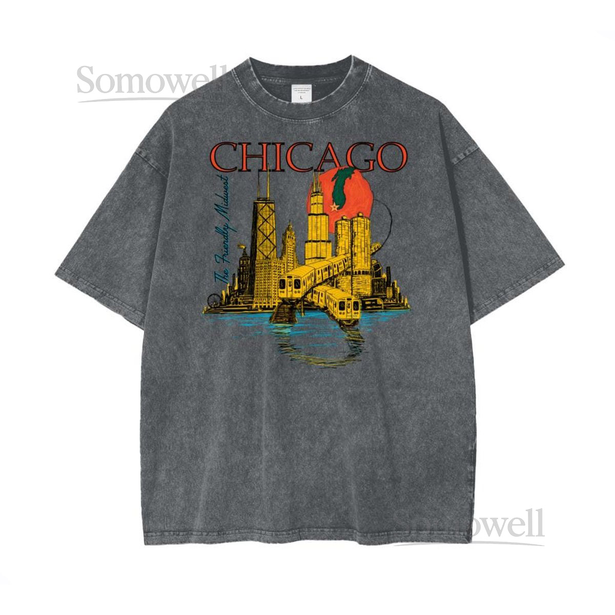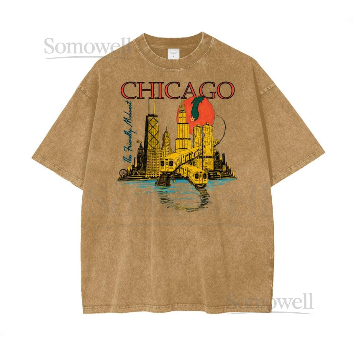 Chicago Architecture Vintage Style T-Shirt Snow Washed_162