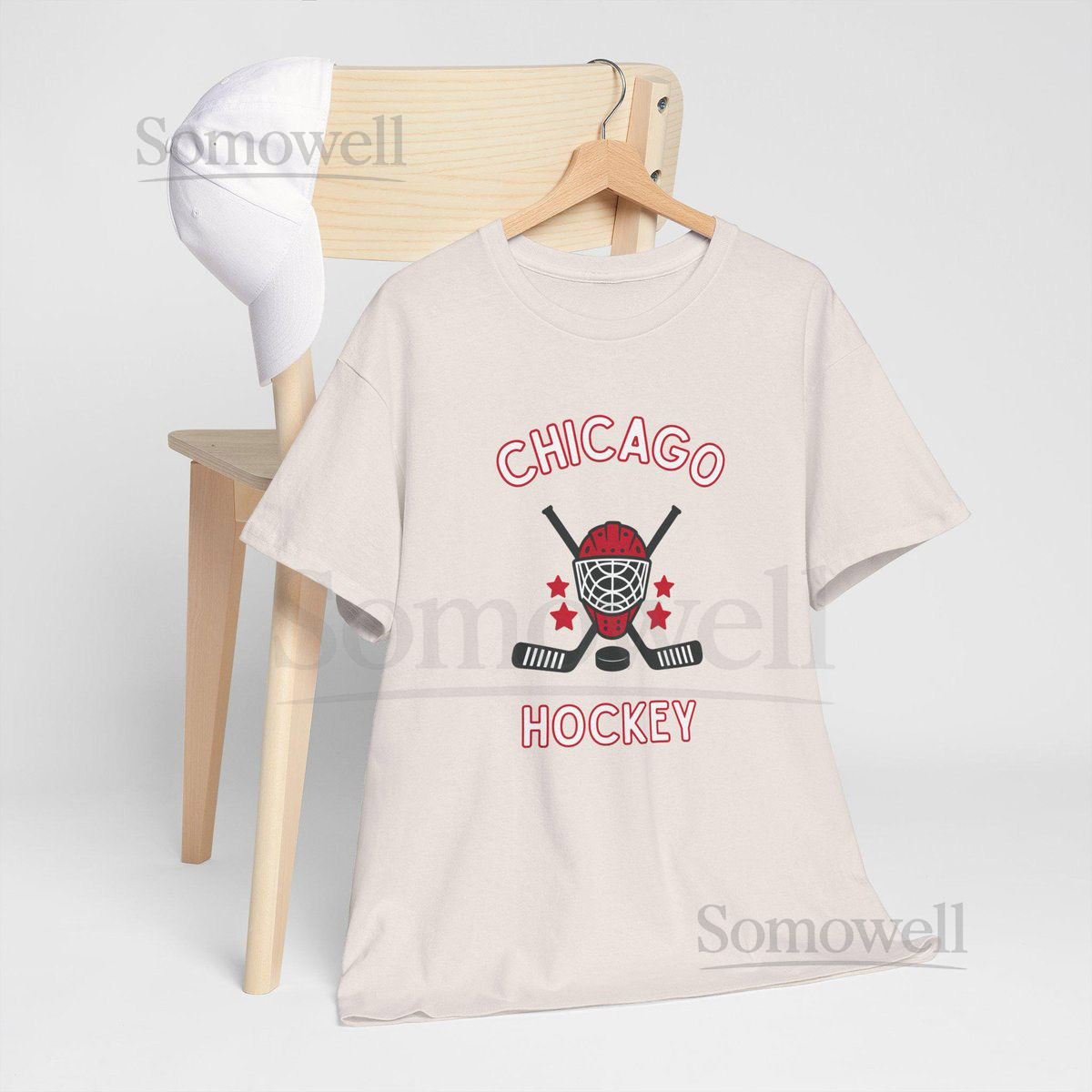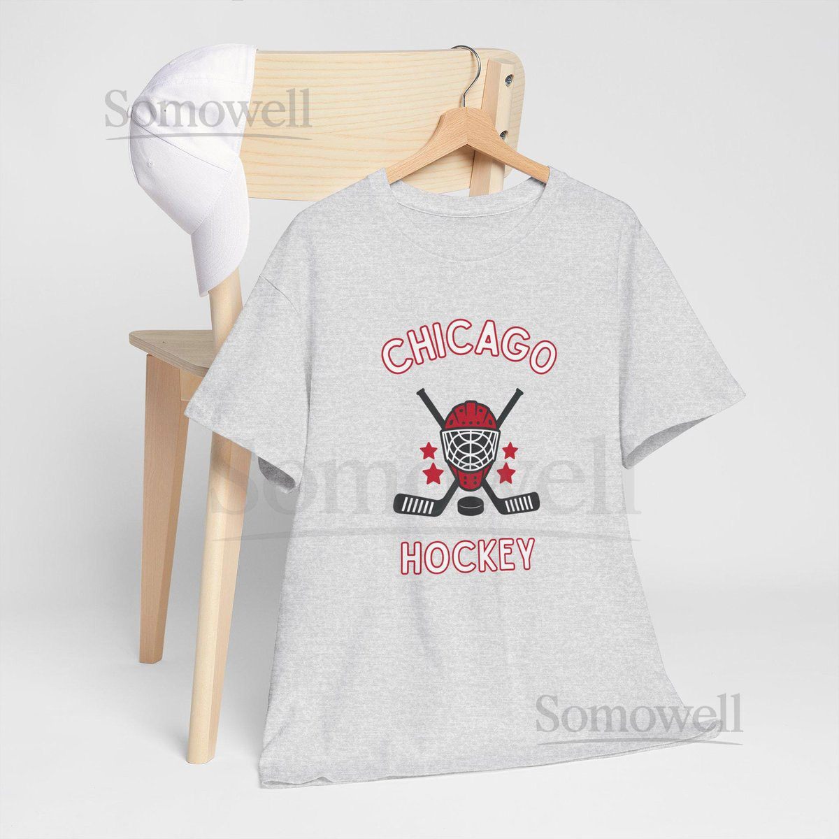 Chicago Hockey Unisex Heavy Cotton Tee Hockey Fan Shirt Sports Apparel Gift for Sports Lovers Casual Wear Team Spirit_214