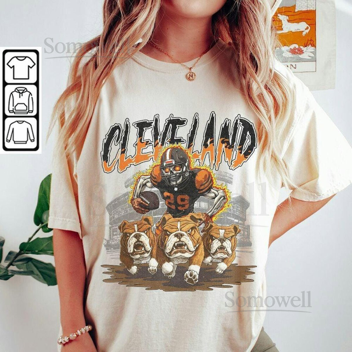 Cleveland Football Skull Shirt Retro Vintage Skeleton Angry Dogs Football Gift Unisex Shirt Trendy Minnesota Football Fan Shirt_299