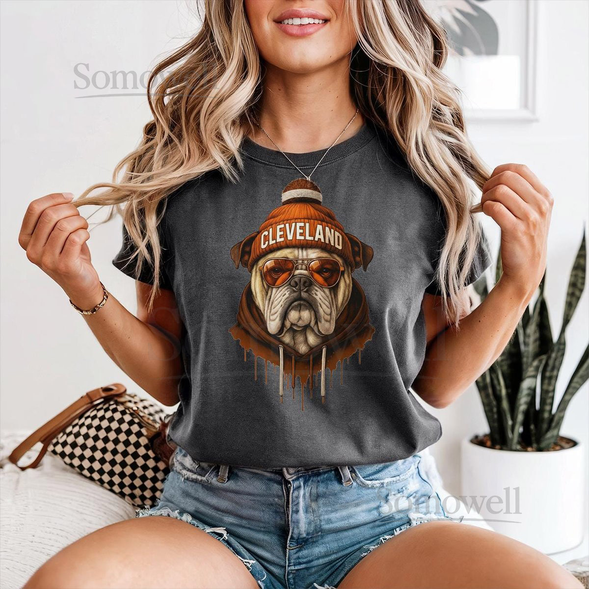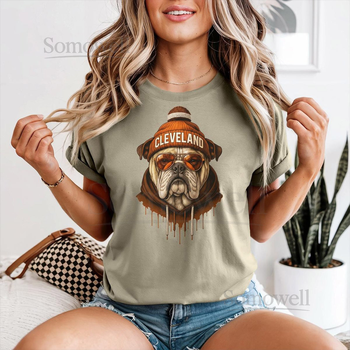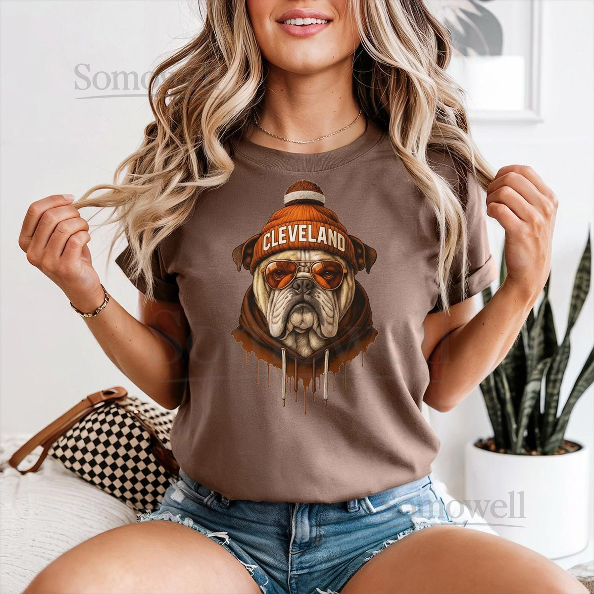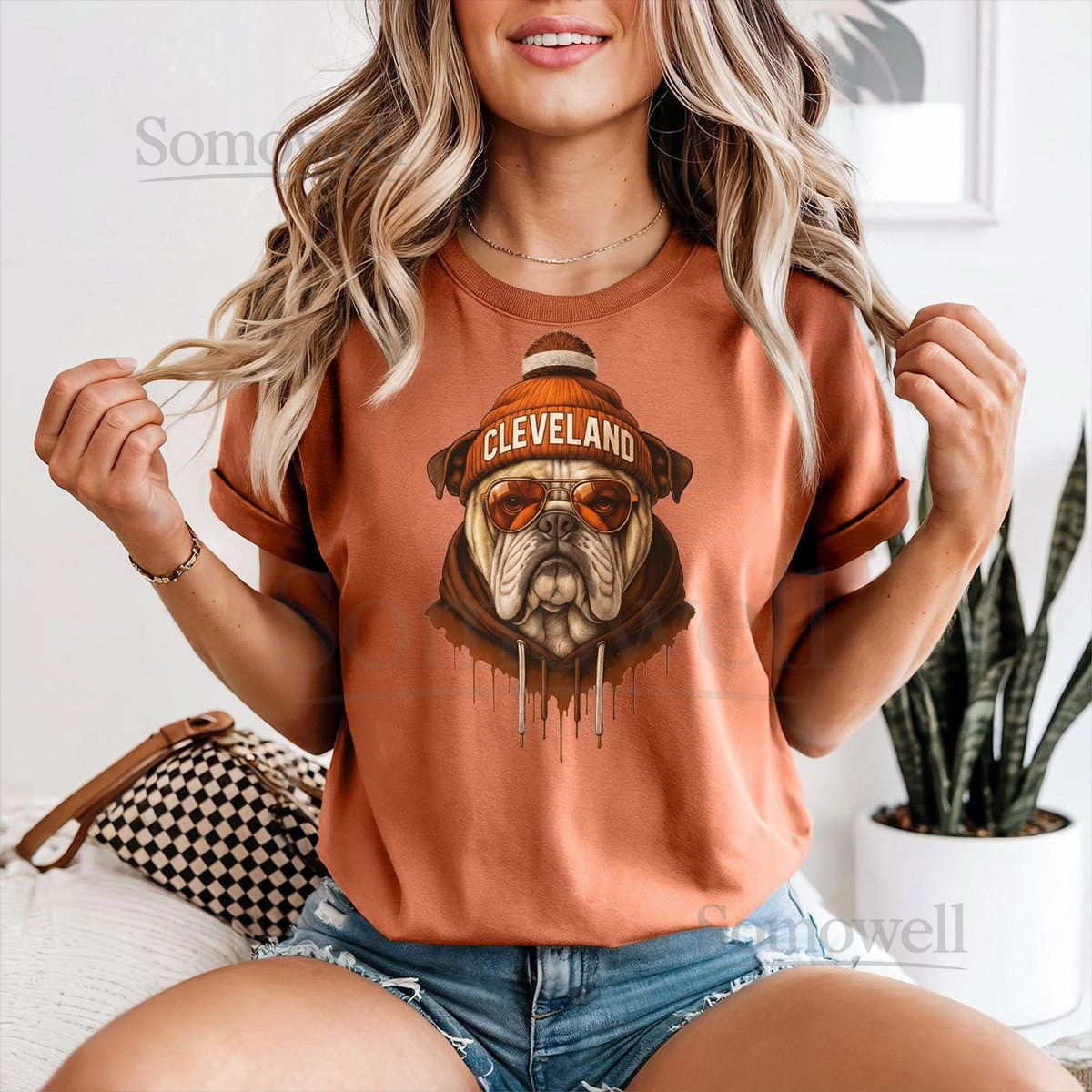 Cleveland Football Tee Orange Brown Dog Graphic T-Shirt_301