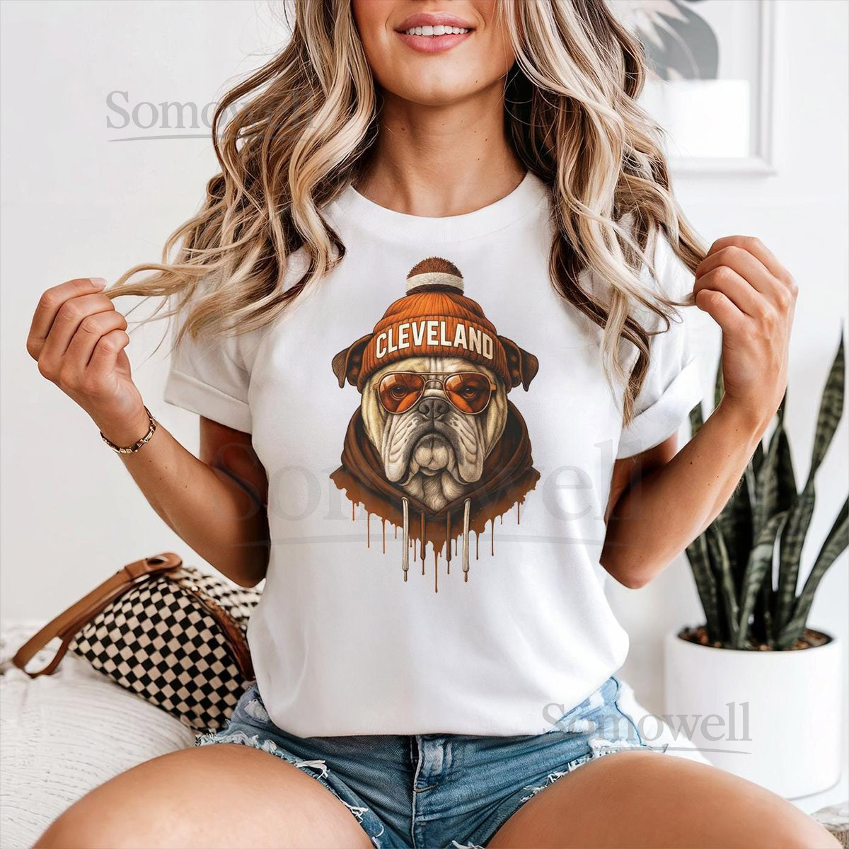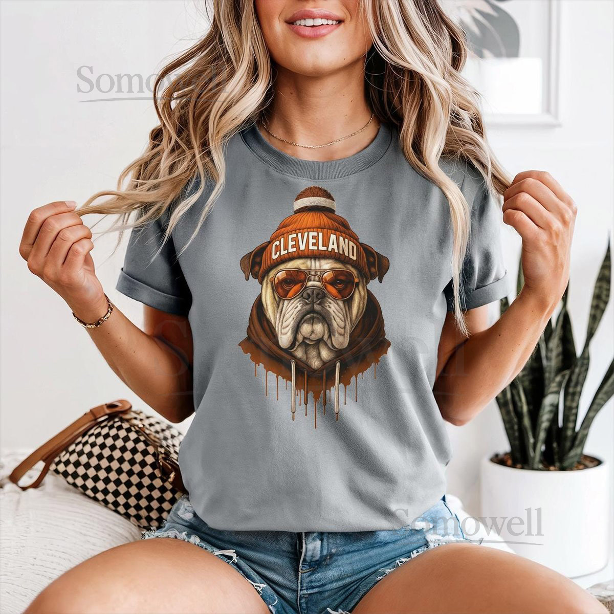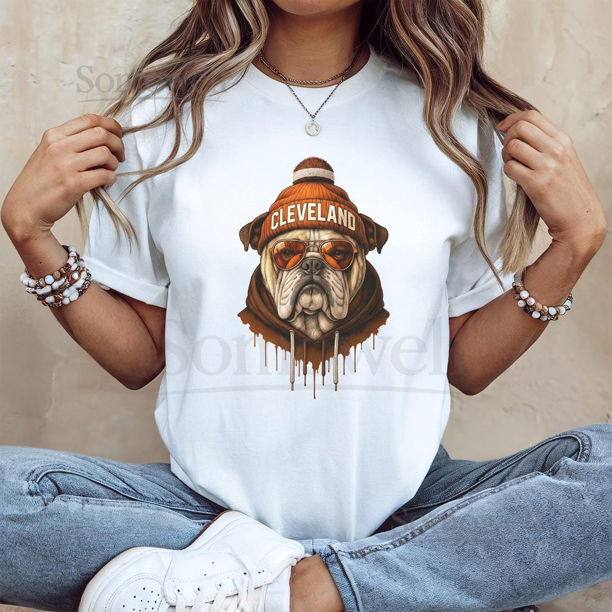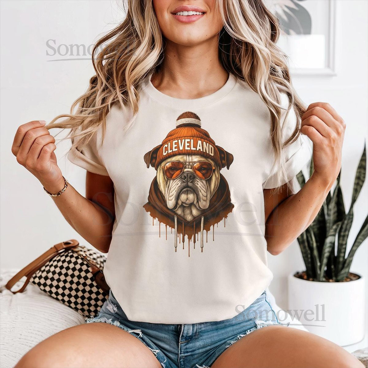 Cleveland Football Tee Orange Brown Dog Graphic T-Shirt_301