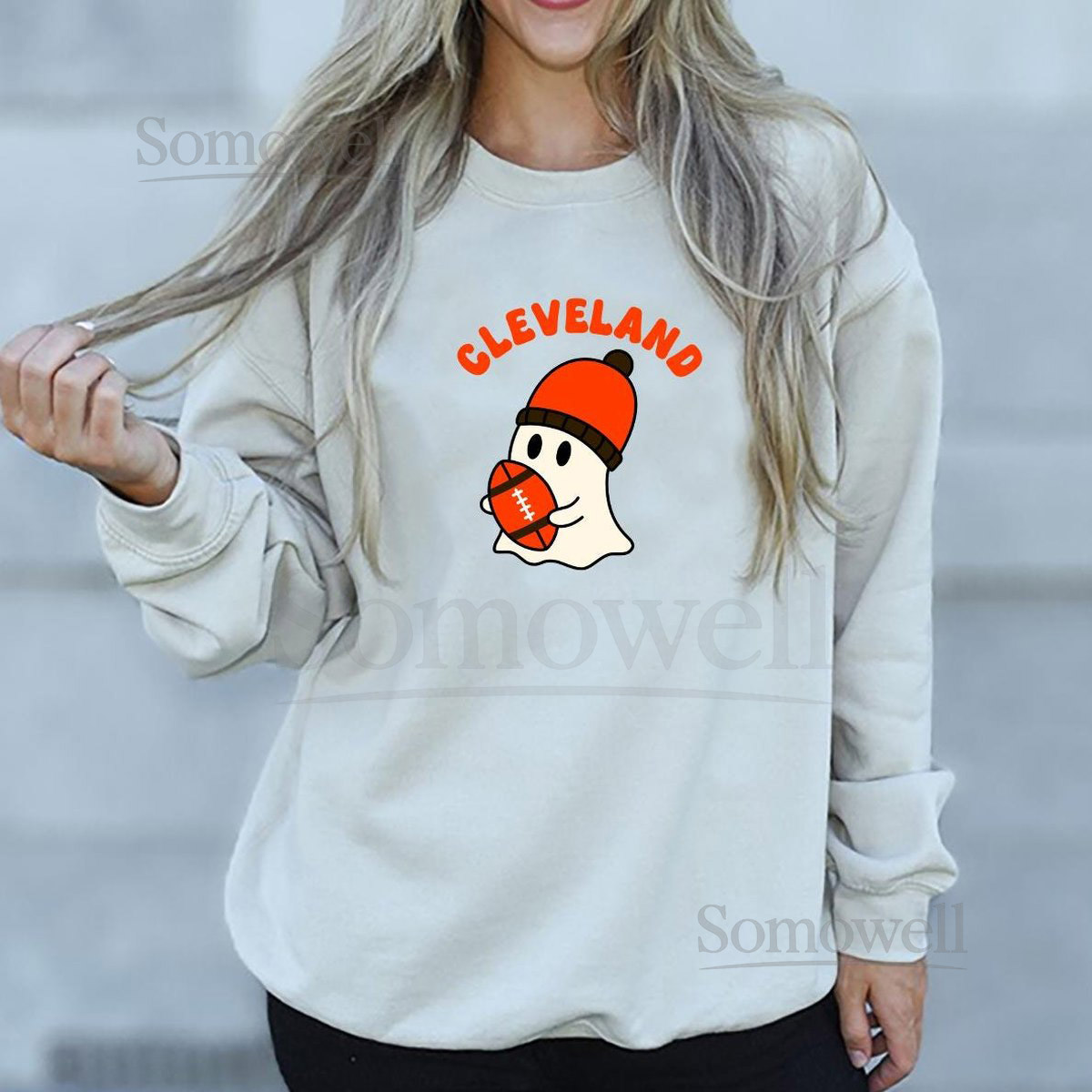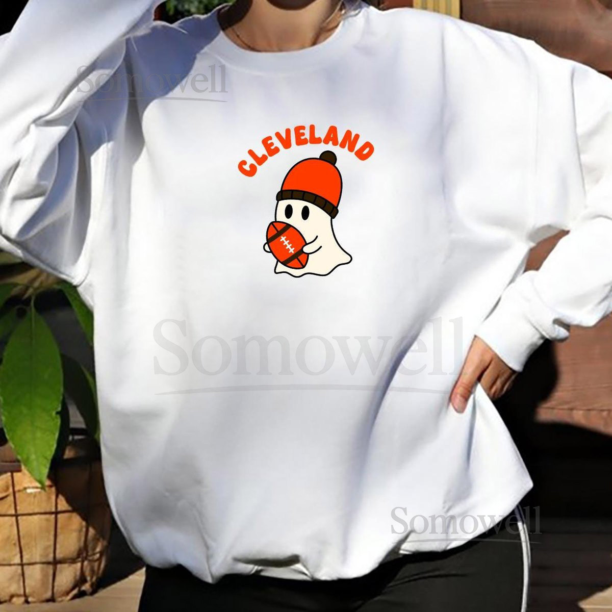 Cleveland Ghost Football Shirt Spooky Game Day Apparel Football Season Trendy Fan Gift Game Day Shirt Team Crewneck Cleveland Fan Tee_305