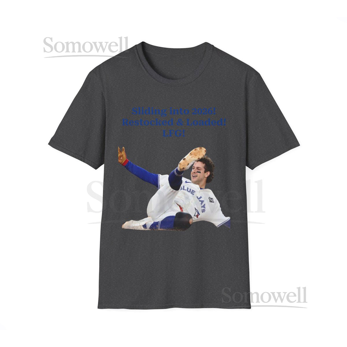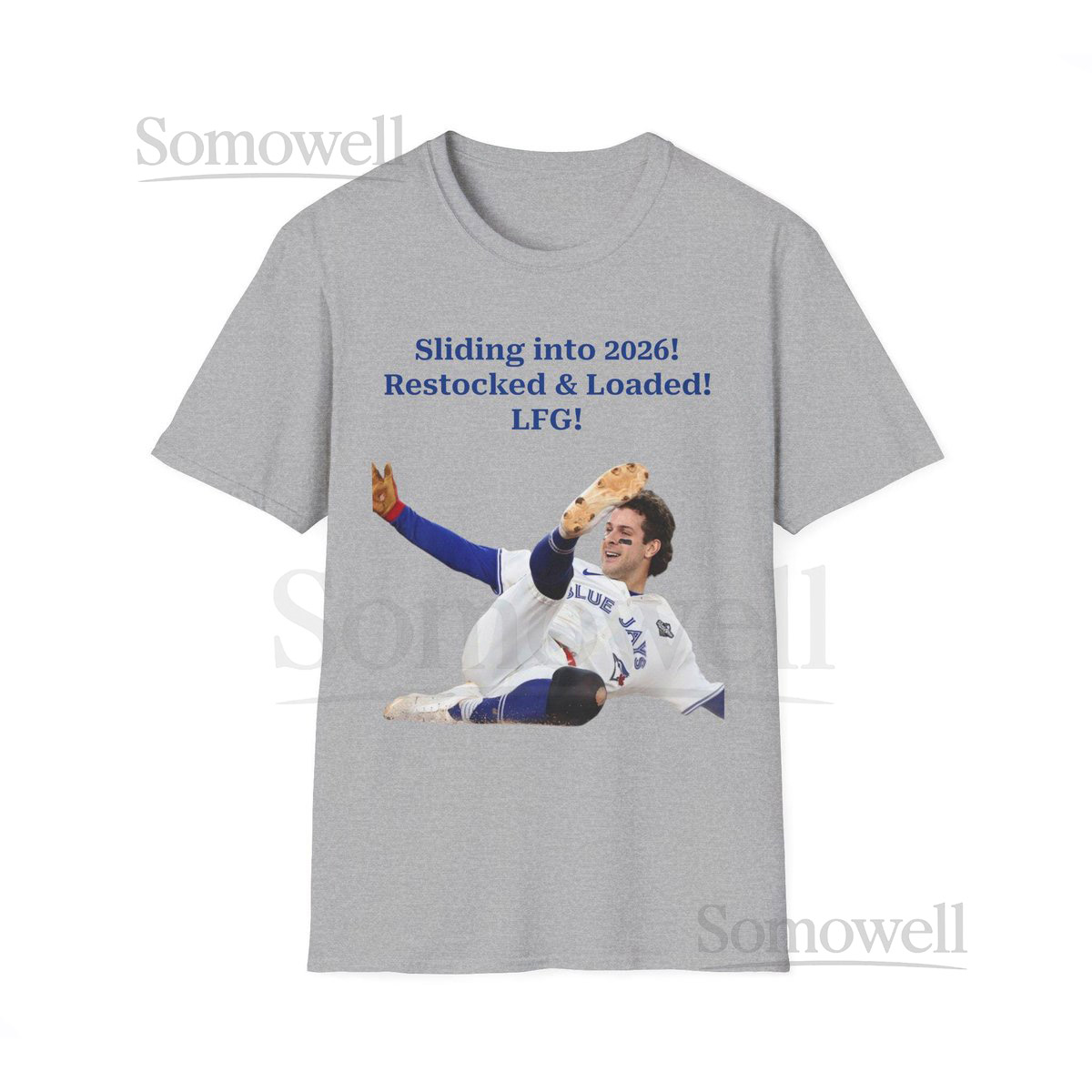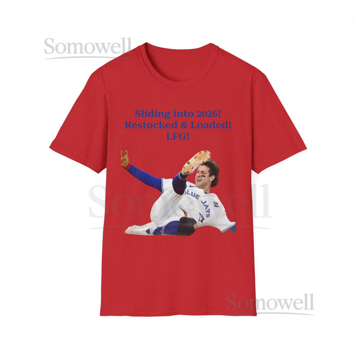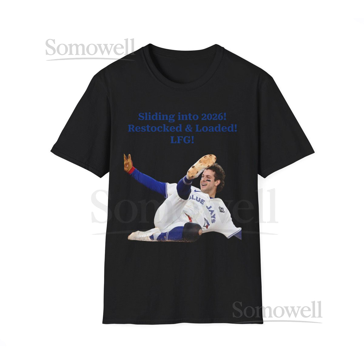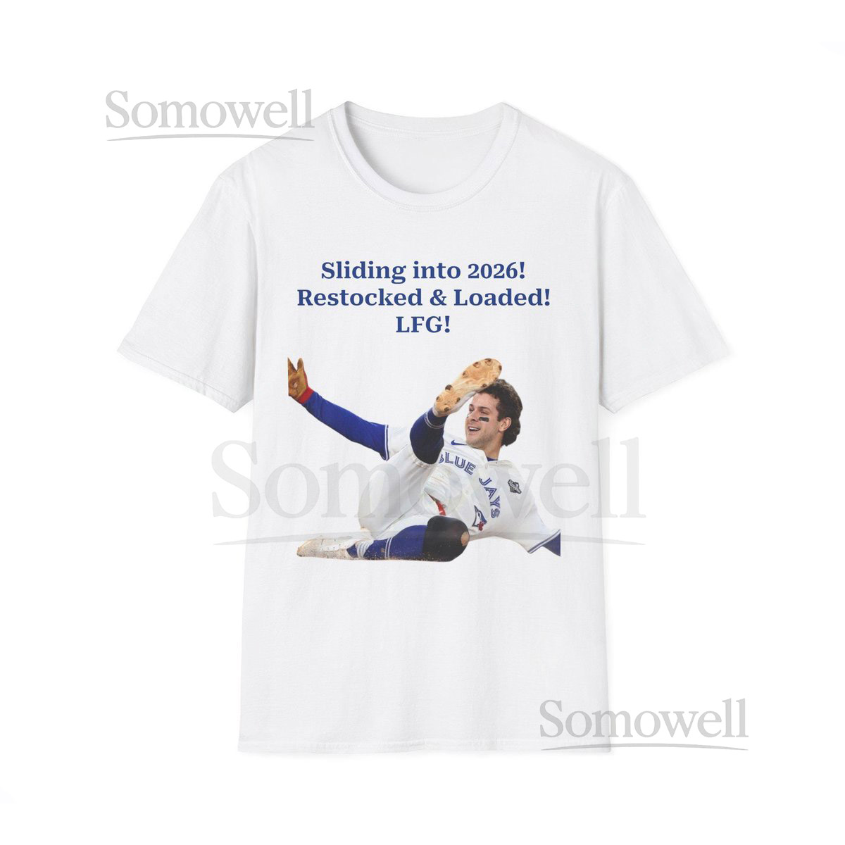 Ernie Clement Sliding into 2026 Restocked Loaded LFG T-Shirt Baseball Slide Graphic_431
