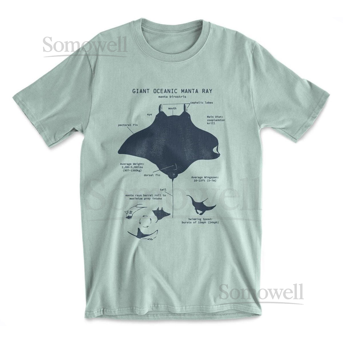 Manta Ray Anatomy T-shirt – Hand Screen Printed Soft Cotton Shirt – Giant Manta Ray Biology Drawing_600