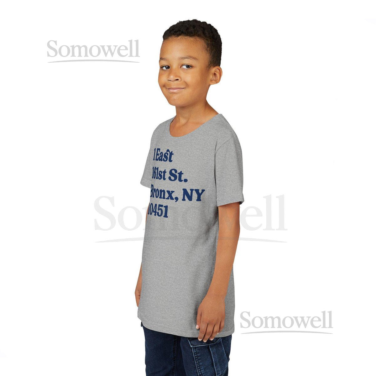 New York Baseball Stadium Bronx Kids T-Shirt Youth Fan Tee Stadium Address Shirt for Boys Girls Teens Unisex Bronx NY Baseball Gift_658