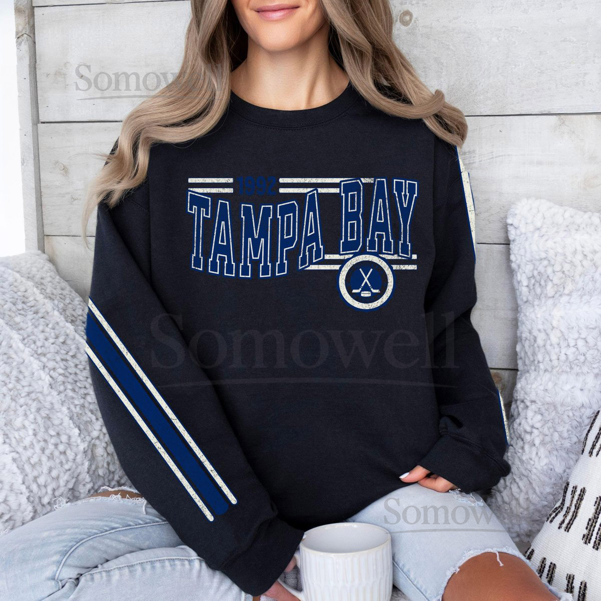 Tampa Bay Hockey Vintage Crewneck Sweatshirt Retro Lightning Hockey Team Sweatshirt Unisex Sleeve Print Distressed Hockey Shirt Fan Shirt_187