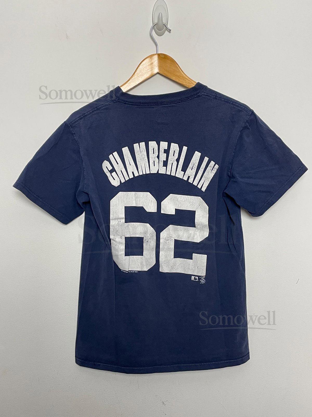 Vintage MLB Baseball New York Yankees Joba Chamberlain Spell Out Graphic Jersey Tee Shirt size adult Small_494