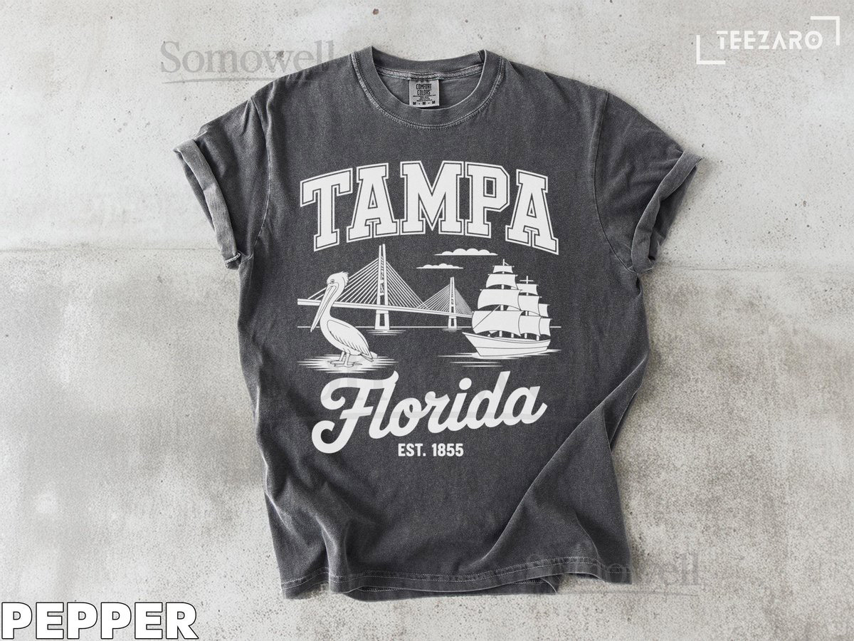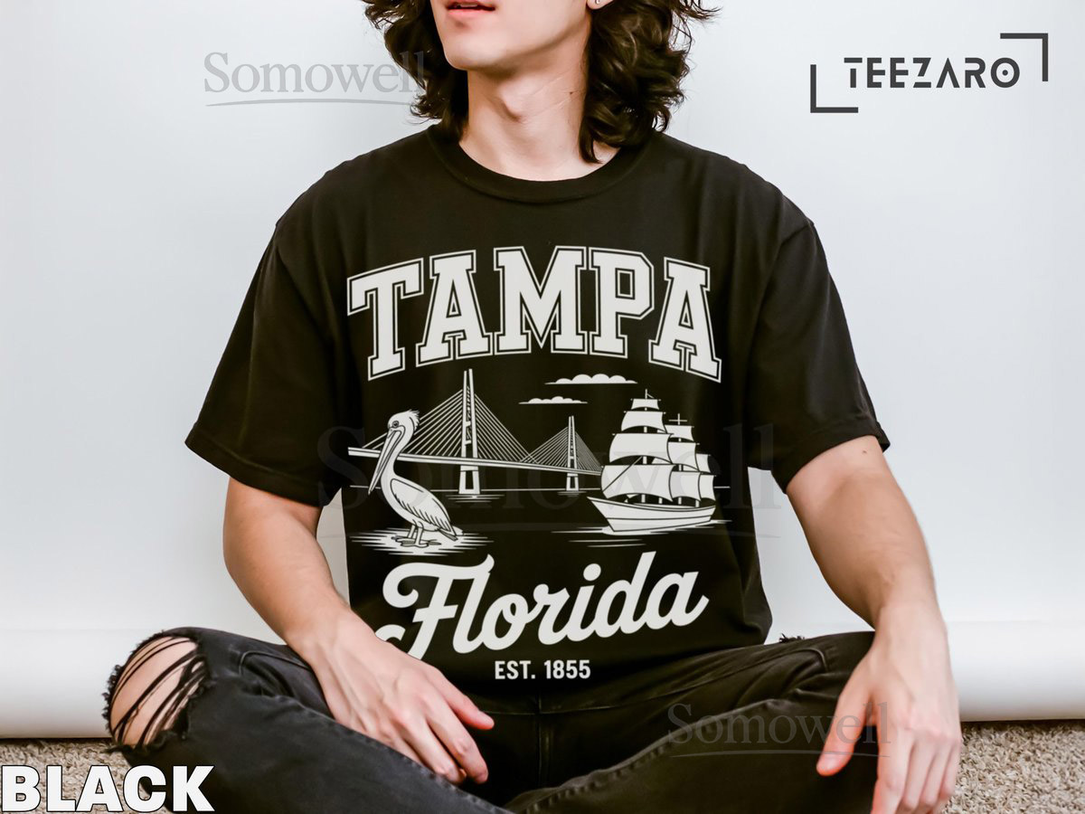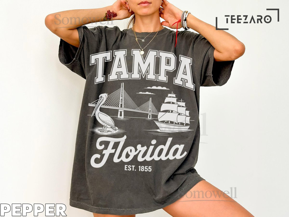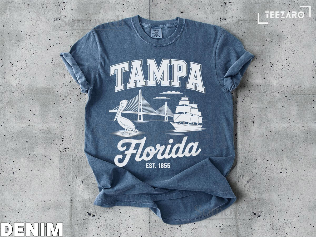 Vintage Tampa Florida T-Shirt Sunshine Skyway Pelican Sailing Ship_540