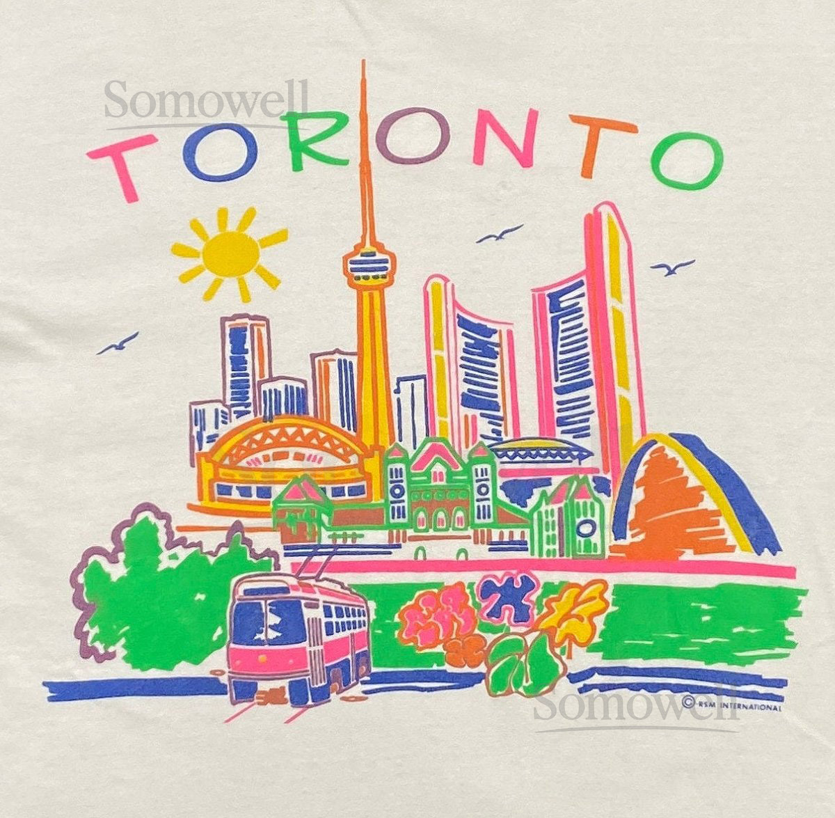 Vintage Toronto Canada T Shirt Tee Cityscape Made in Canada Size Large L Raptors Blue Jays 1980s 80s Six Drake_549