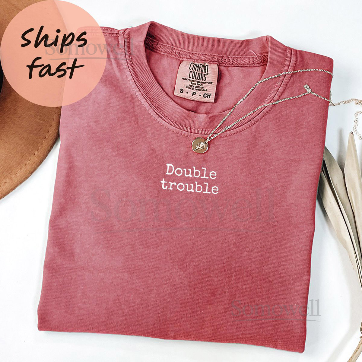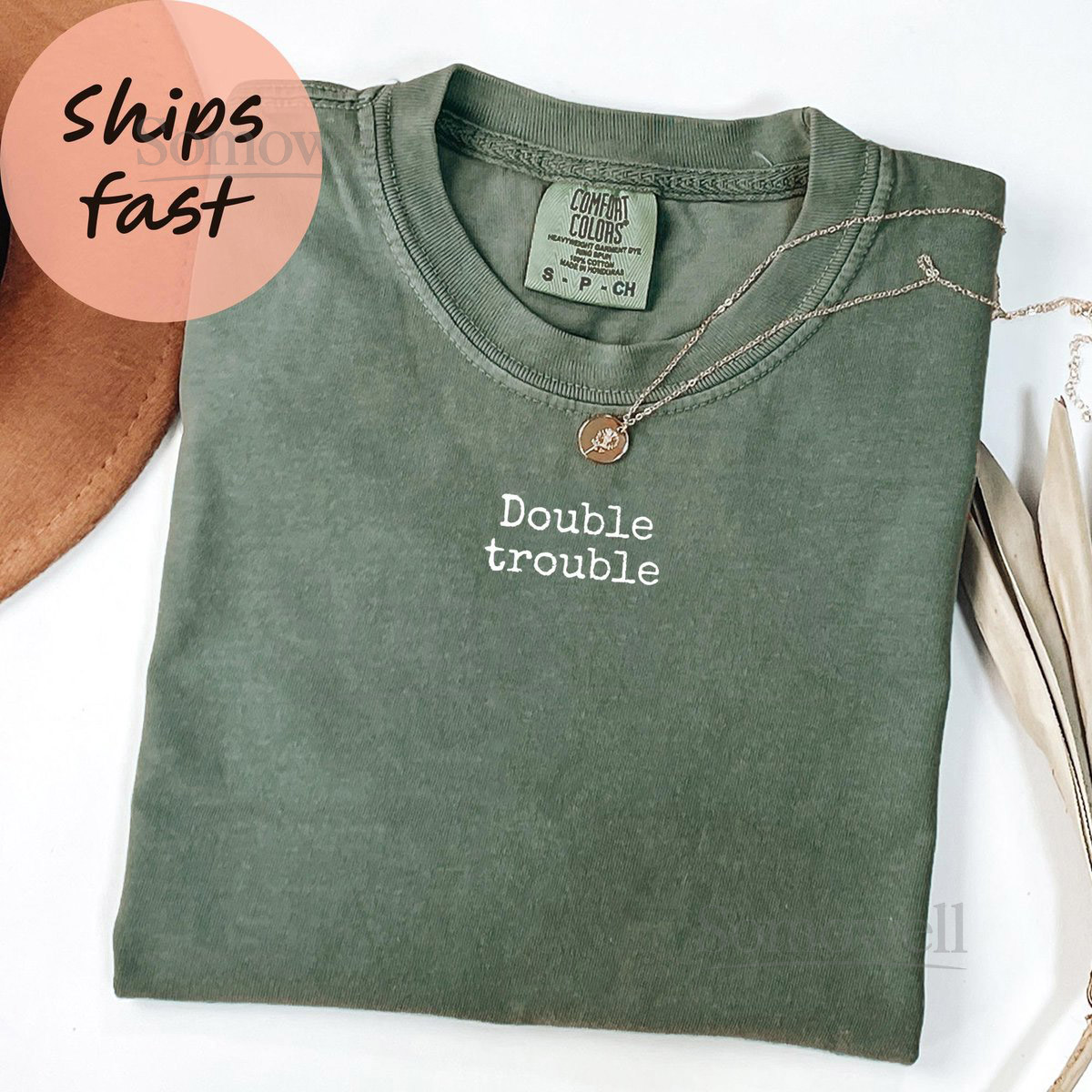 Comfort Colors Double Trouble Shirt Sarcastic Shirt Funny Sibling Shirt Matching Shirt Gift for Twins Gift for Sister Gift for Friend_79