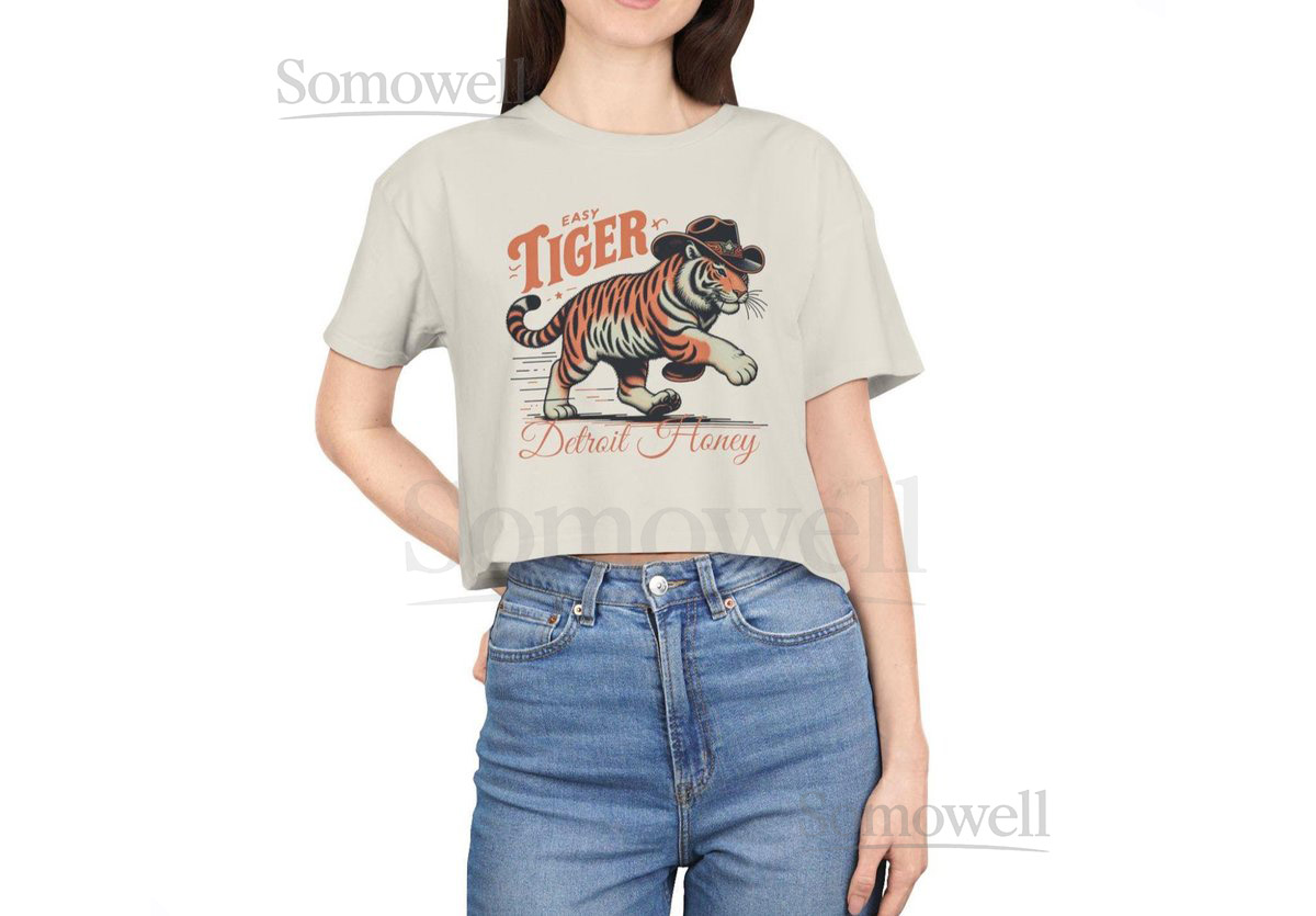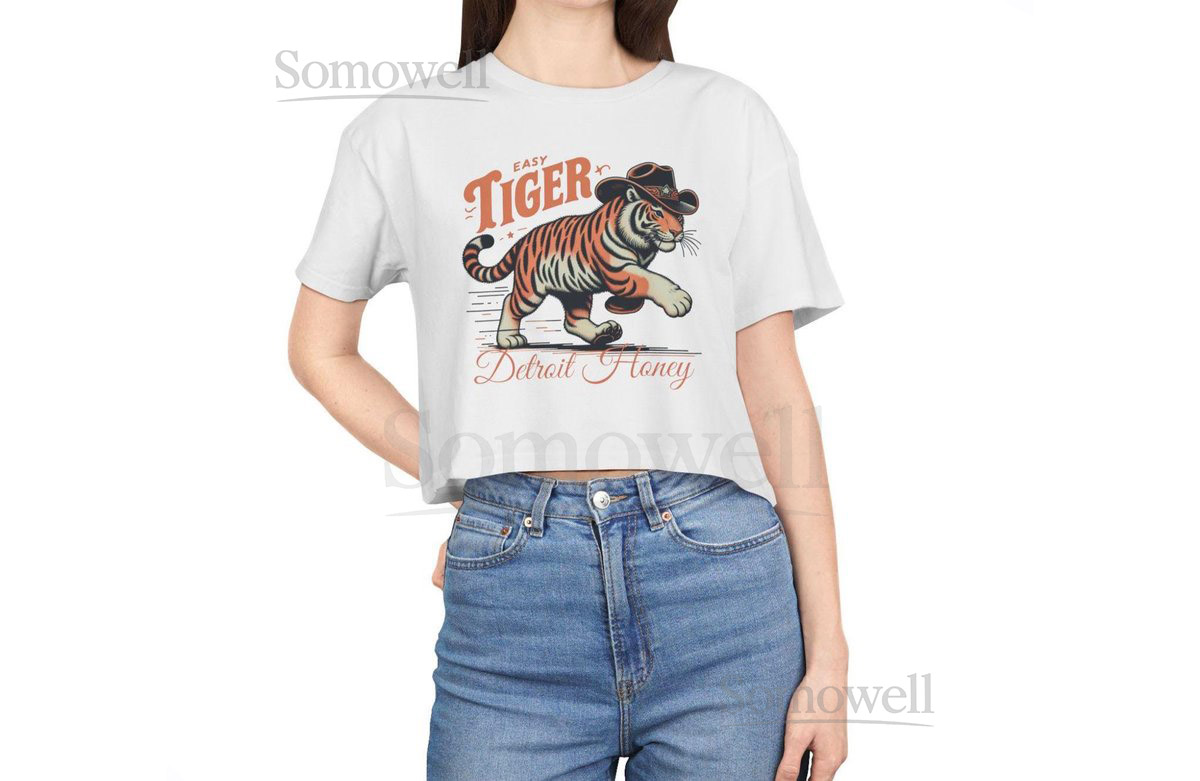 Detroit Baseball Crop Tee Motor City American Honey top Gameday in the D shirt Western Tailgate tee Graphic Blue Orange Tiger Stripe_117