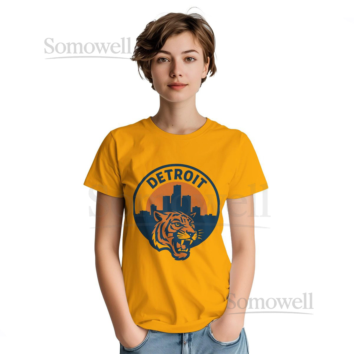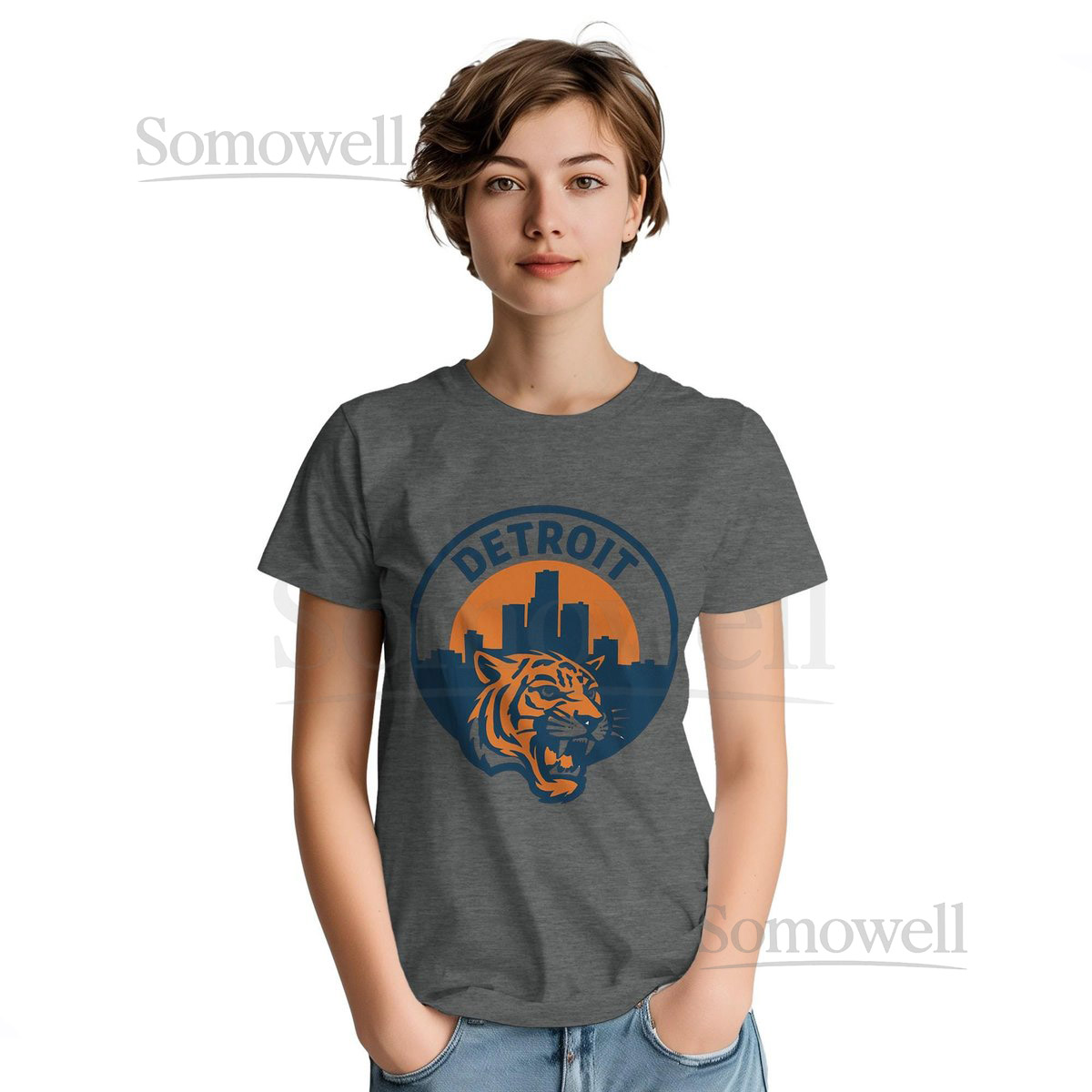 Detroit Tiger Inspired Skyline T-Shirt Vintage-Style Emblem Motor City Baseball Tee_229