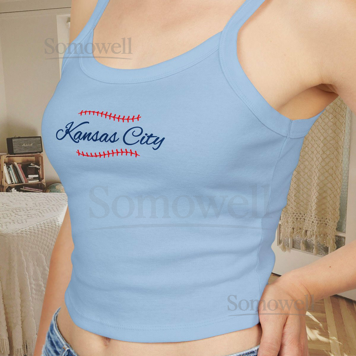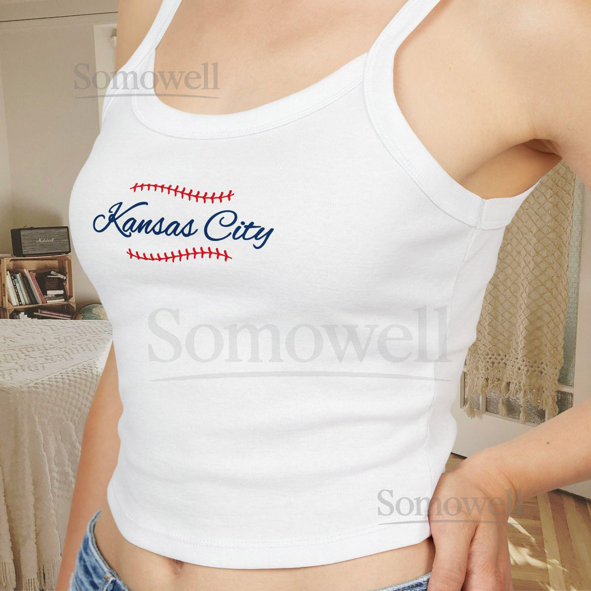 Kansas City Baseball Cropped Tank Top Womens Spaghetti Strap KC Shirt Royals Player Top Bobby Witt Jr Salvador Perez Cole Ragans Game Outfit_338