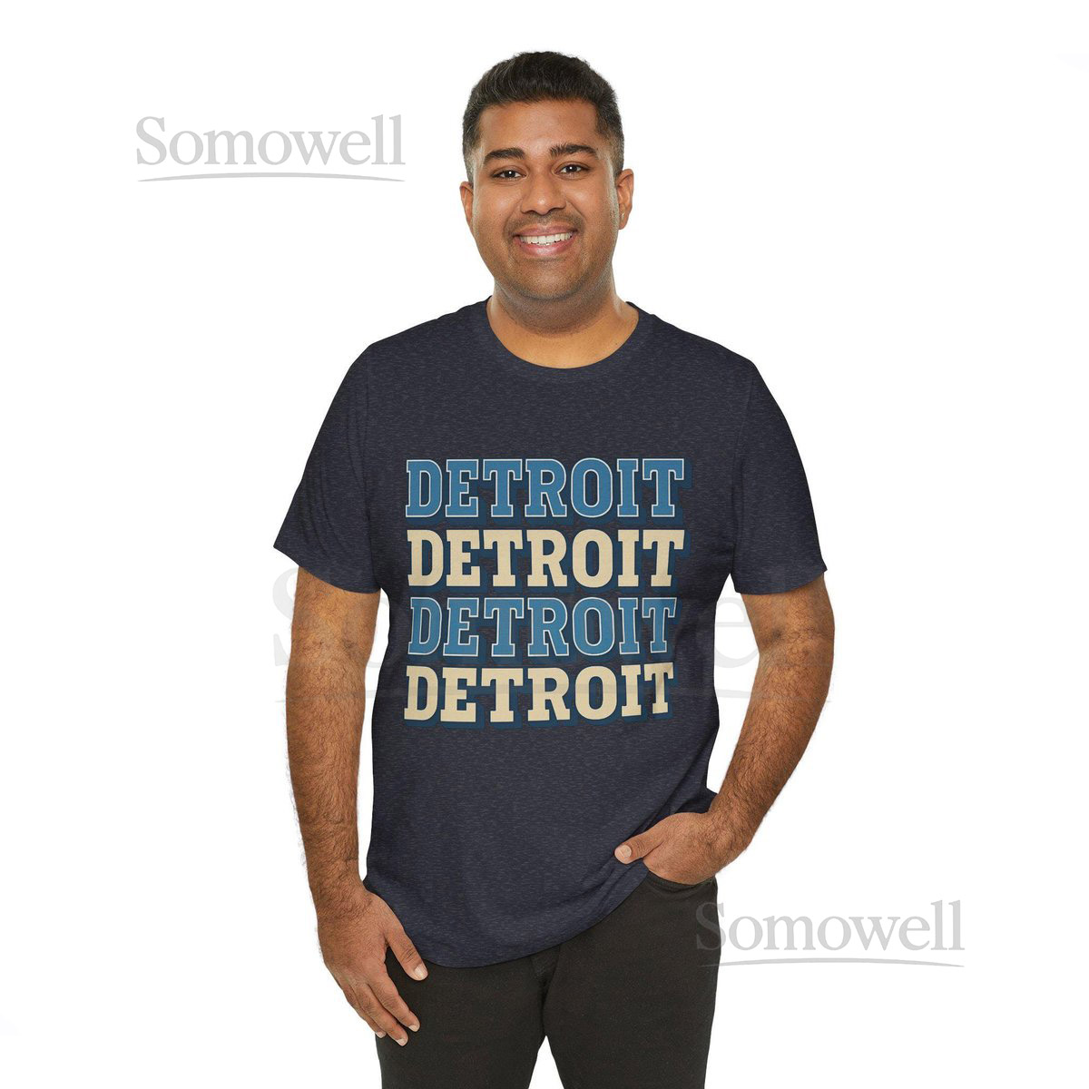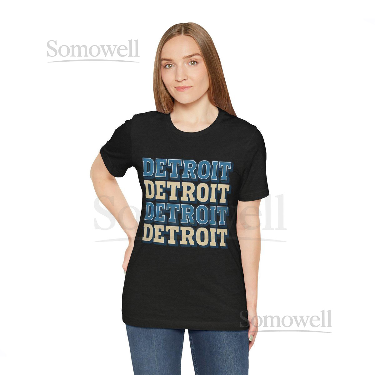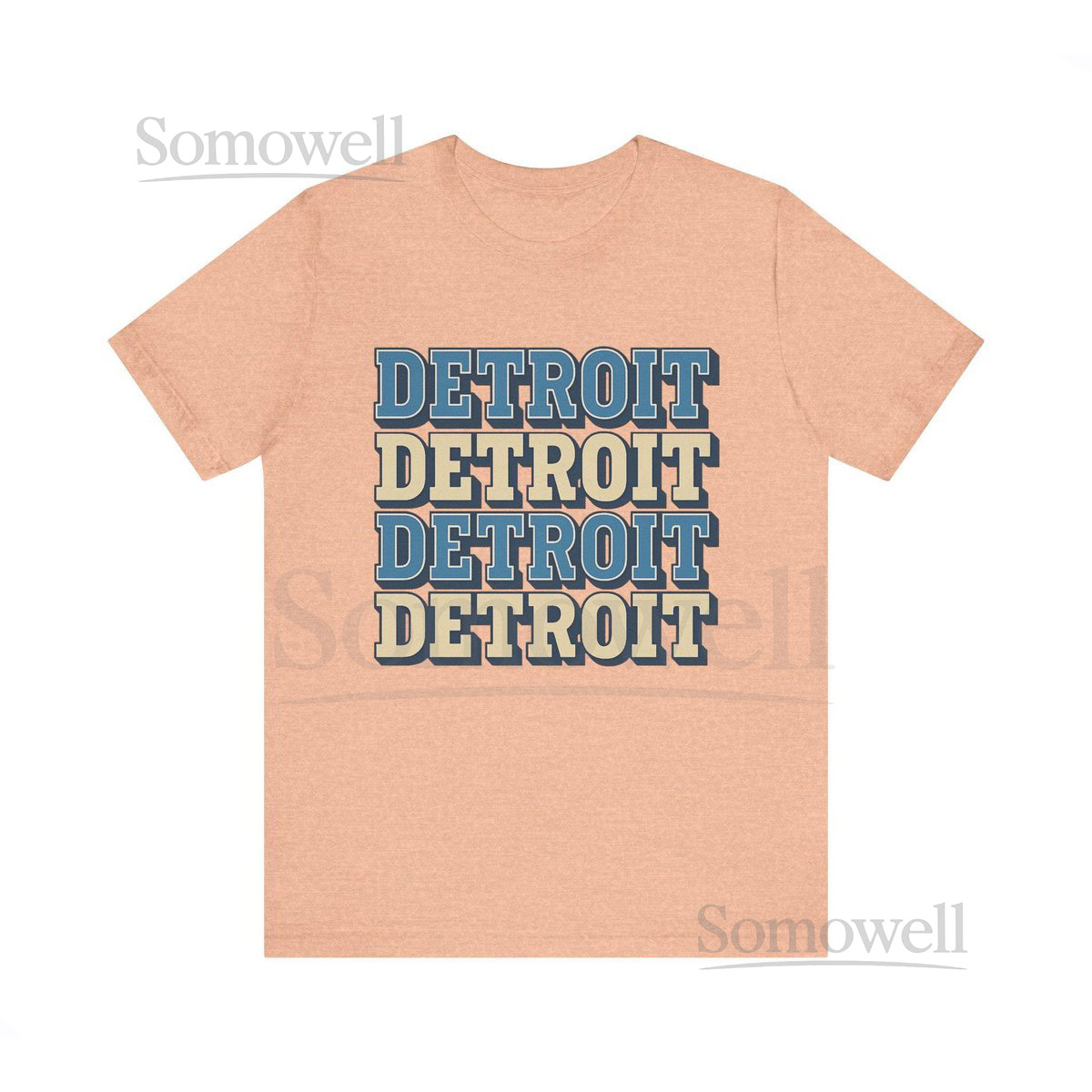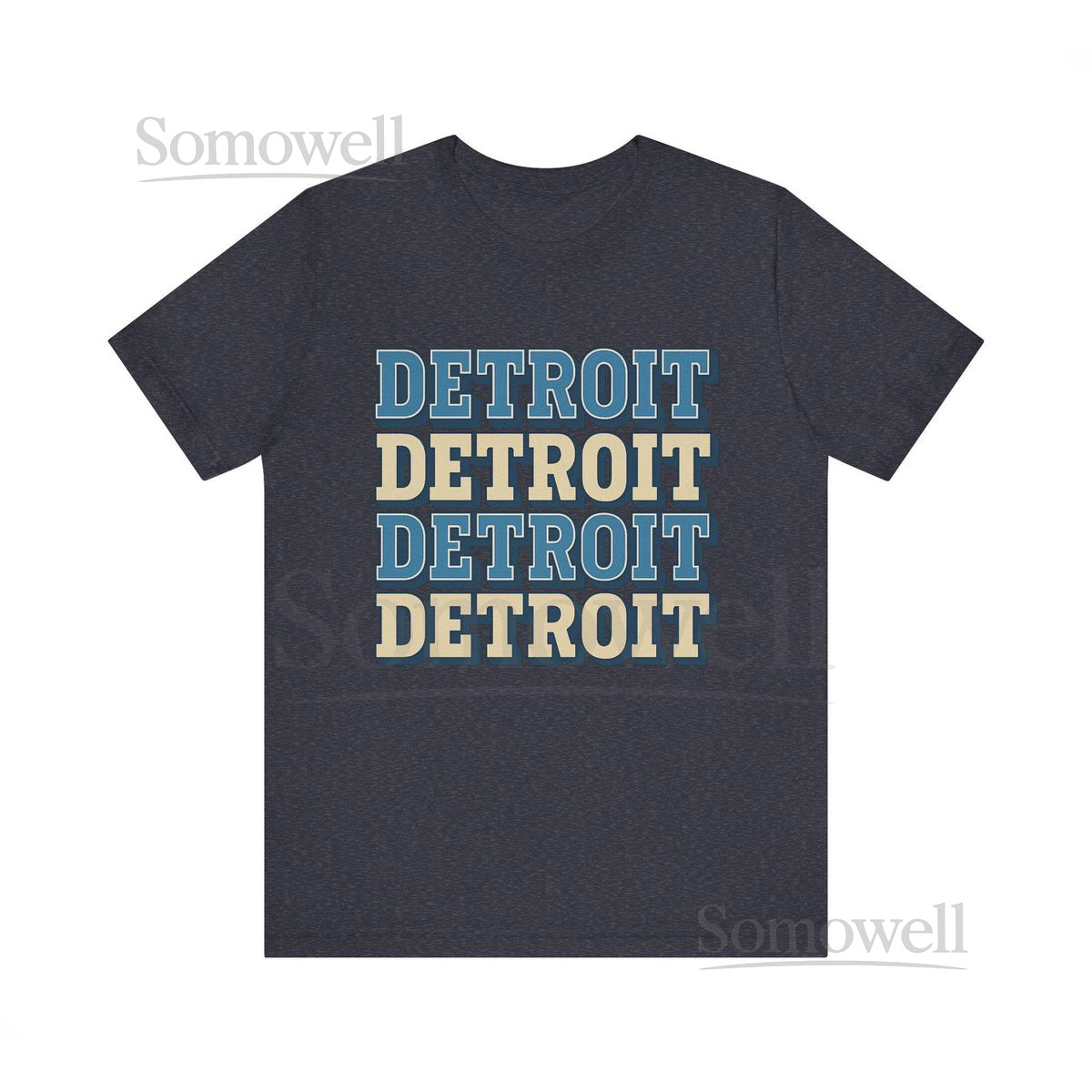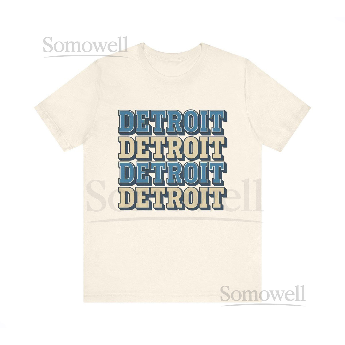 Retro Detroit T-Shirt Vintage Block Font Tee Motor City Graphic Shirt Trendy Michigan Streetwear_720