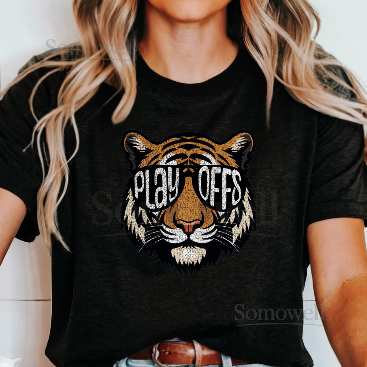 Tigers Playoffs Unisex Tee Tigers Graphic Tee Baseball Fan Shirt Tiger with Sunglasses Shirt Game Day Apparel Gift for Tiger Fan_805