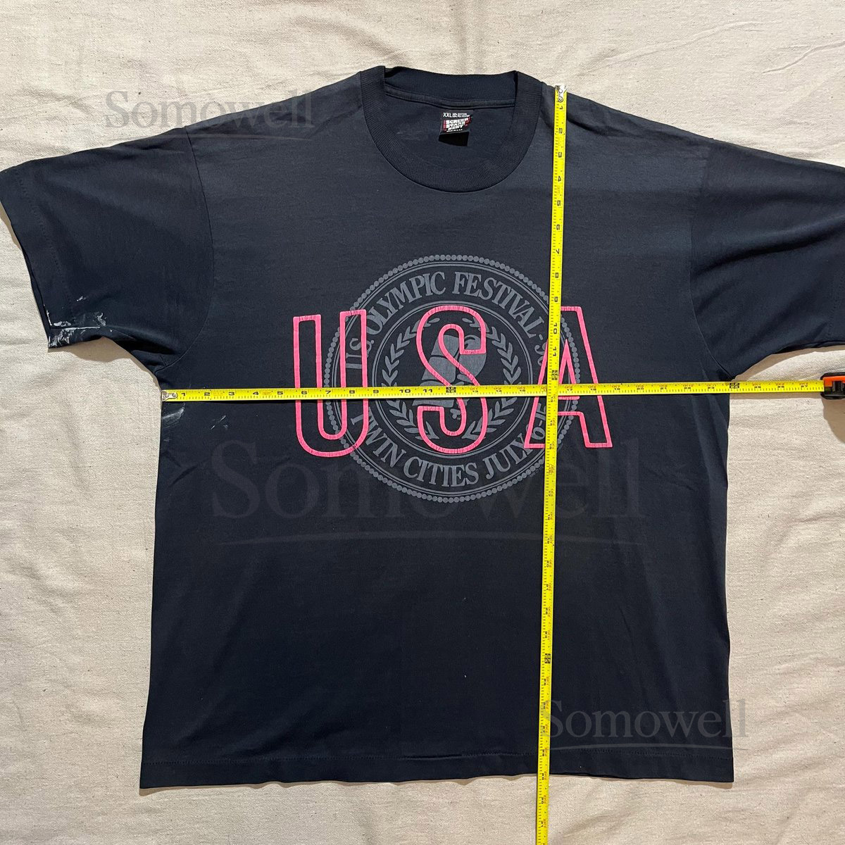 Vintage 90s US Olympics Festival Minnesota Twin Cities Tourist Souvenir Paint Stained Graphic T-Shirt Black XXL 2XL_886