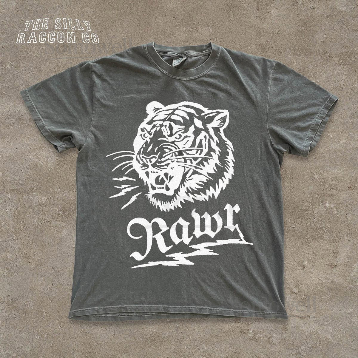 Vintage Roaring Tiger Graphic T-Shirt Retro Wild Animal Tee Old School Tattoo Style 90s Grunge Aesthetic Shirt Comfort Colors Unisex_935
