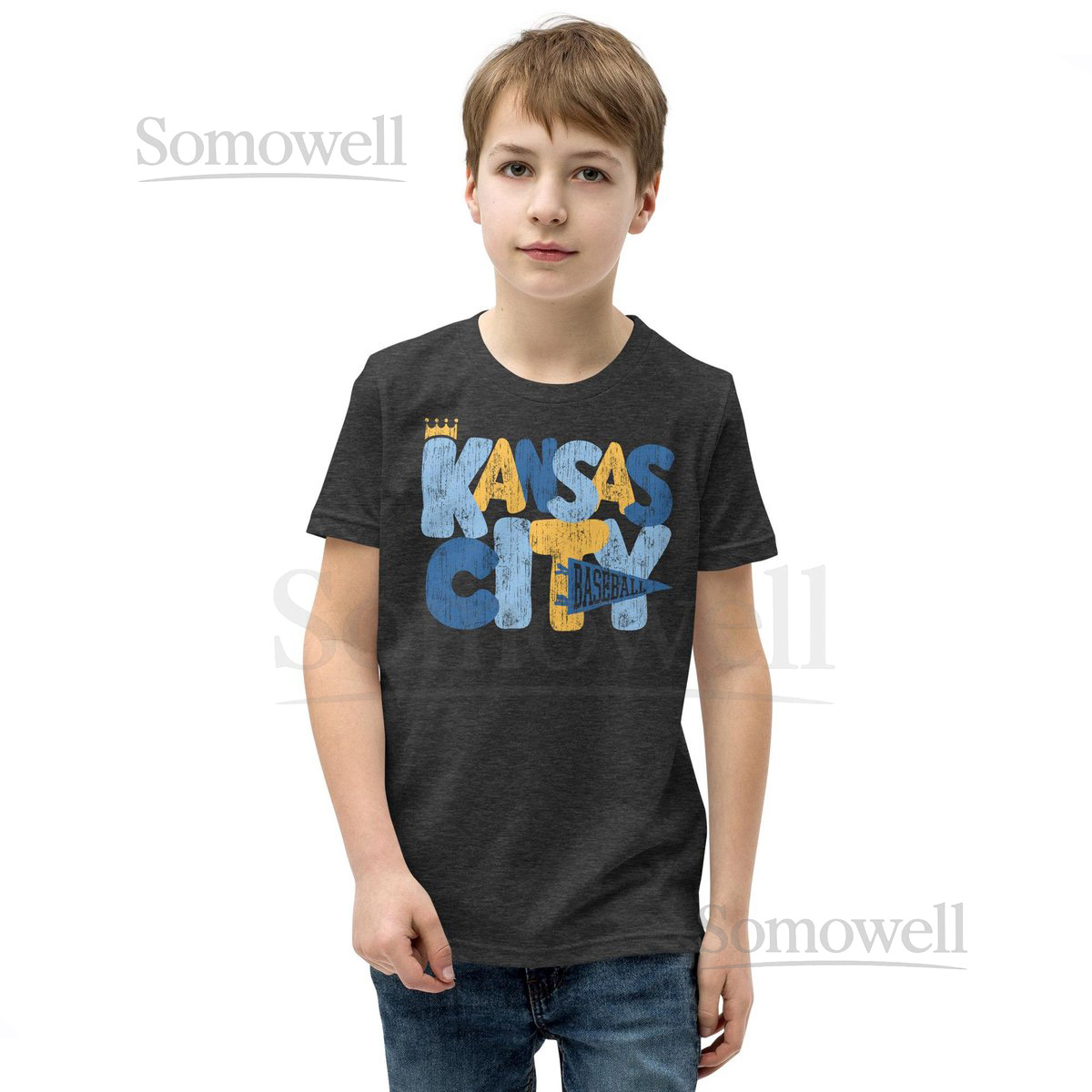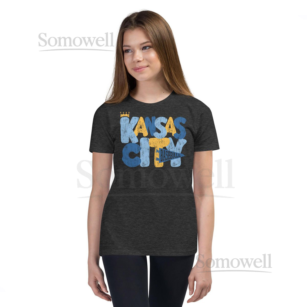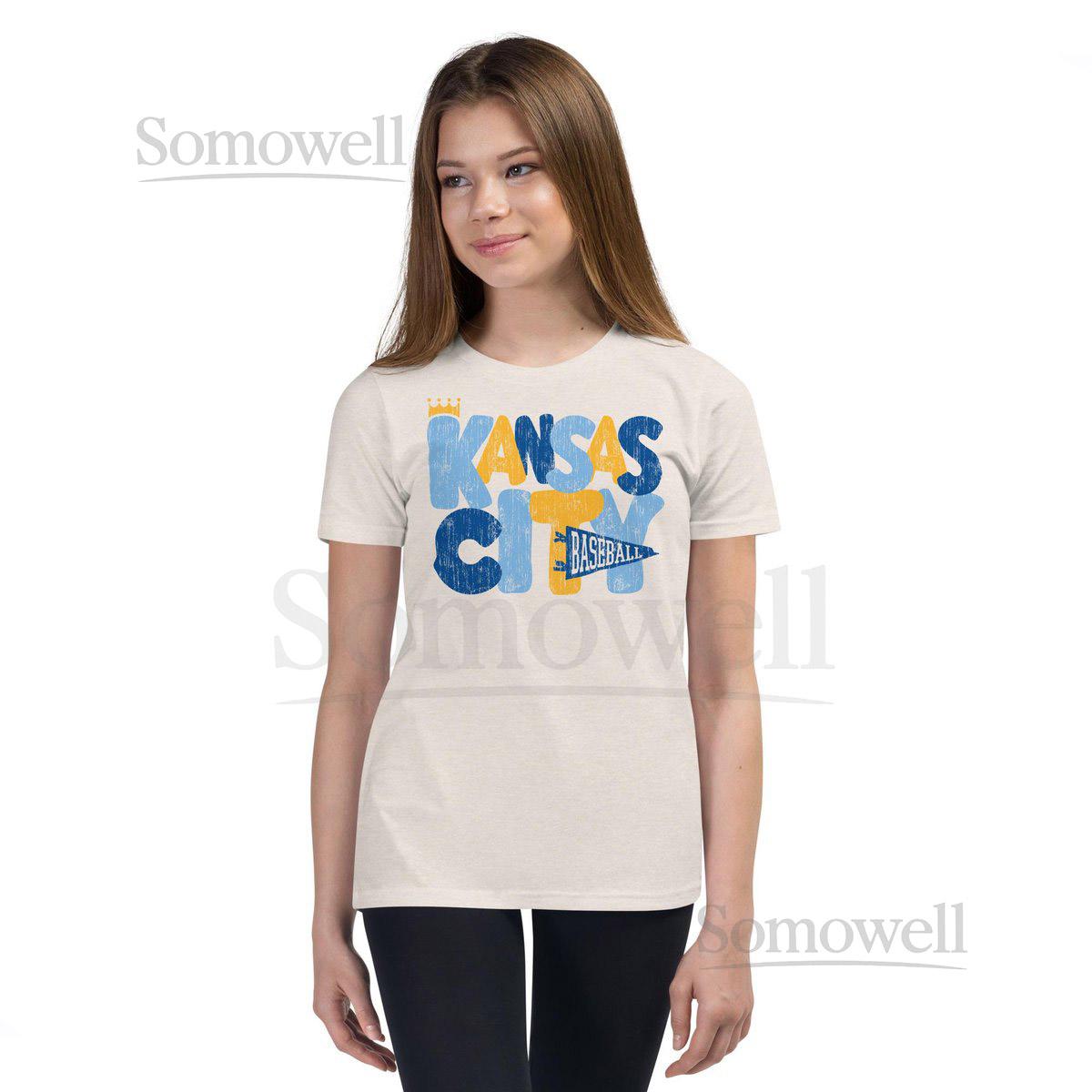 Youth Royals Short Sleeve T-Shirt Bella Canvas Brand Tee Kansas City Baseball Kids KC gear Game Day Outfit Boys Girls Crown Town_979