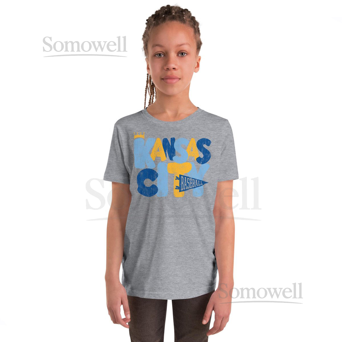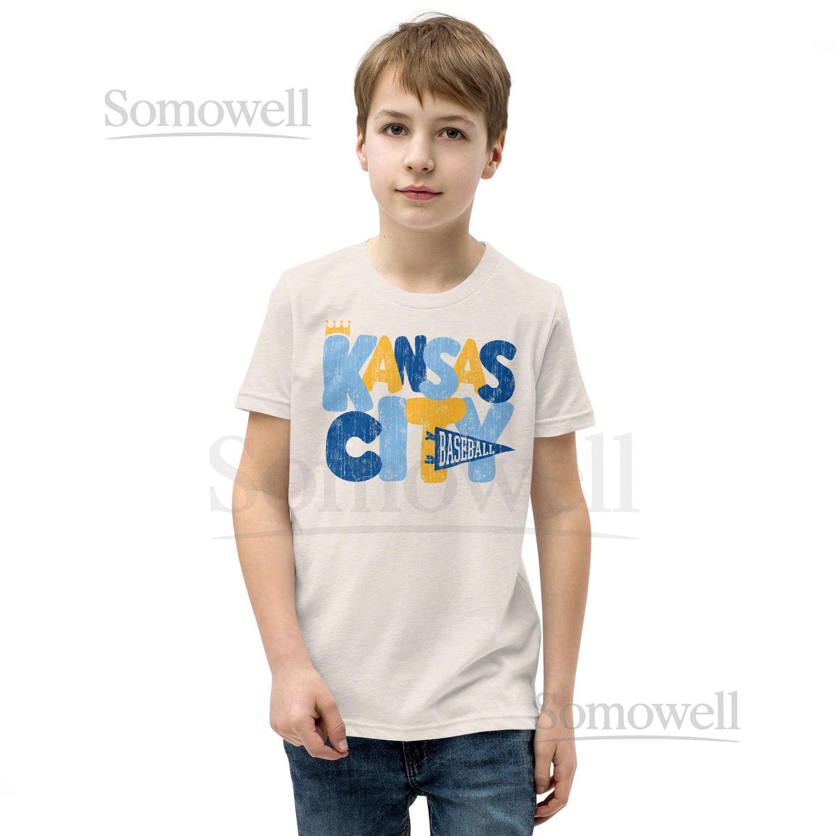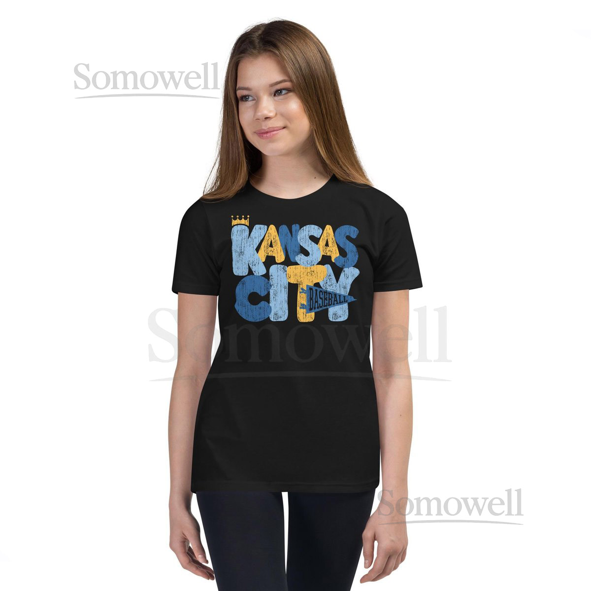 Youth Royals Short Sleeve T-Shirt Bella Canvas Brand Tee Kansas City Baseball Kids KC gear Game Day Outfit Boys Girls Crown Town_979