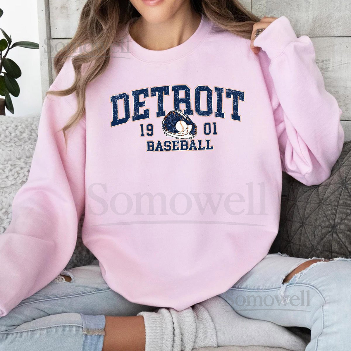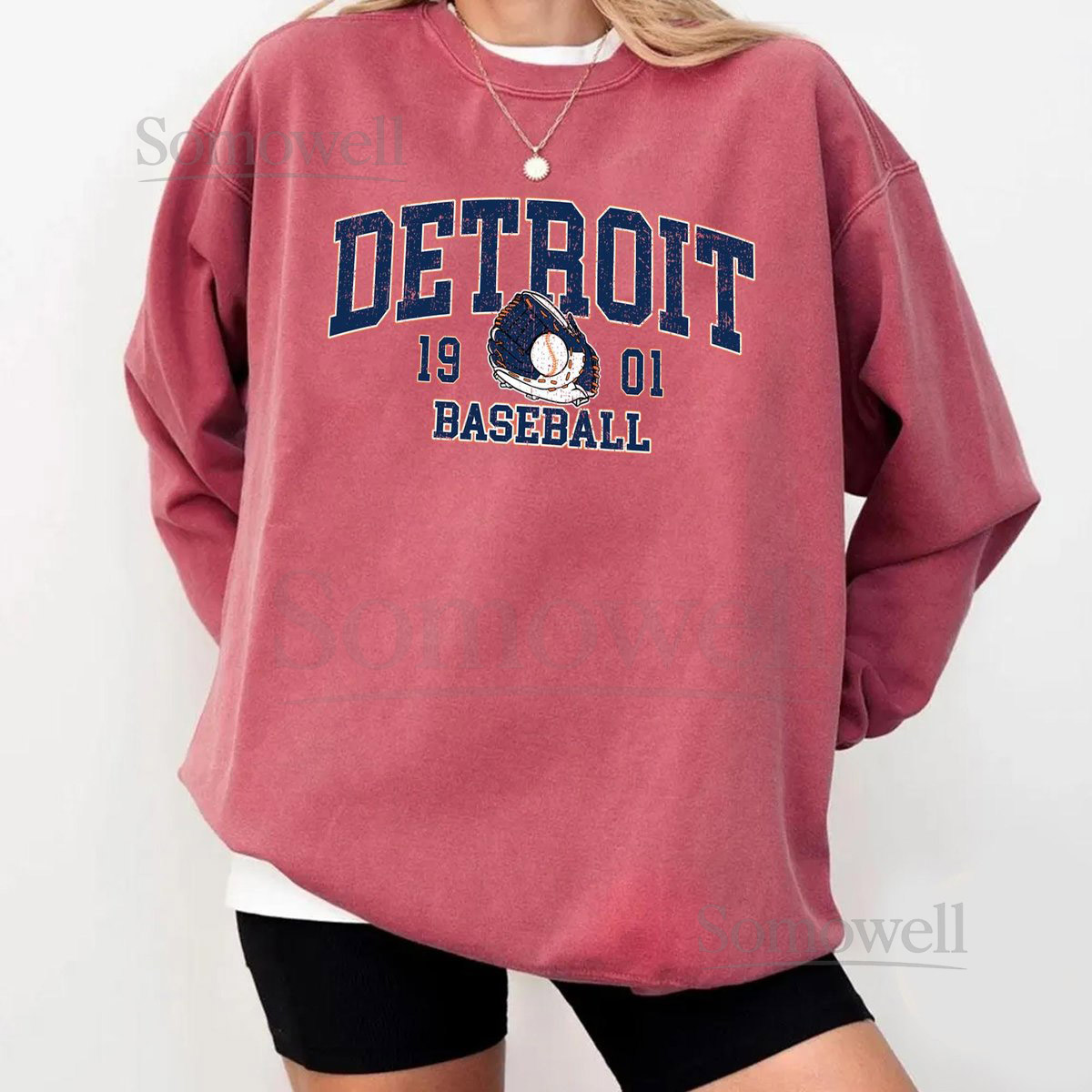 Detroit Baseball Gloves and Ball Vintage T-Shirt Retro Baseball Sweatshirt Classic Game Day Hoodie Gift_121