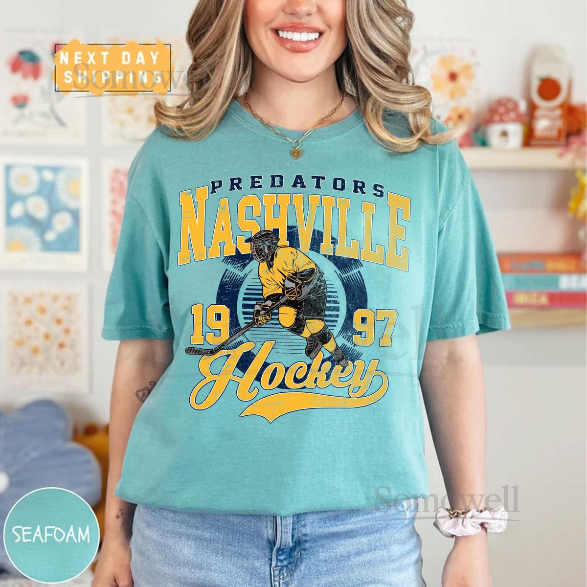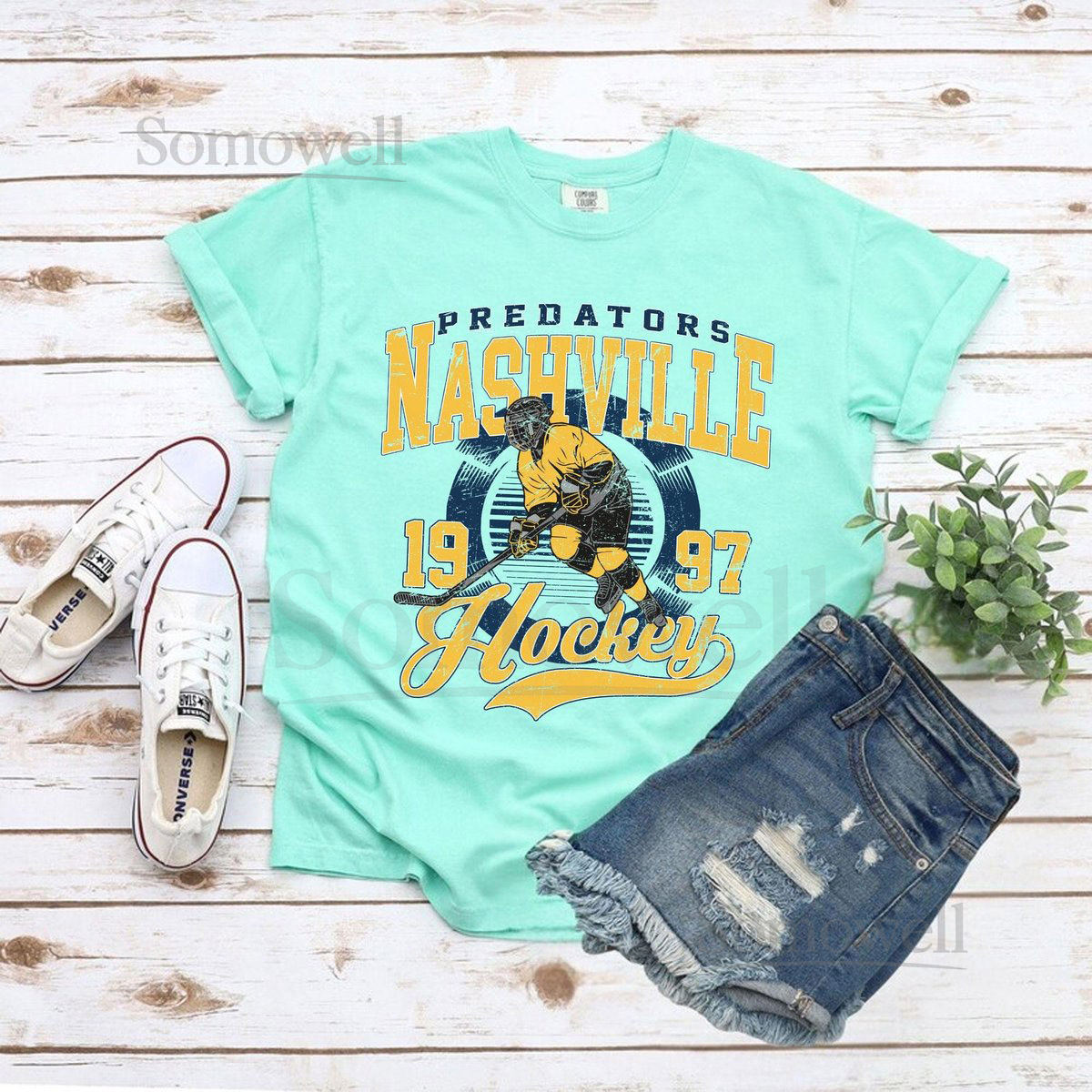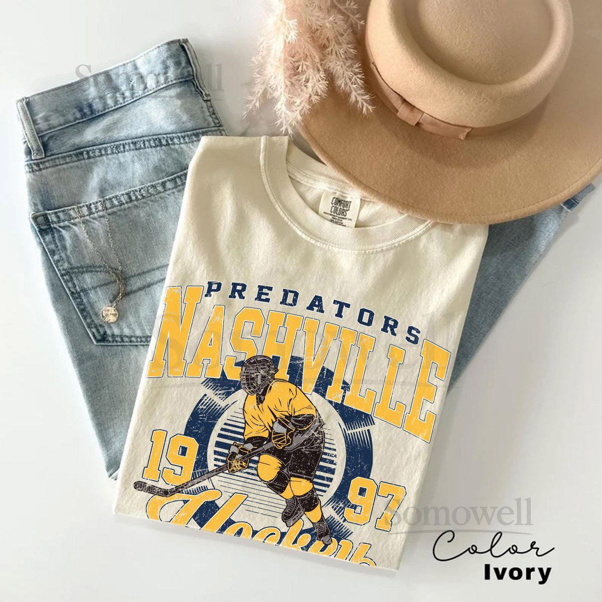 Comfort Colors Vintage Nashville Predator T-Shirt Predator T-Shirt Hockey Fan T-Shirt Retro Nashville Ice Hockey T-Shirt Nashville 1997_112