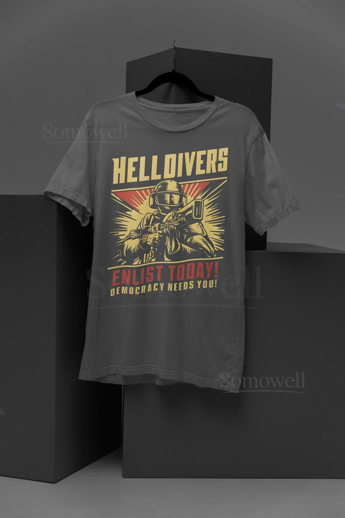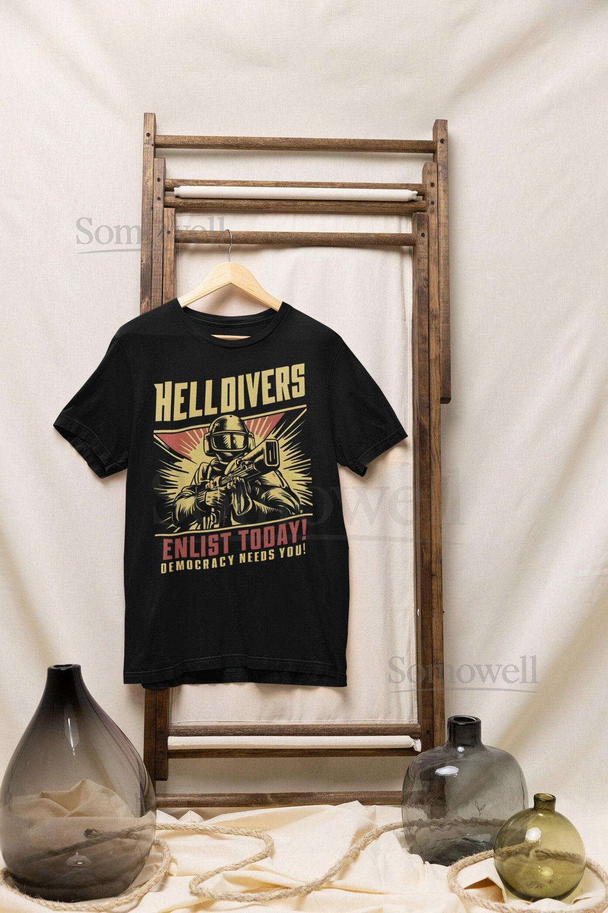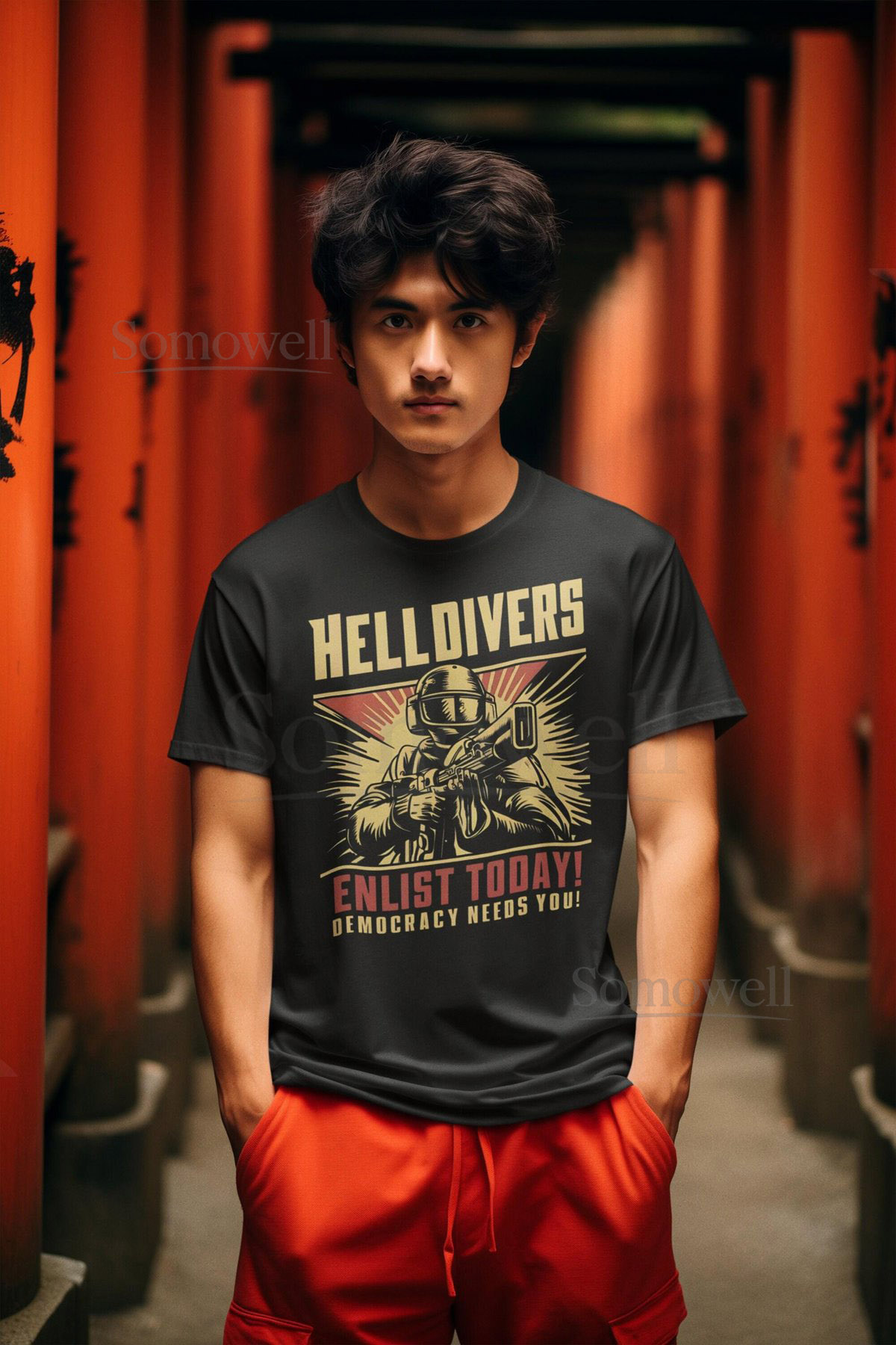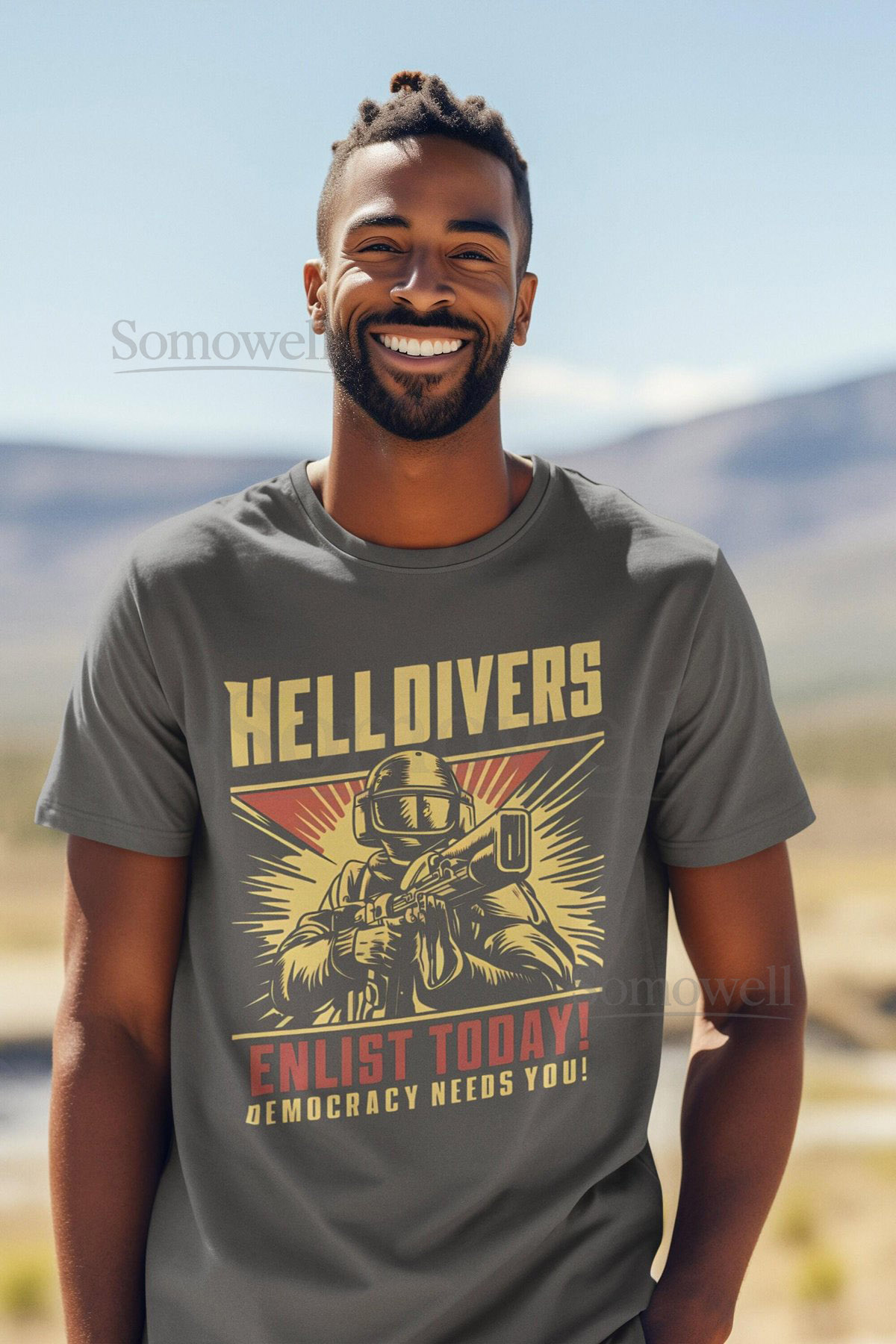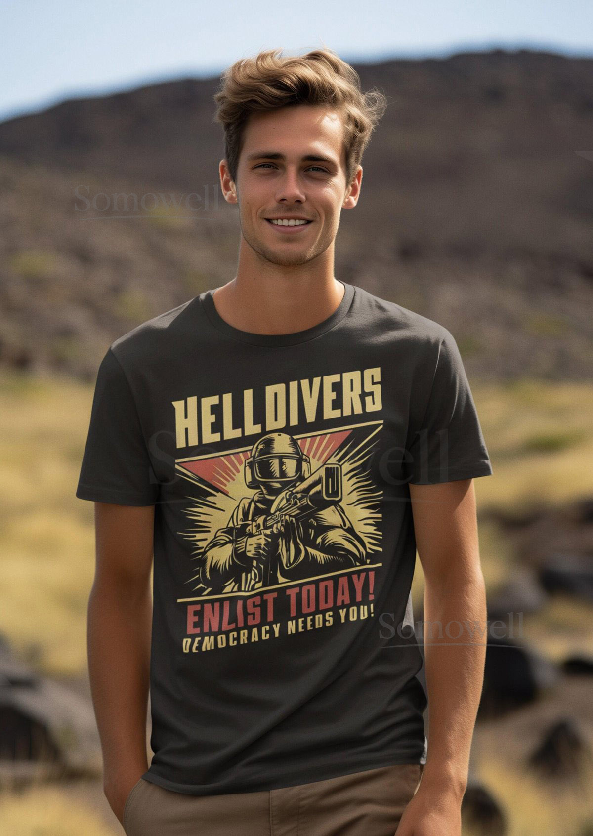 Helldivers 2 Enlistment Tee – Join the Fight for Democracy Exclusive Sci-Fi Soldier Shirt PS5 PC Gamer Gear_199