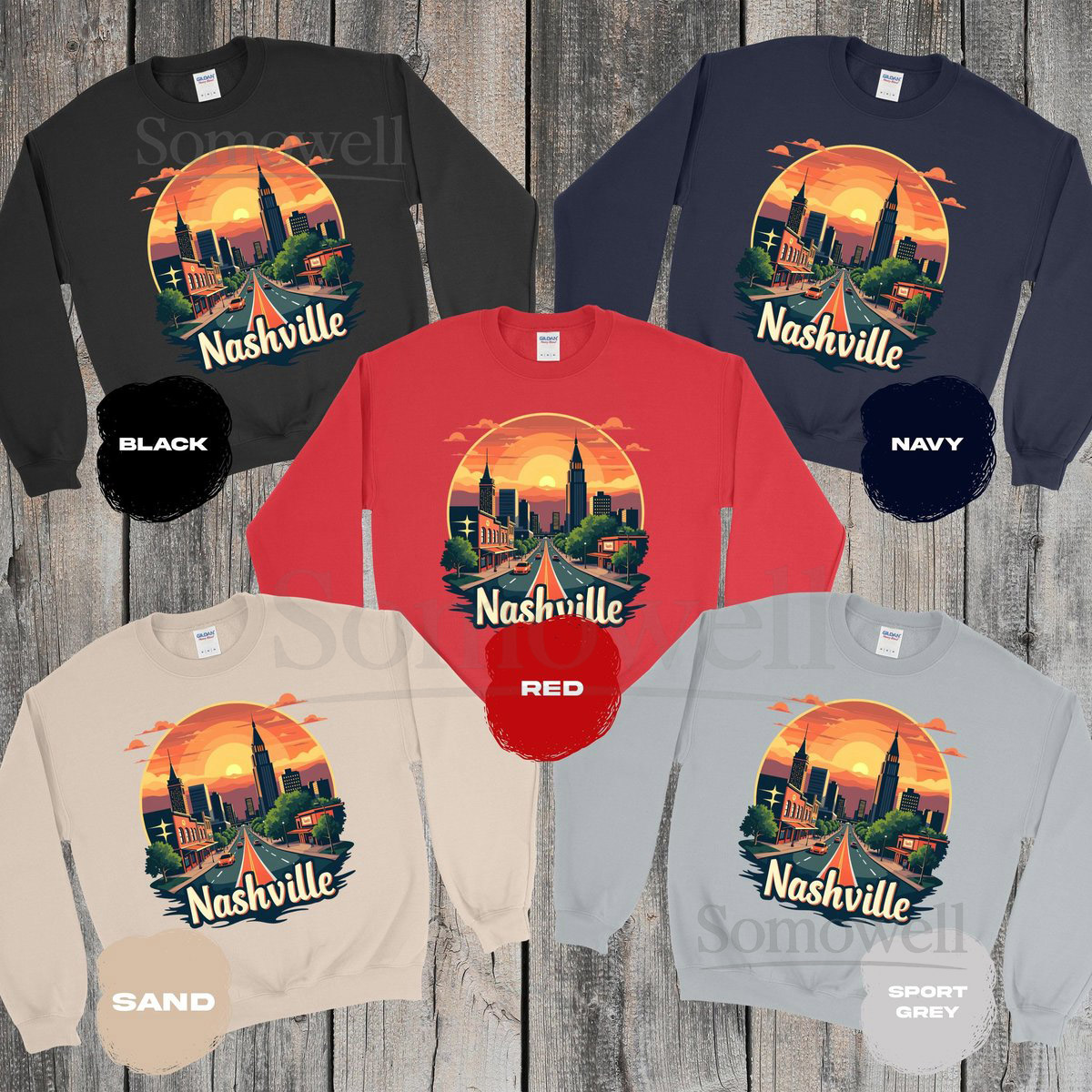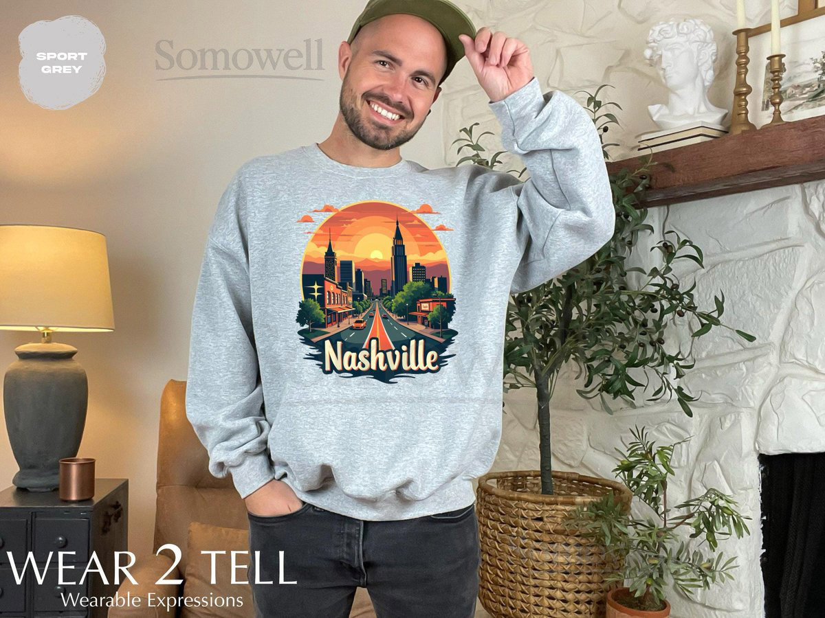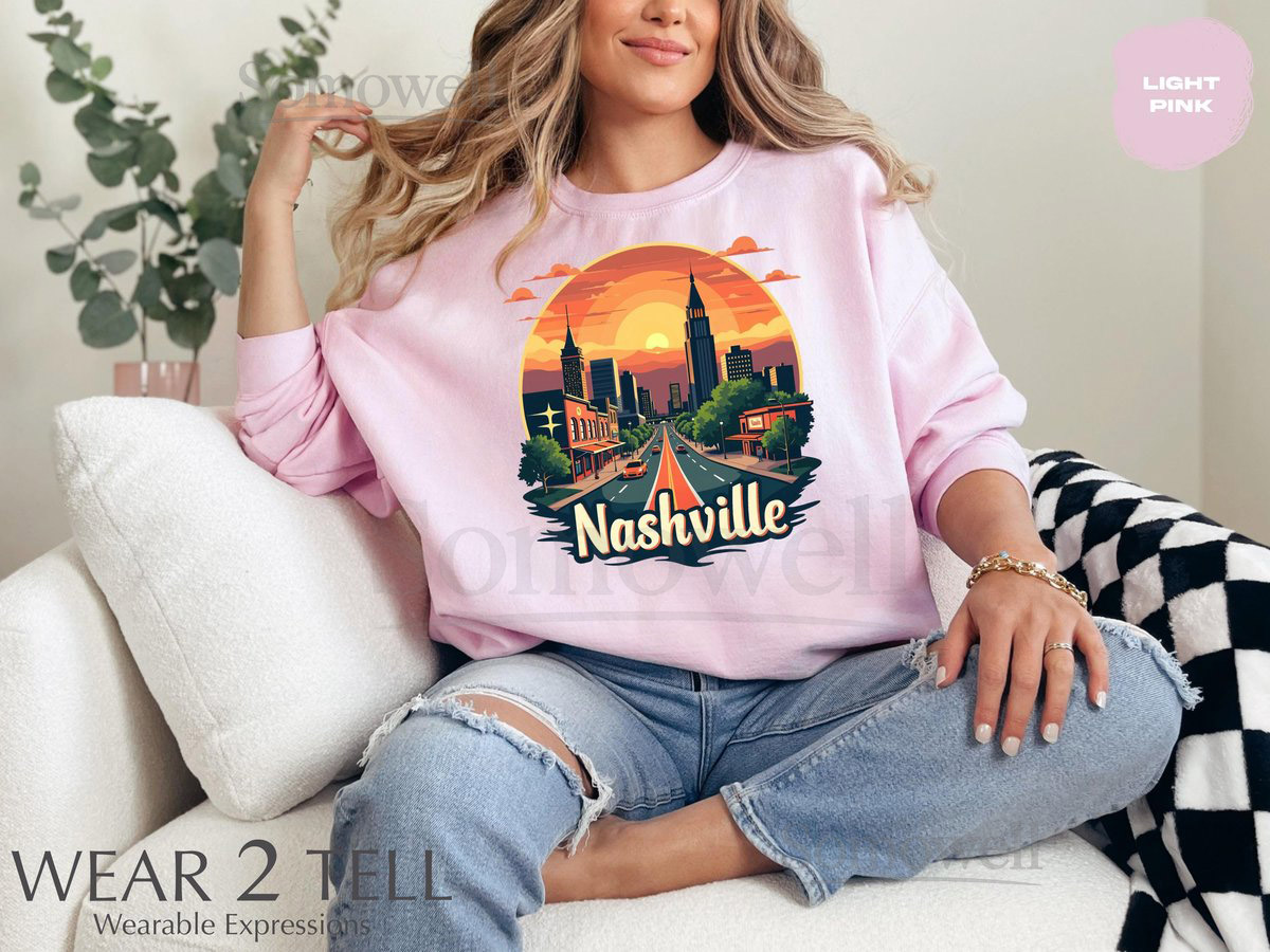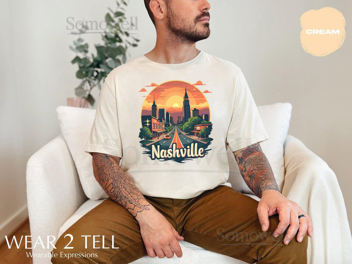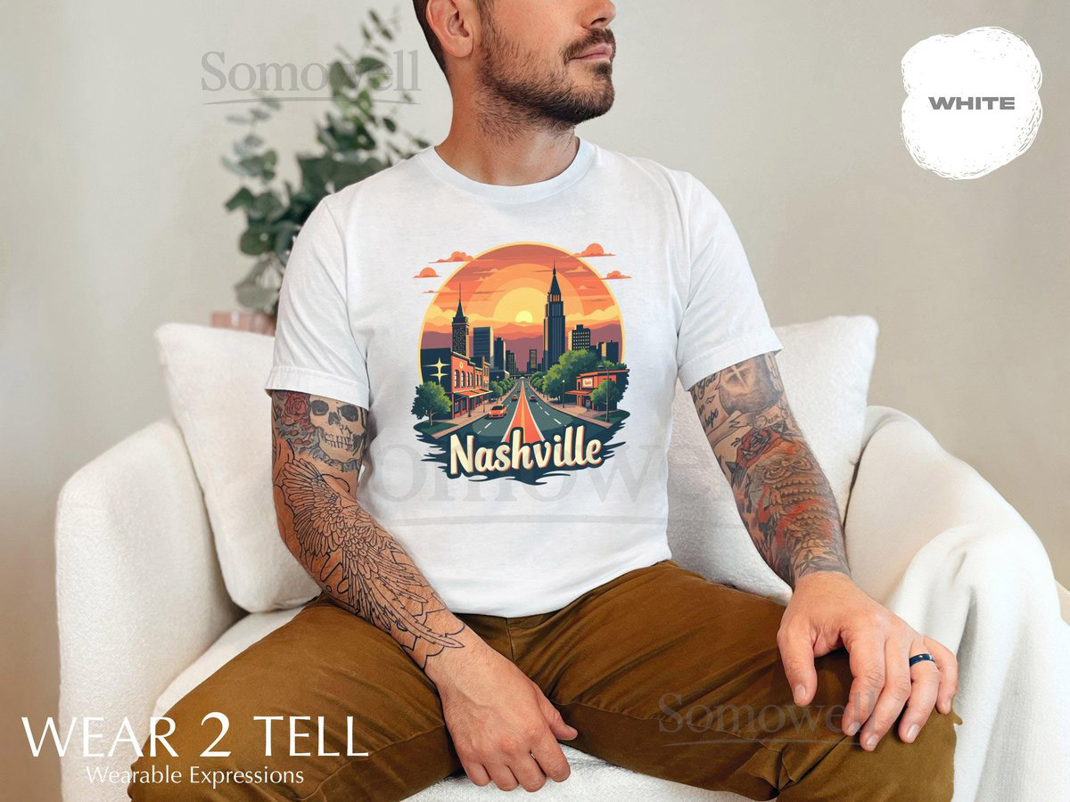 Nashville City Sunset TShirt Retro Nashville Skyline Tee Nashville Tennessee Souvenir Shirt Vibrant Sunset Graphic Tee_317