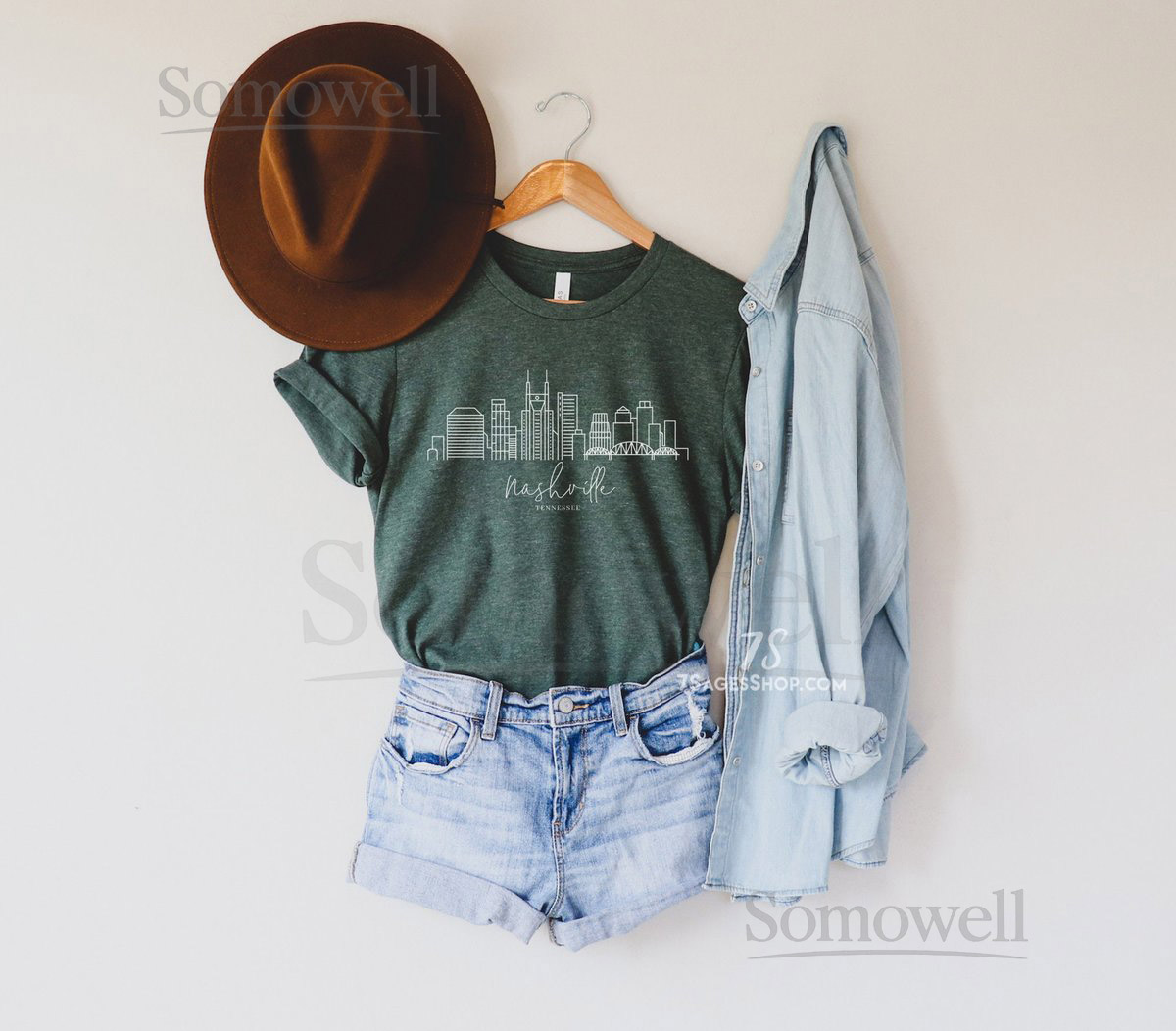 Nashville Skyline Shirt Nashville Tshirt Bachelorette Tennessee Shirts Cityscape Skyline Art Gift Soft Crewneck Tee_349