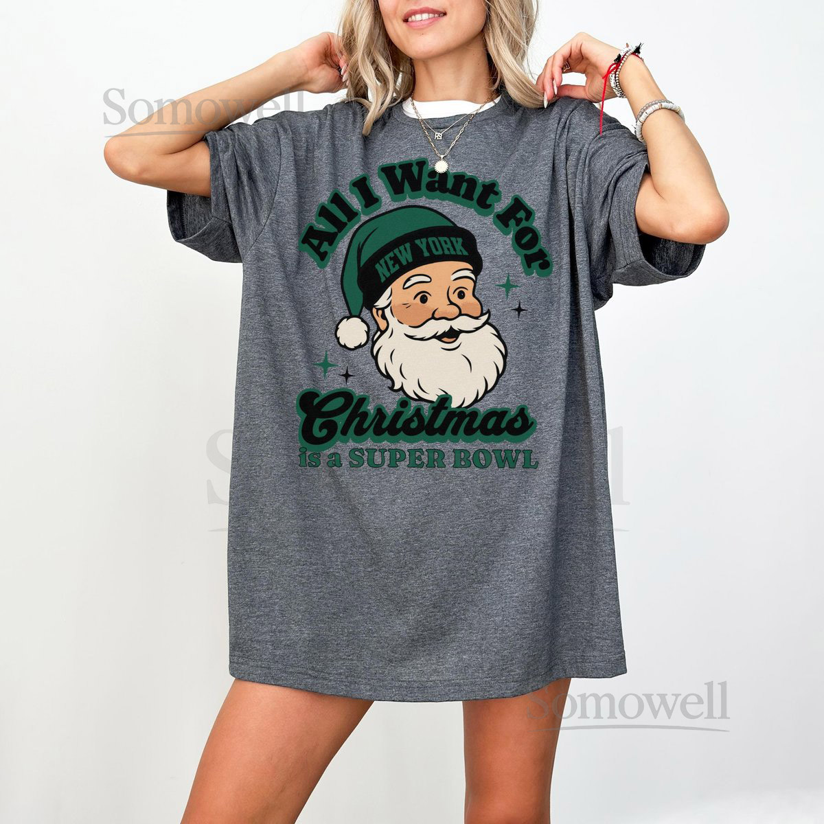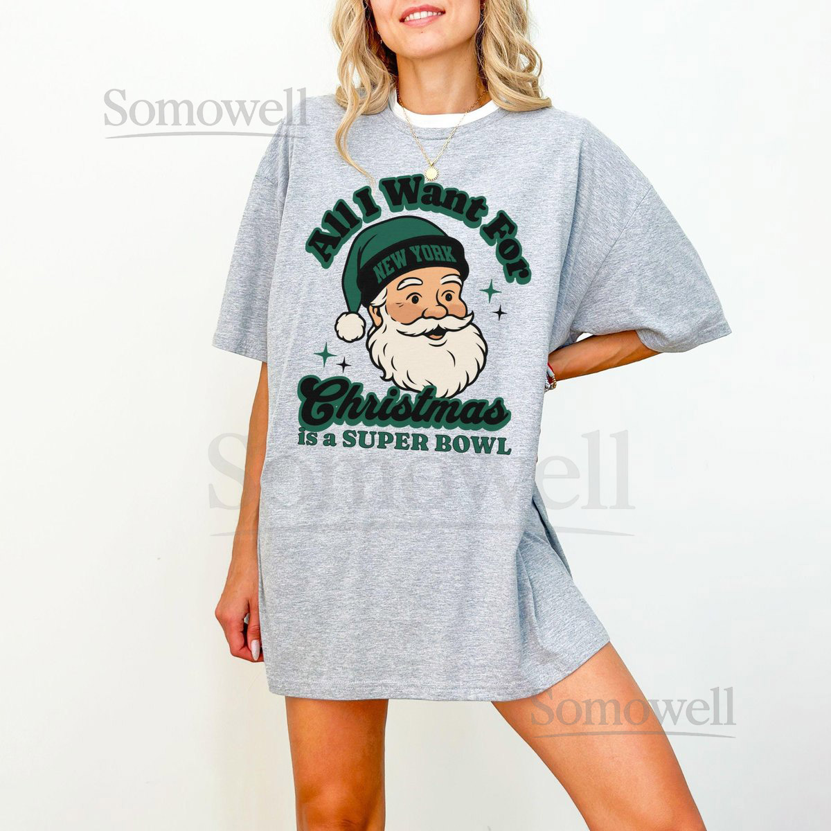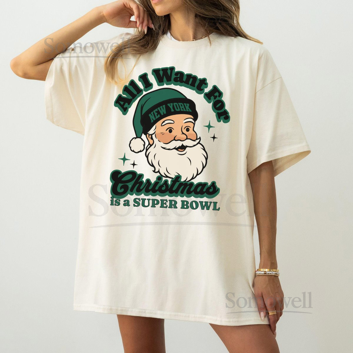 New York Football Christmas Super Bowl T-Shirt Retro Jet Football Tee Holiday Football Fan Shirt Festive Sports Apparel Santa Shirt_361
