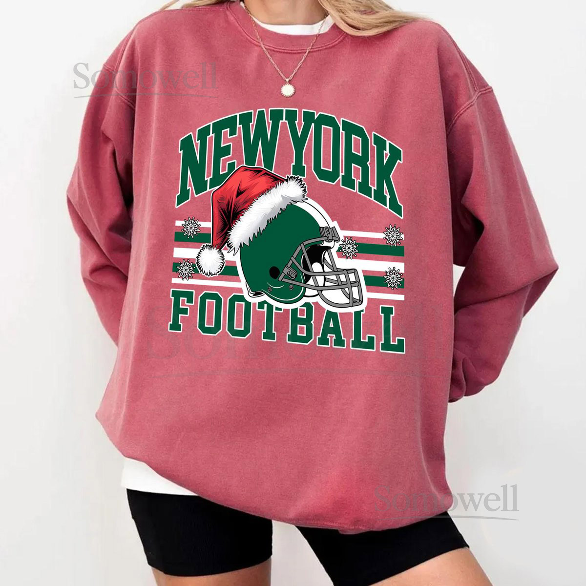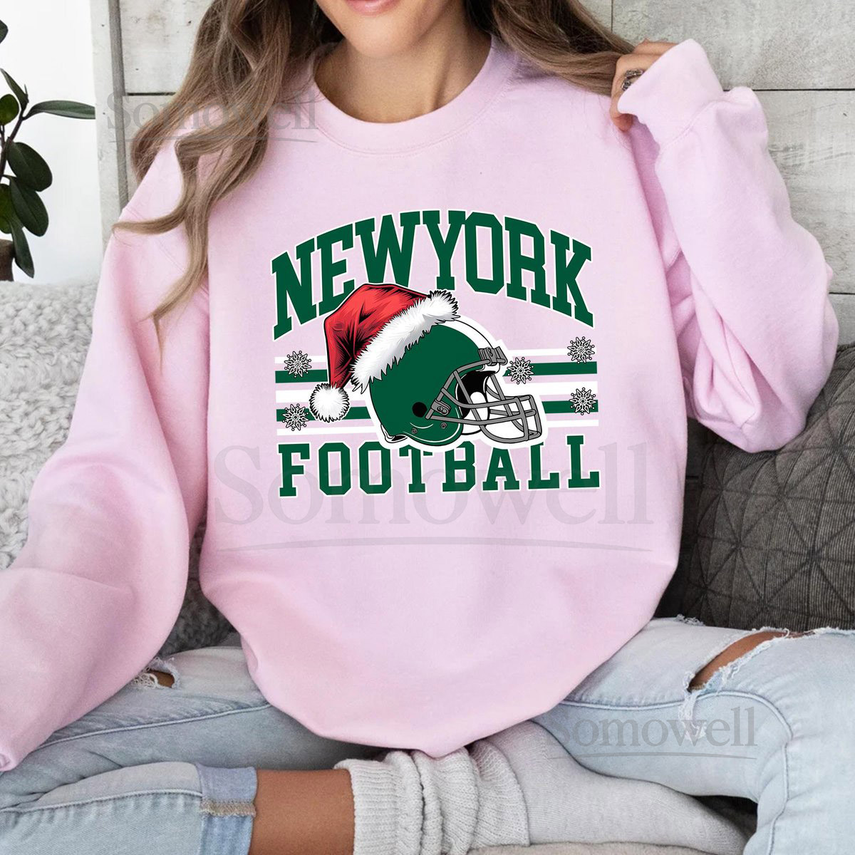 New York Football Shirt College Game Day Tee Sweatshirt Hoodie Vintage Sports Fan Gift Santa Hat Christmas_366