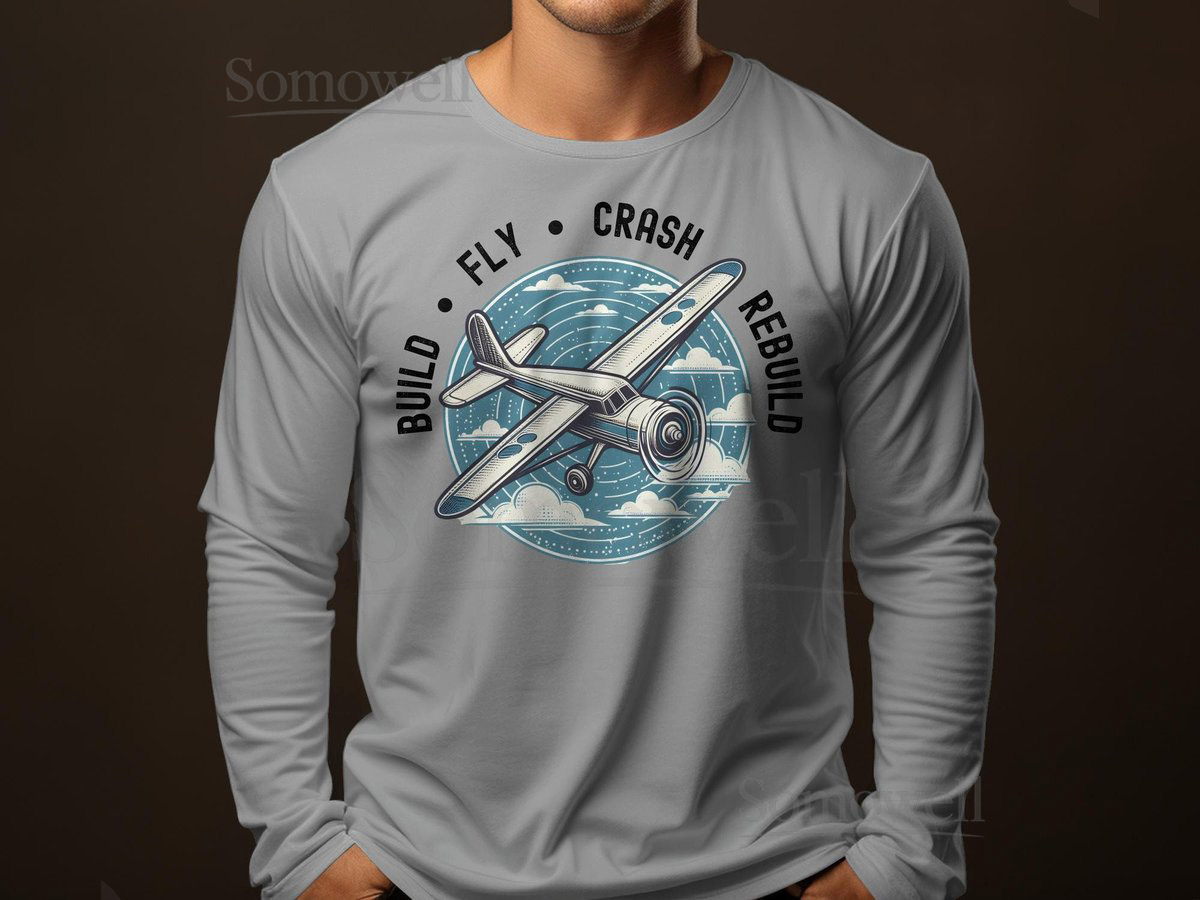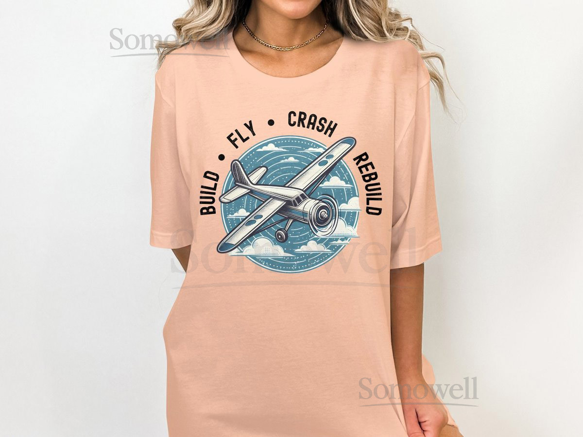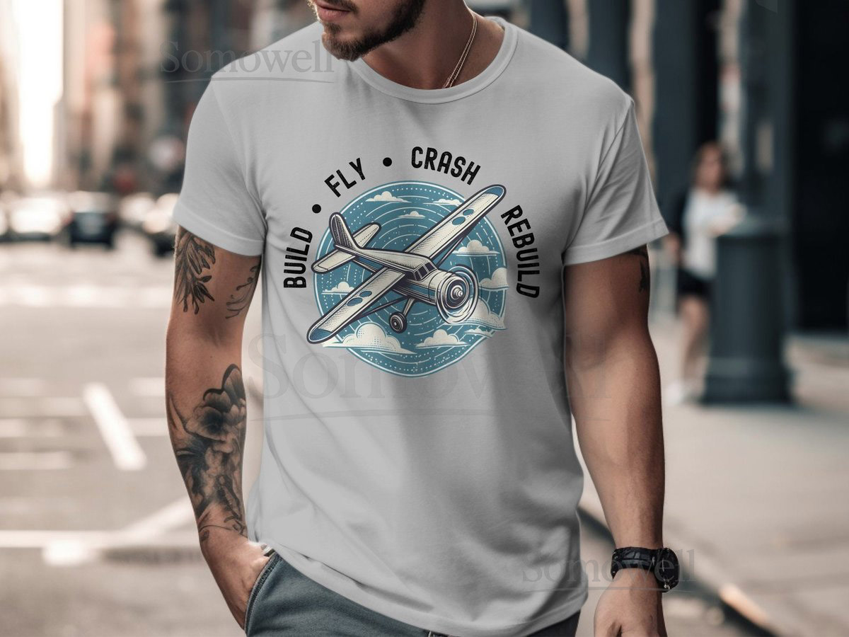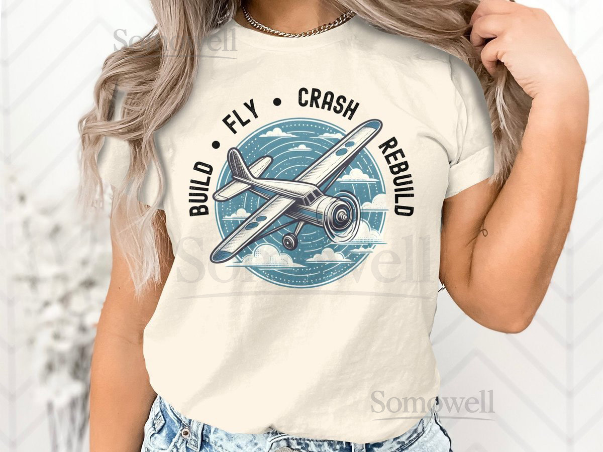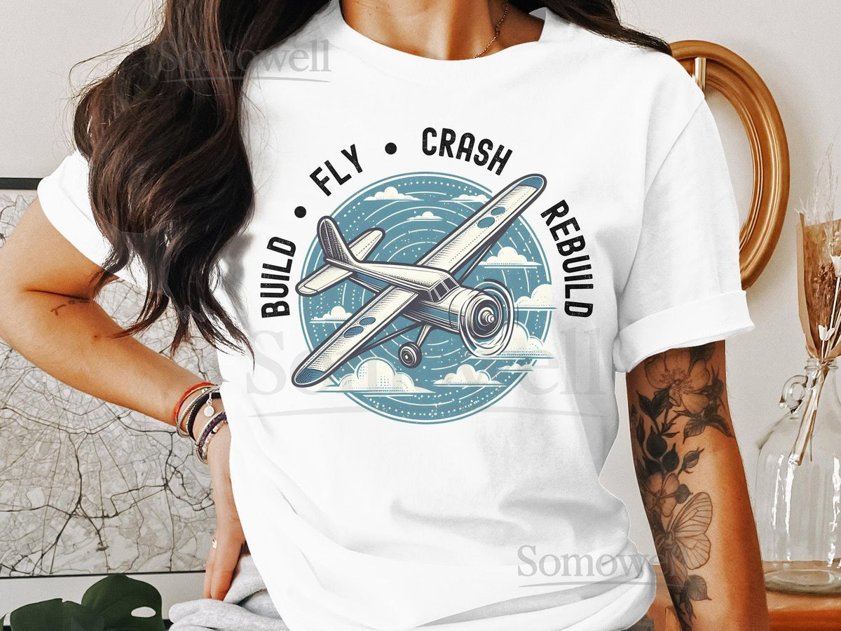 RC Airplane Graphic Tee Gift for Remote Controlled Airplane Pilot Aviation Enthusiast Apparel Hobbyist T-shirt Build Fly Crash Rebuild_413