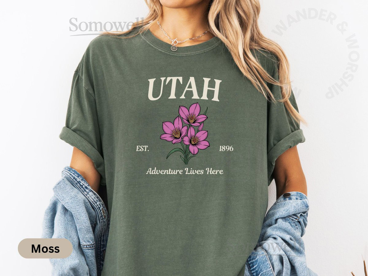 Utah Sego Lily T-Shirt Vintage State Flower Comfort Colors Tee Soft Nature Travel Top Scenic Road Trip Shirt USA Explorer Gift_636