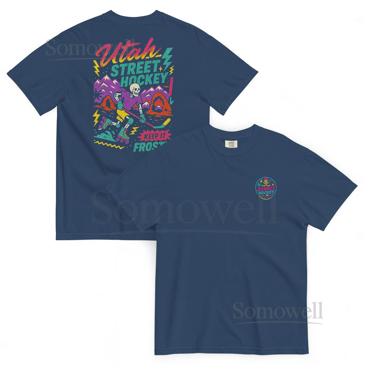 Utah Street Hockey T-Shirt Neon Skeleton Rollerblade Keep it Frosty 80s 90s Retro Inspired – Utah Hockey Shirts_648