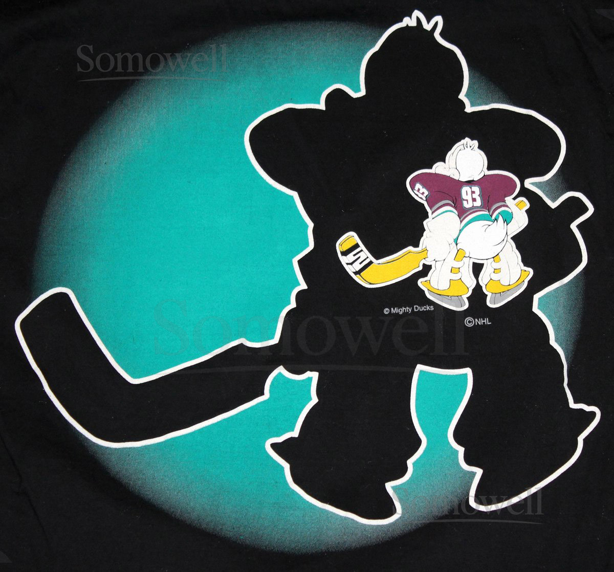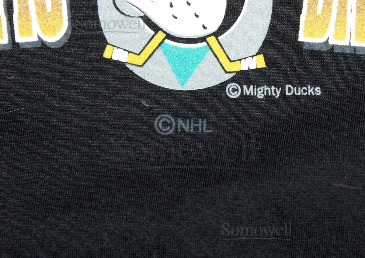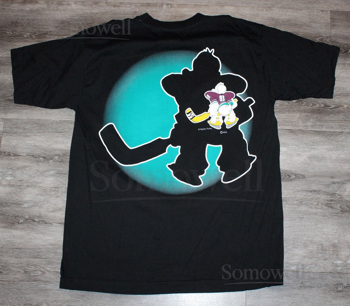 Vintage 90s Clothing NHL Anaheim Mighty Ducks Hockey Disney Men Size Medium Retro Movie Cartoon Caricature Logo Print Short Sleeve T Shirt_685