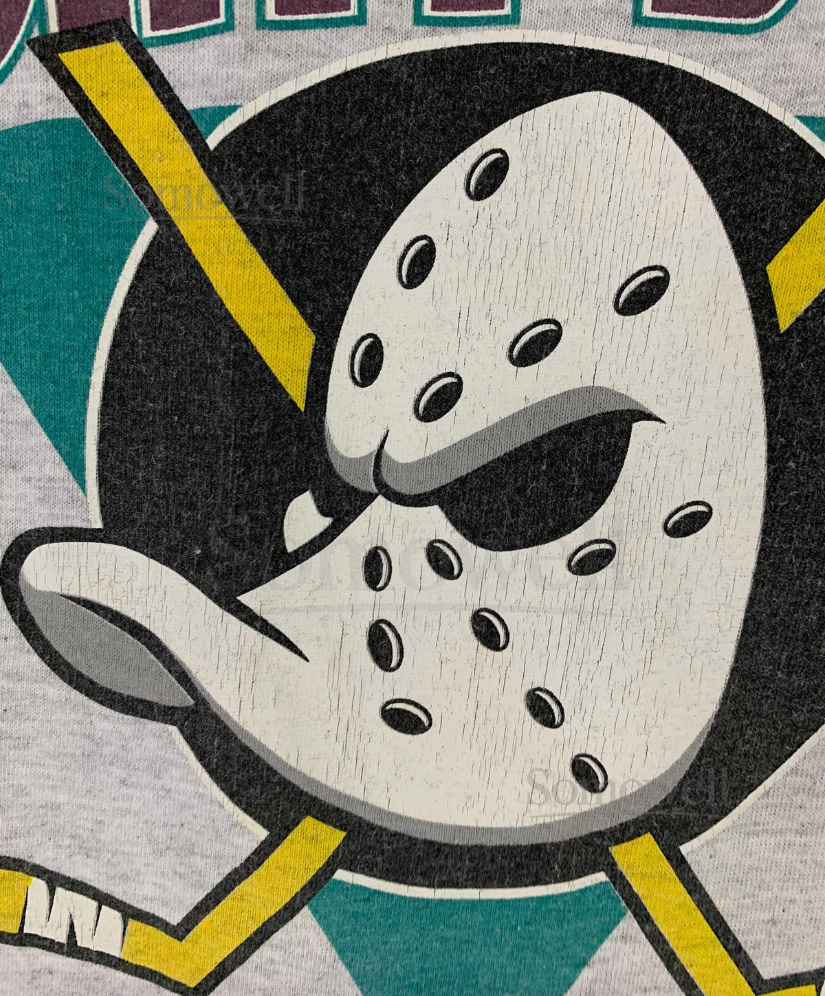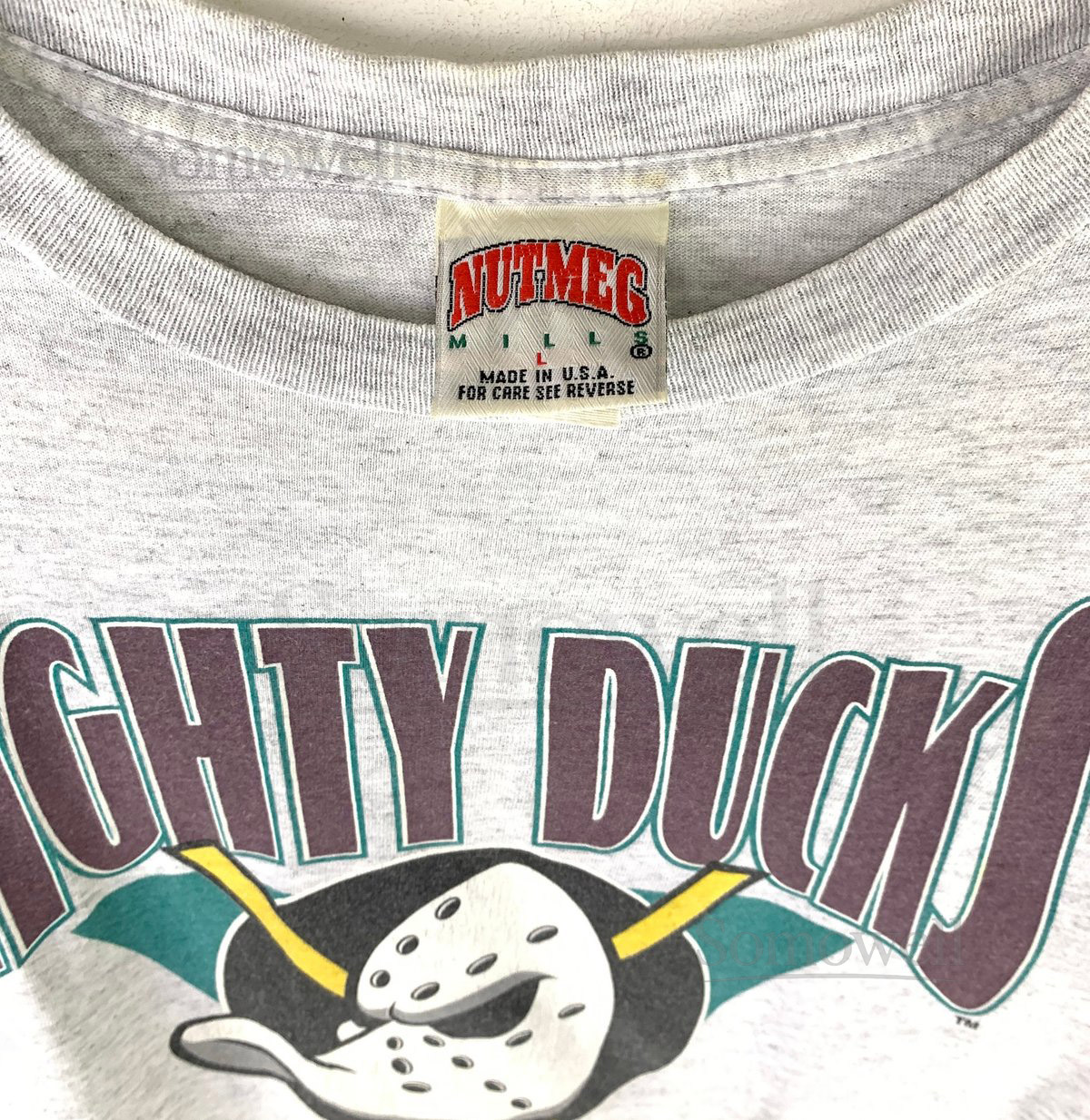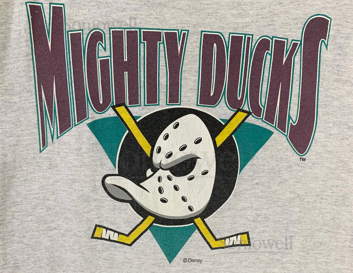 Vintage 90s Mighty ducks disney hockey tshirt collectible NHL streetwear casual outfit single stitch gray Small_687
