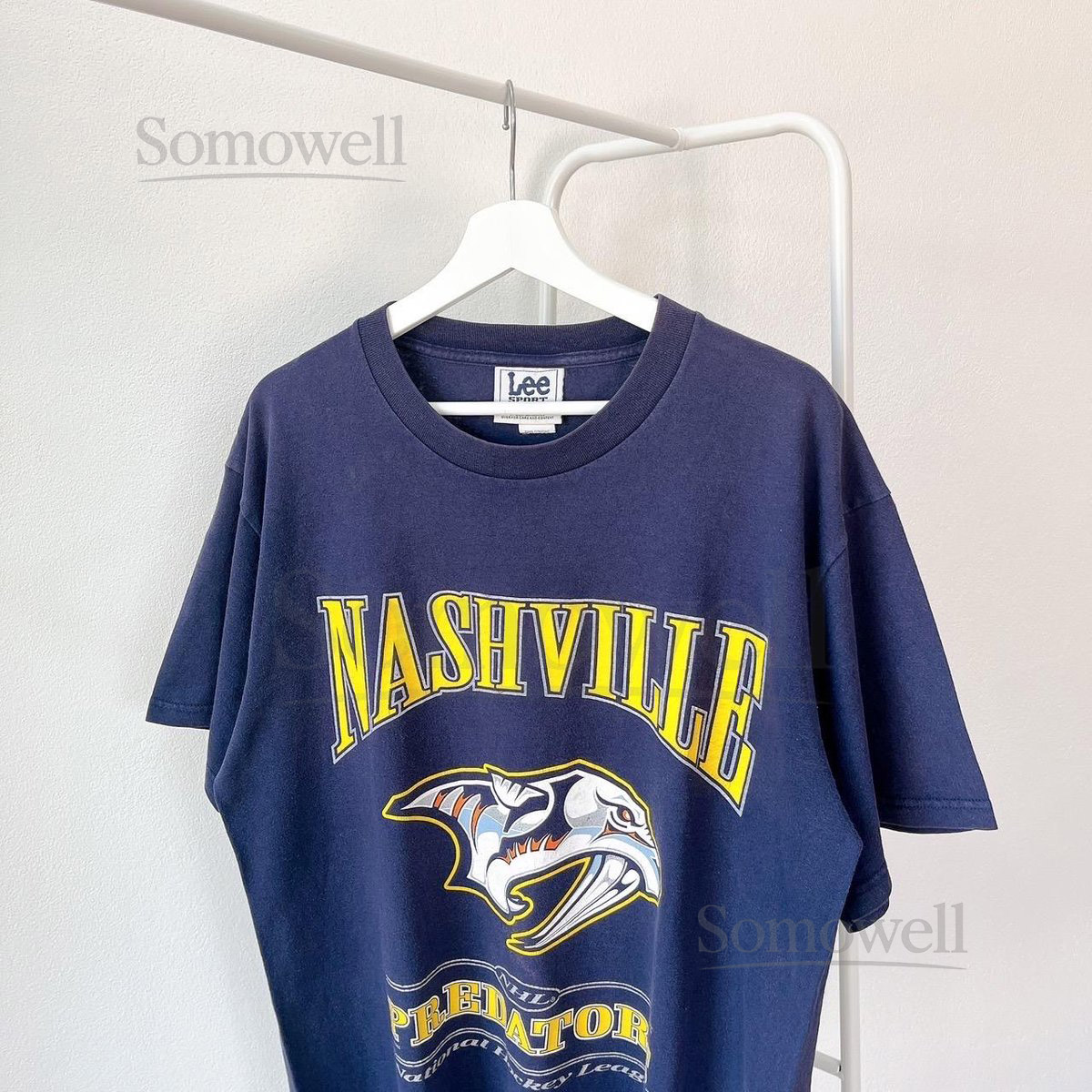 Vintage Nashville Predators NHL hockey Lee sport blue t-shirt L_737